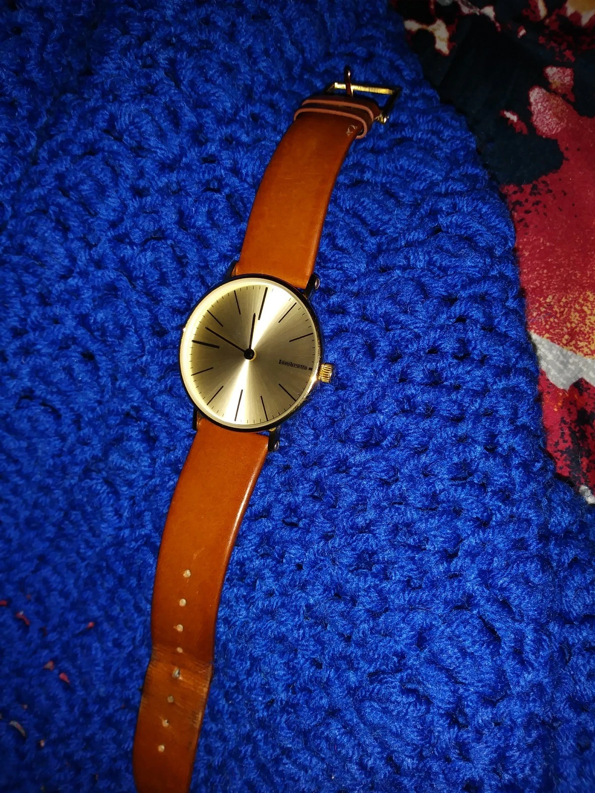 Cesare Watch in Gold with Cognac Face & Cream Leather Strap EUC!!!!!
