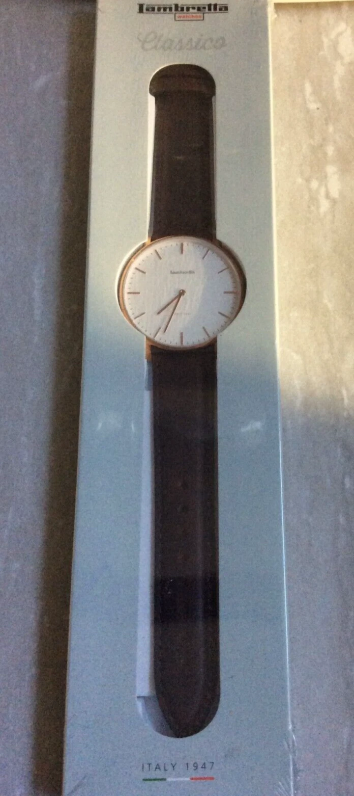 Lambretta Classico 40 Rose Gold Watch Mens White Dial Brown Genuine Leather Band