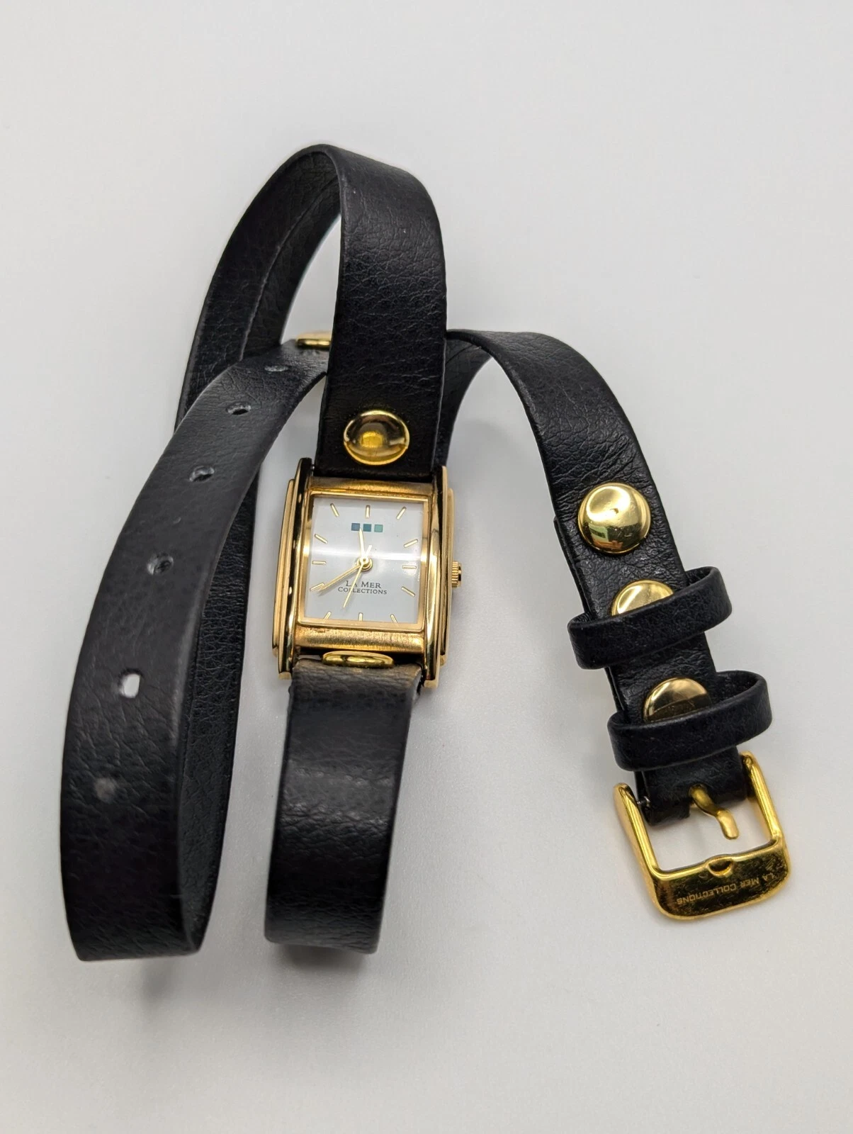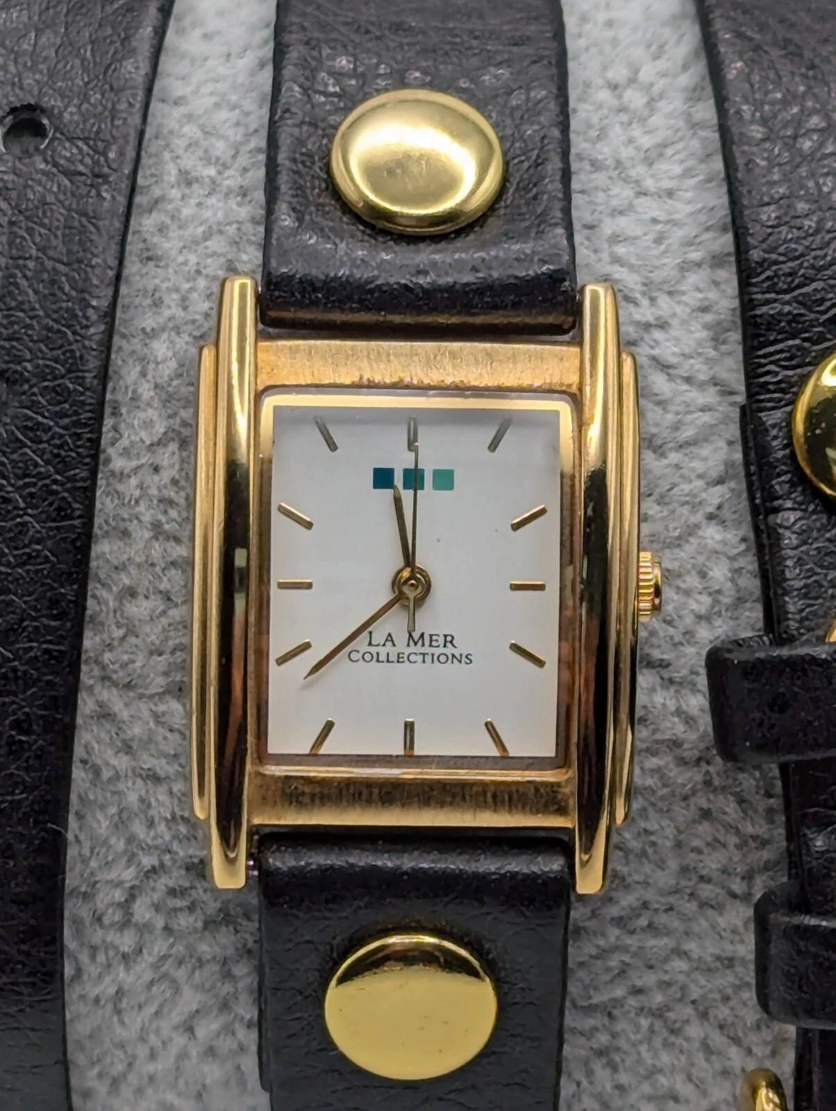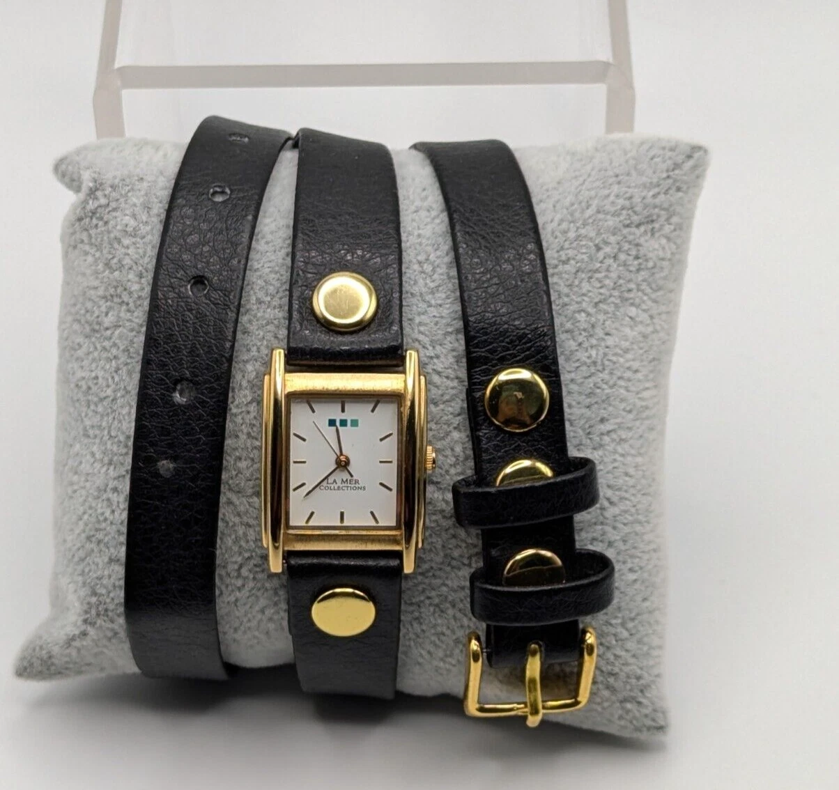La Mer Collections Wrap Watch Black Band Gold Tone New Battery