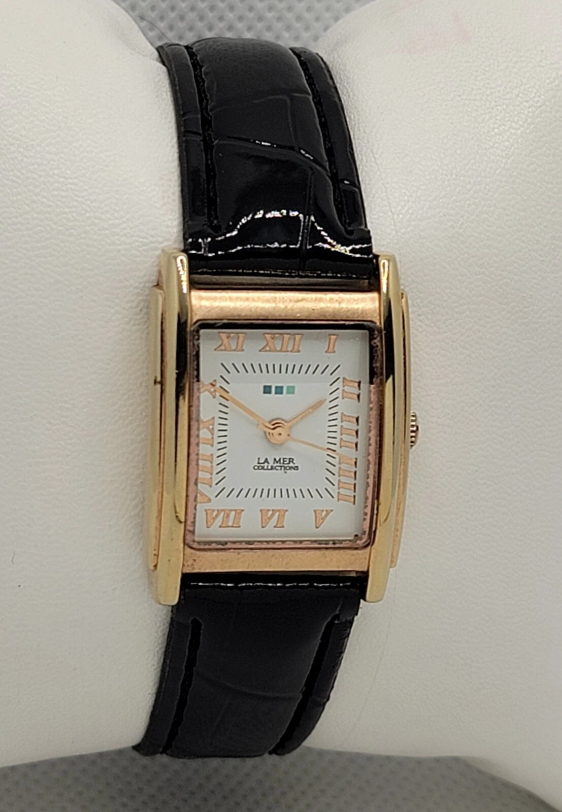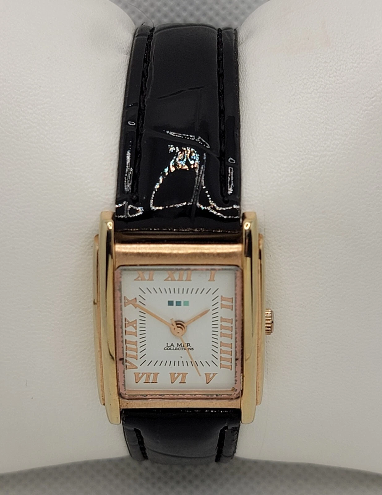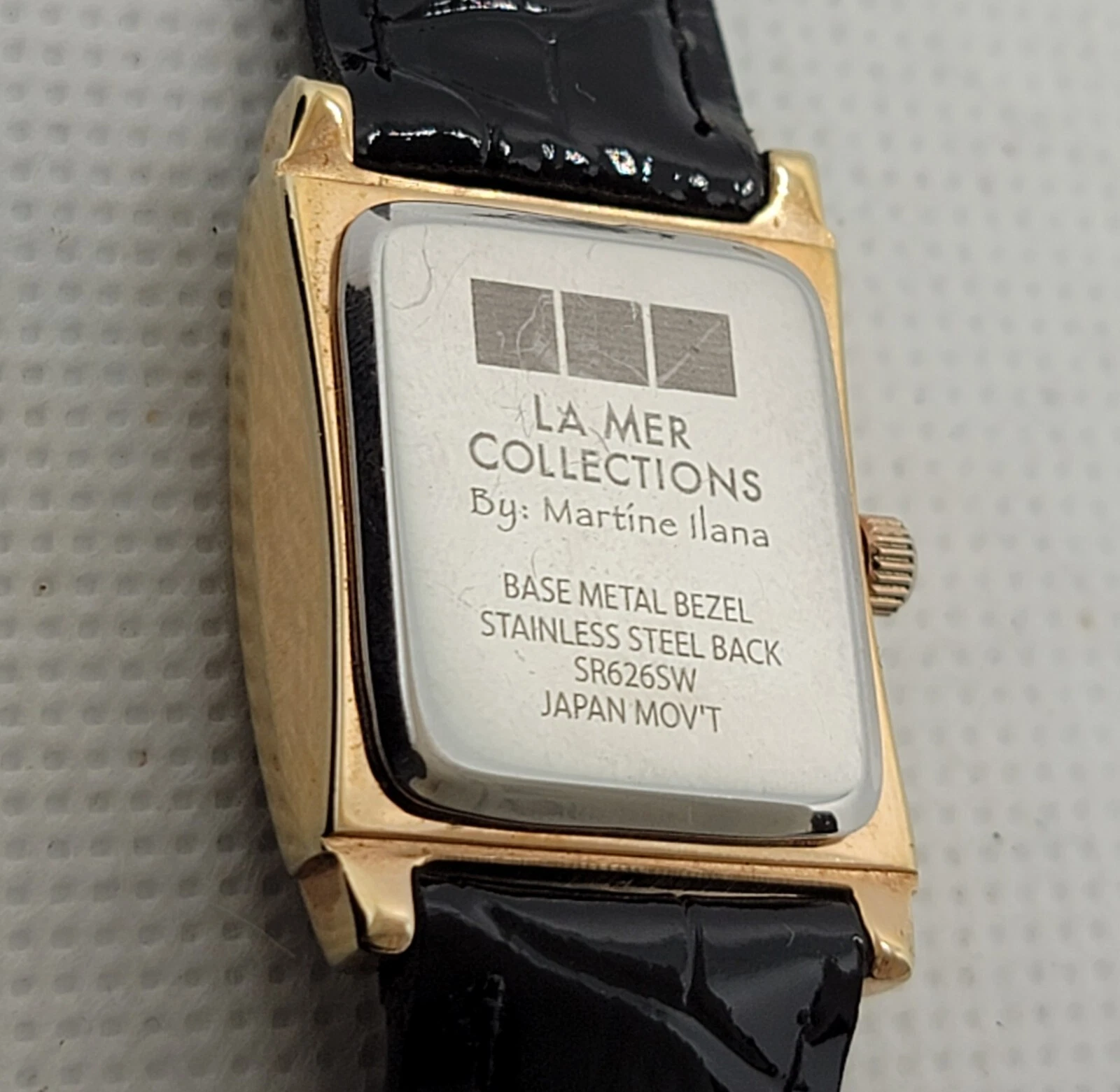 Ladies La Mer Collections by Martine Ilana Gold Tone Black Leather Watch J3