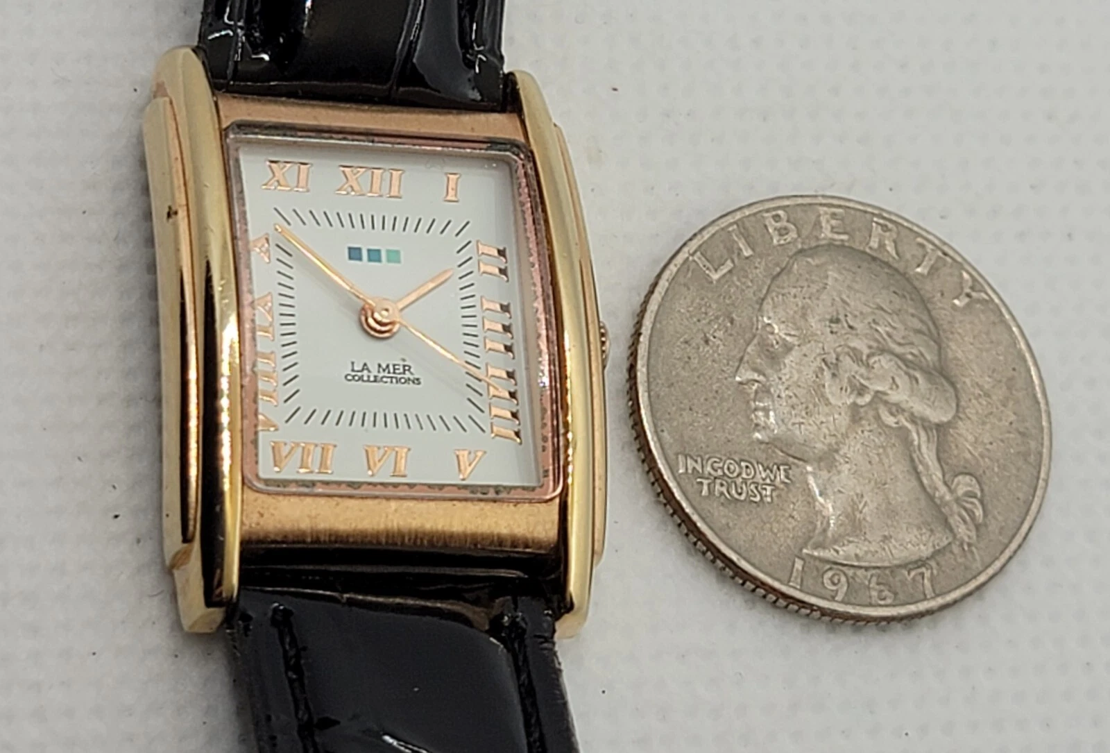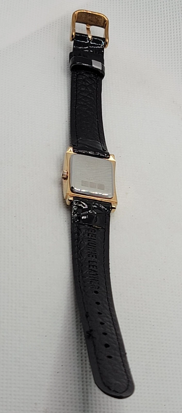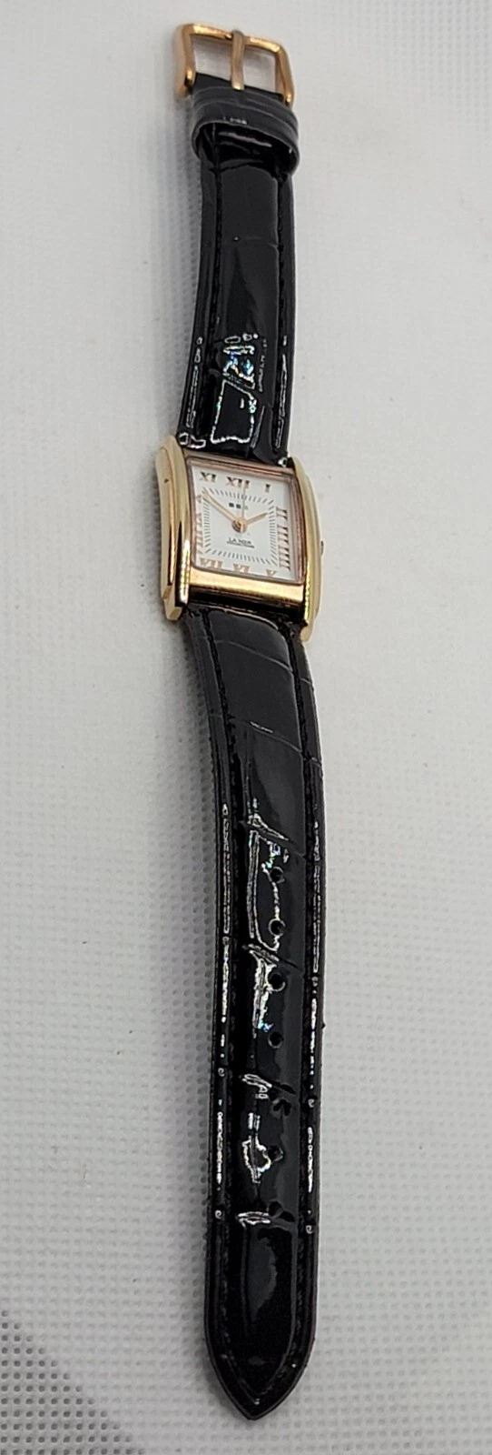 Ladies La Mer Collections by Martine Ilana Gold Tone Black Leather Watch J3