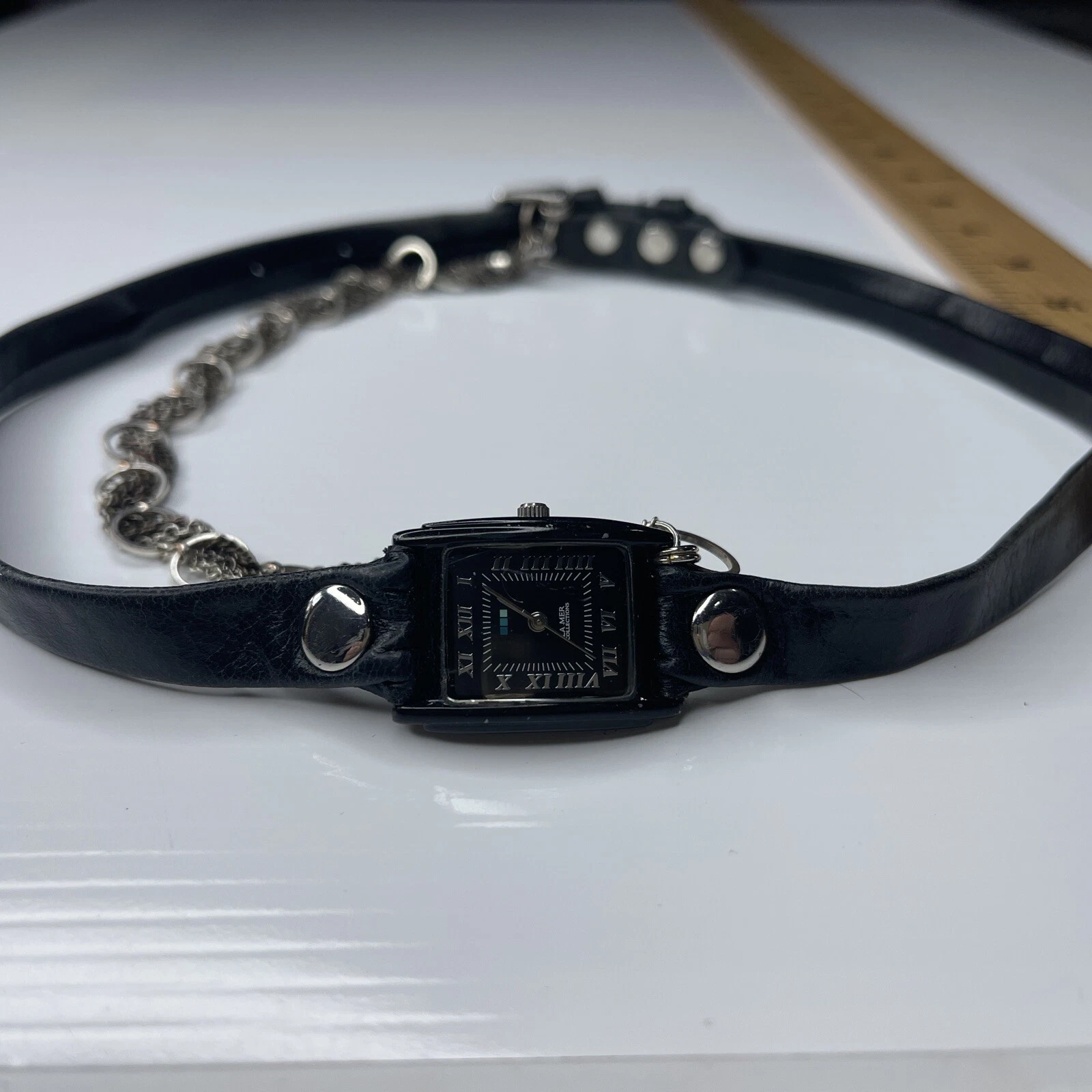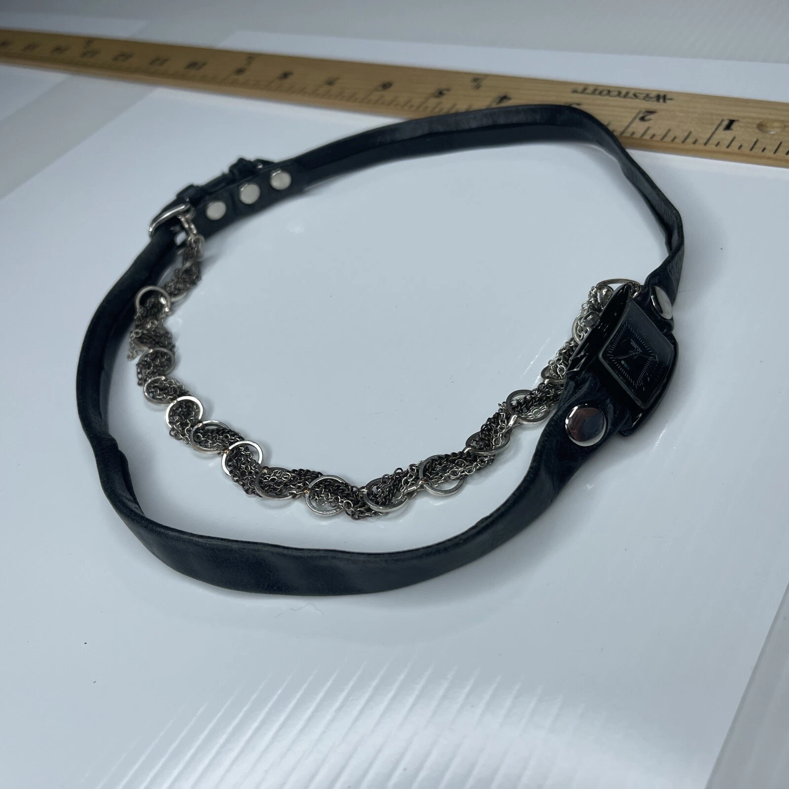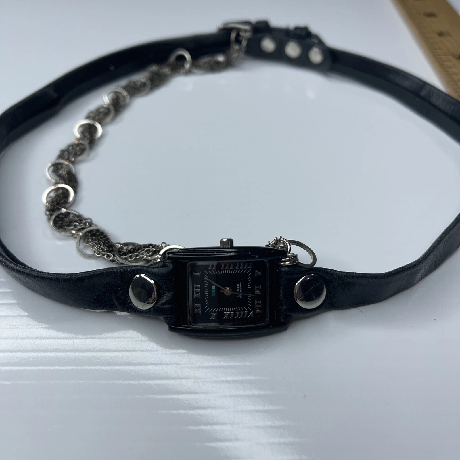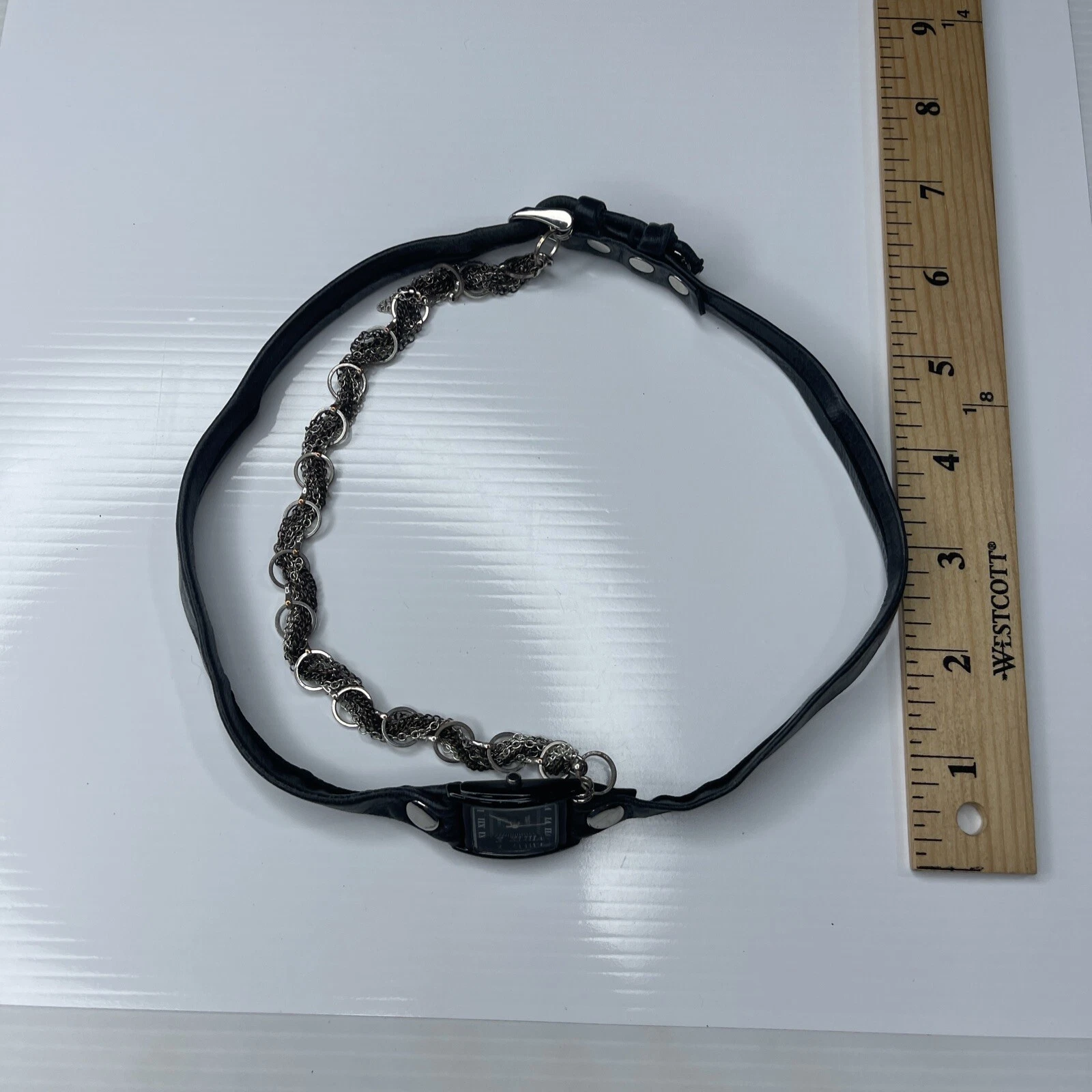 F LA MER Martine ilana Stainless Japan Black Leather Wrap Watch Chain Works