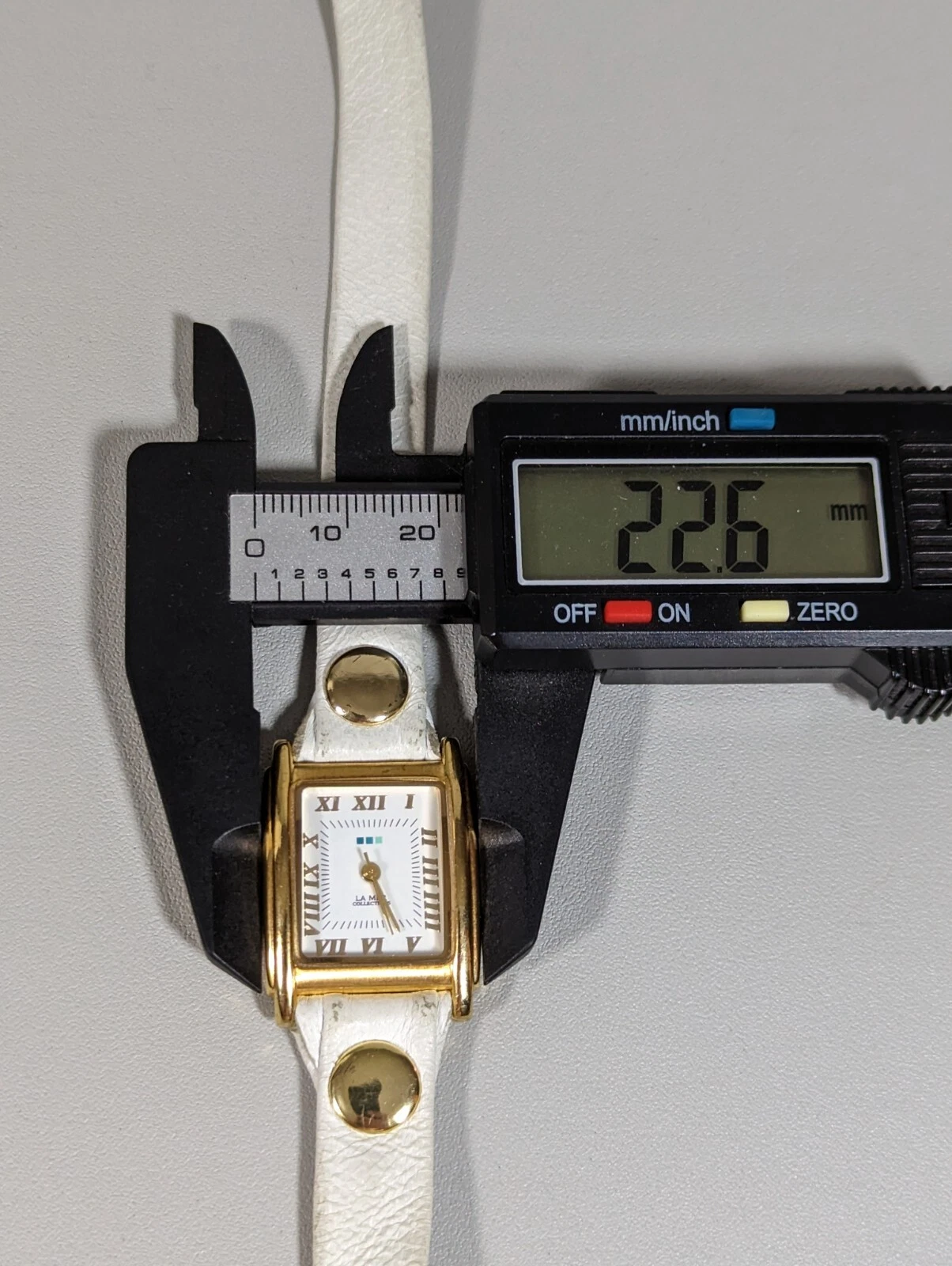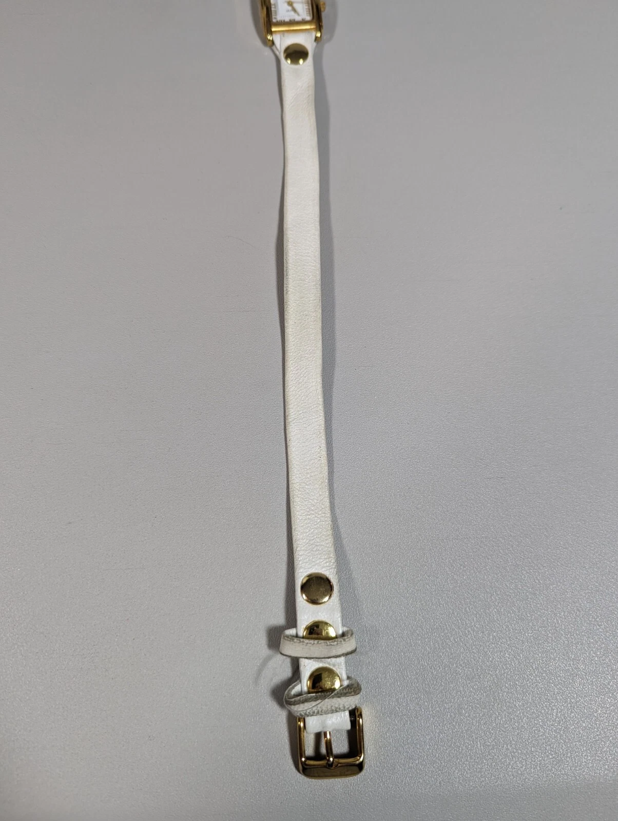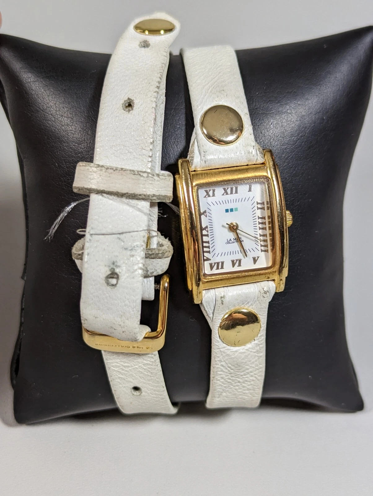 LA MER White Dial Gold Tone Rectangle Case White Wrap Leather Band Watch 22 Inch