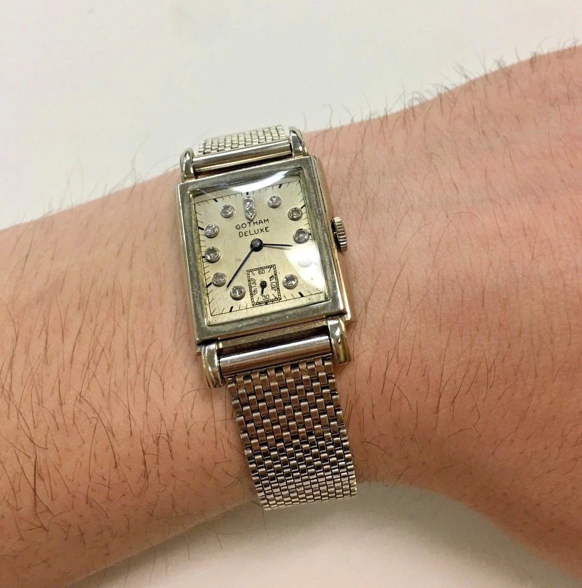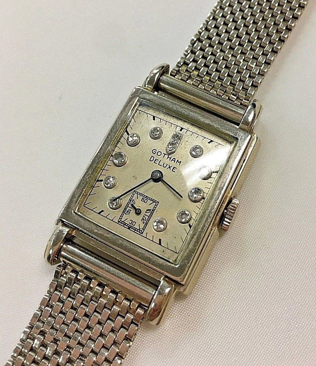 Vintage 14k White Gold Gotham Deluxe Watch with Diamonds, 17 jewel