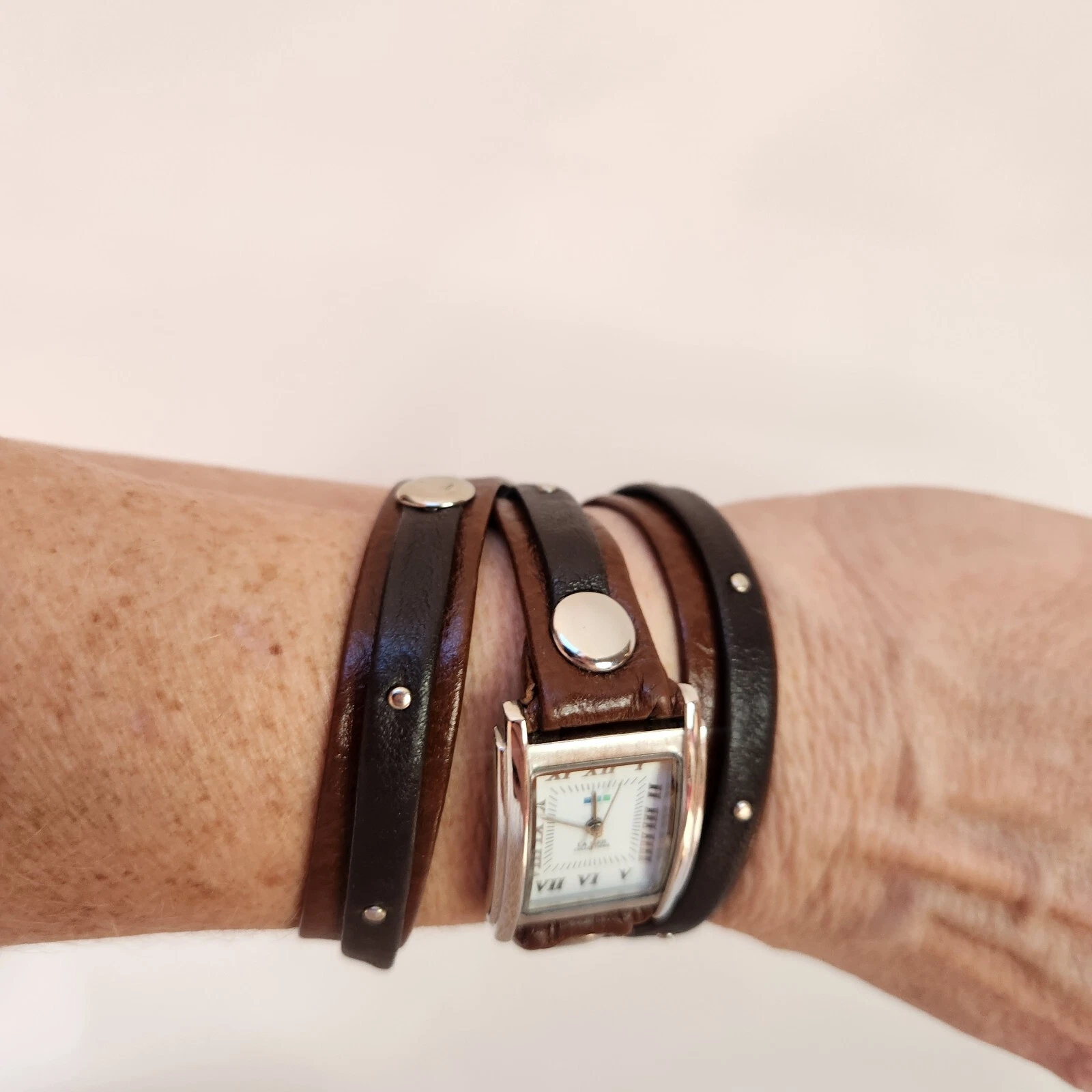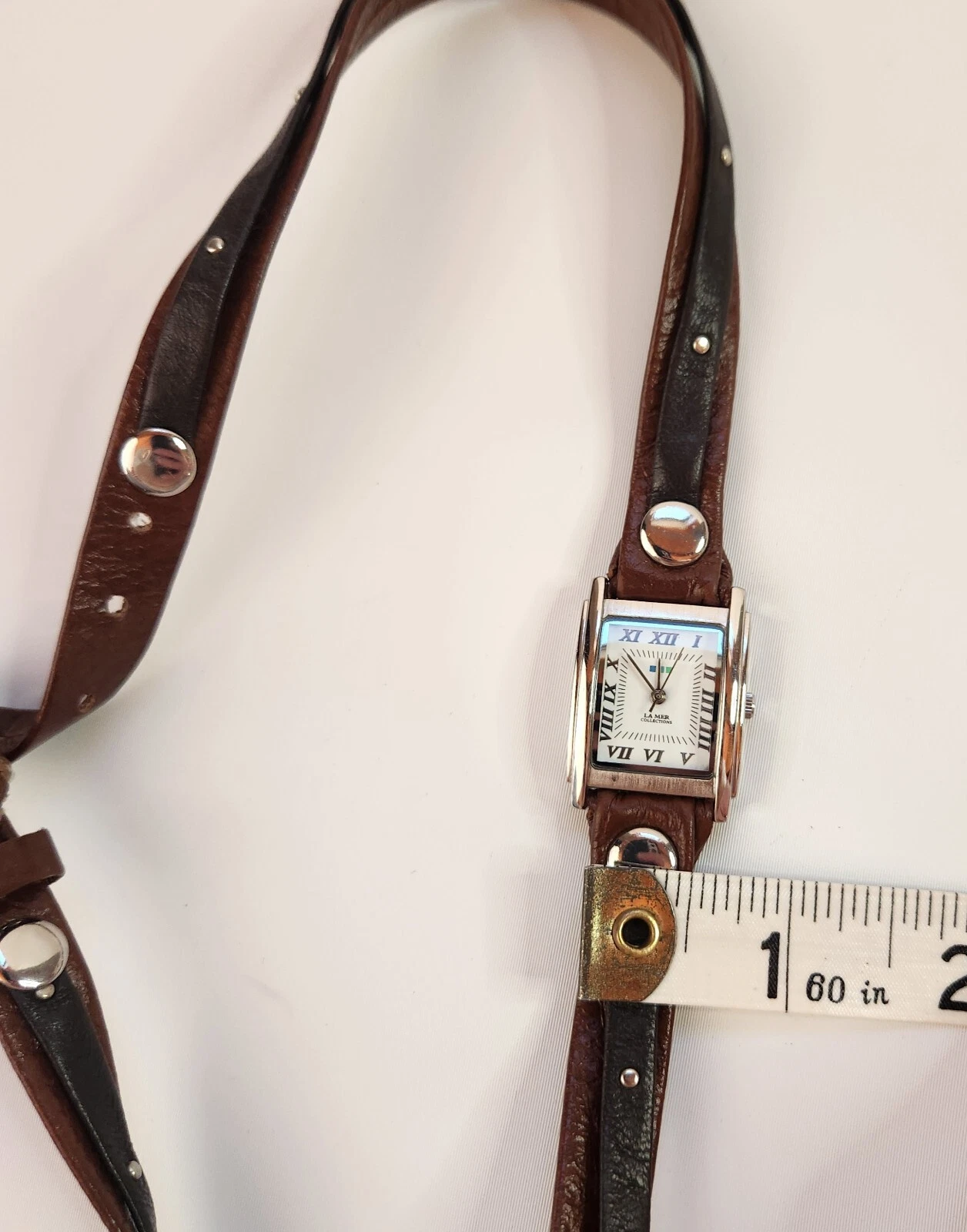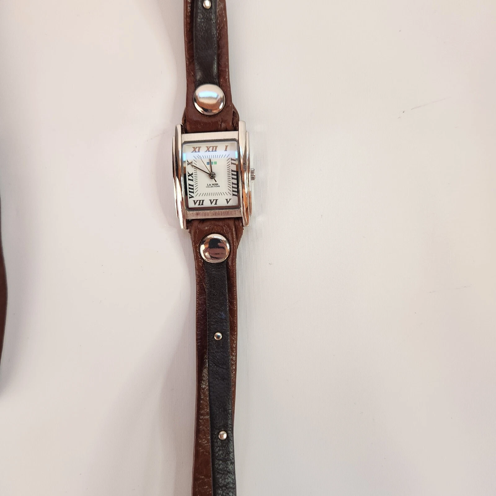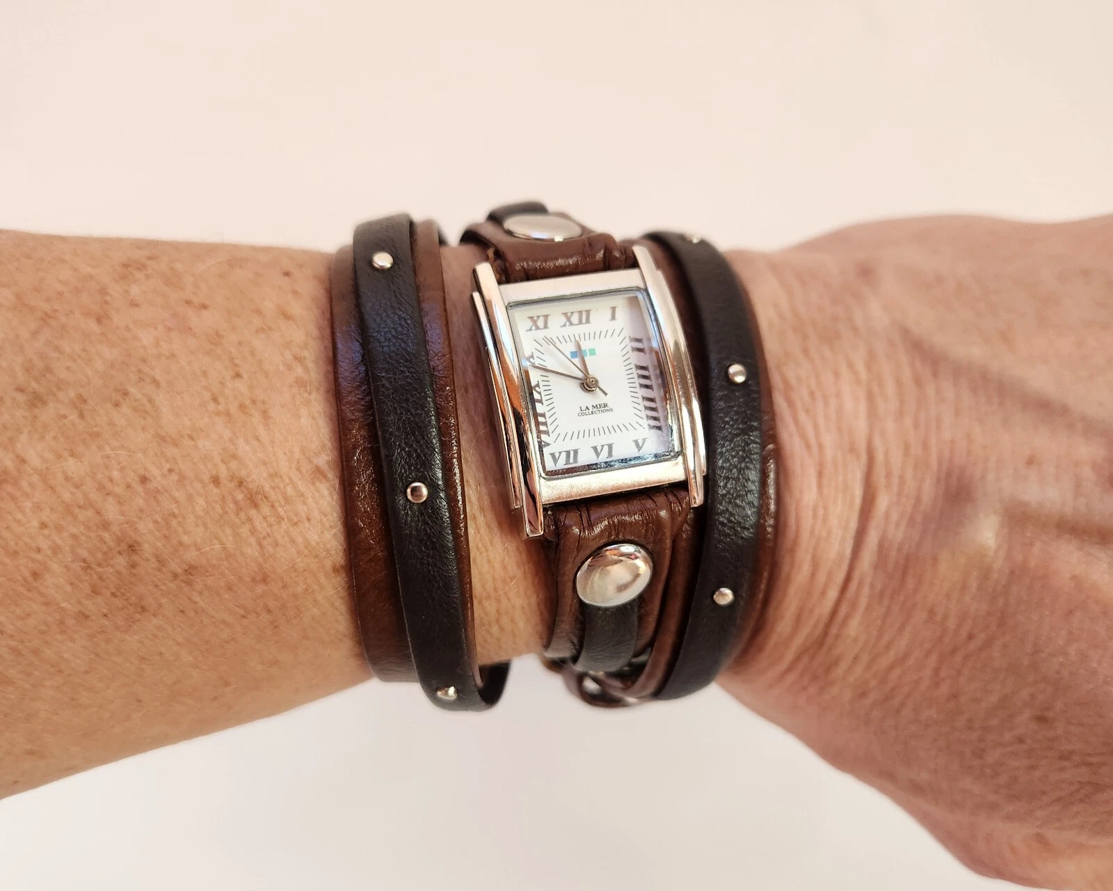 Ladies LA MER Collections Double Wrap Brown Leather, SilverTone Watch
