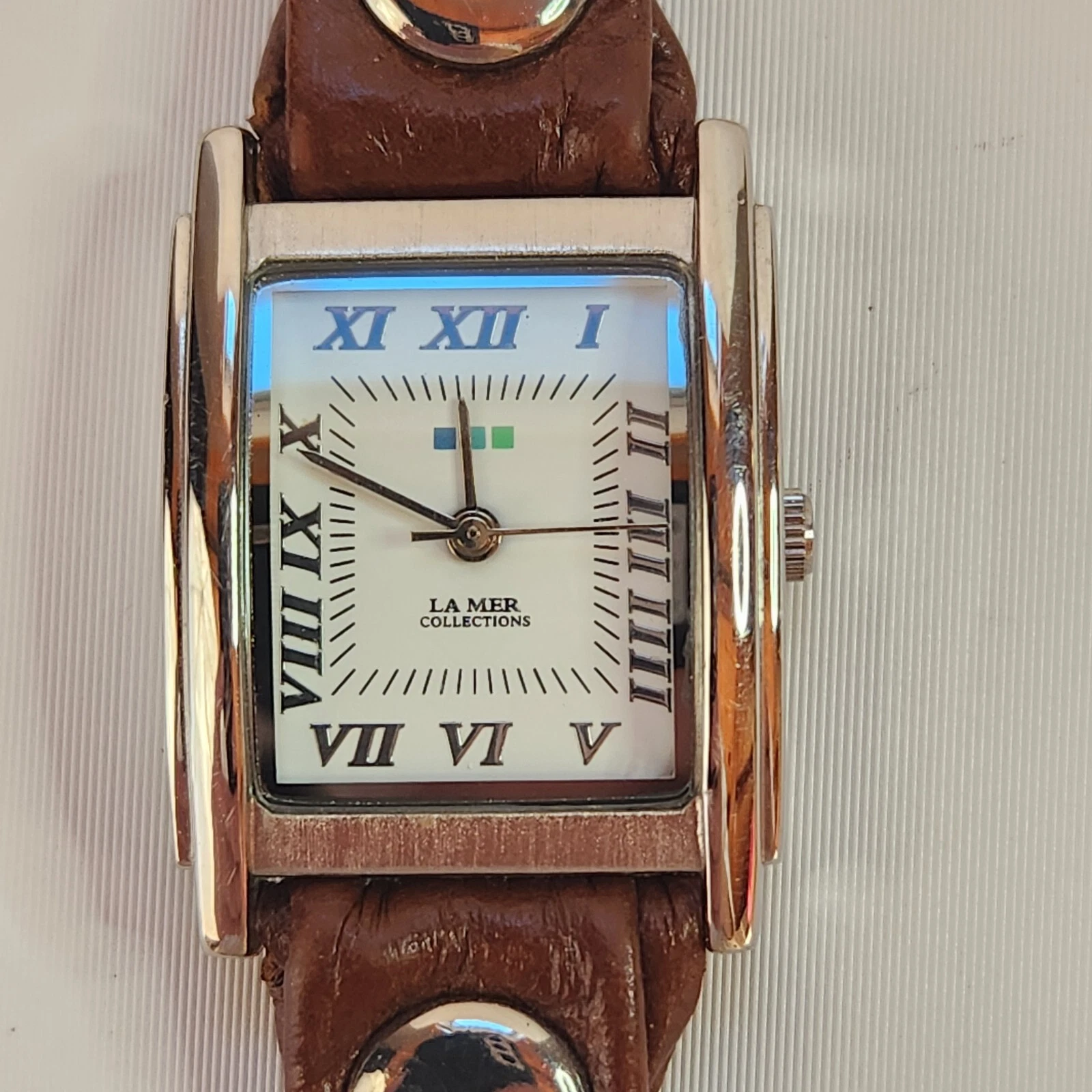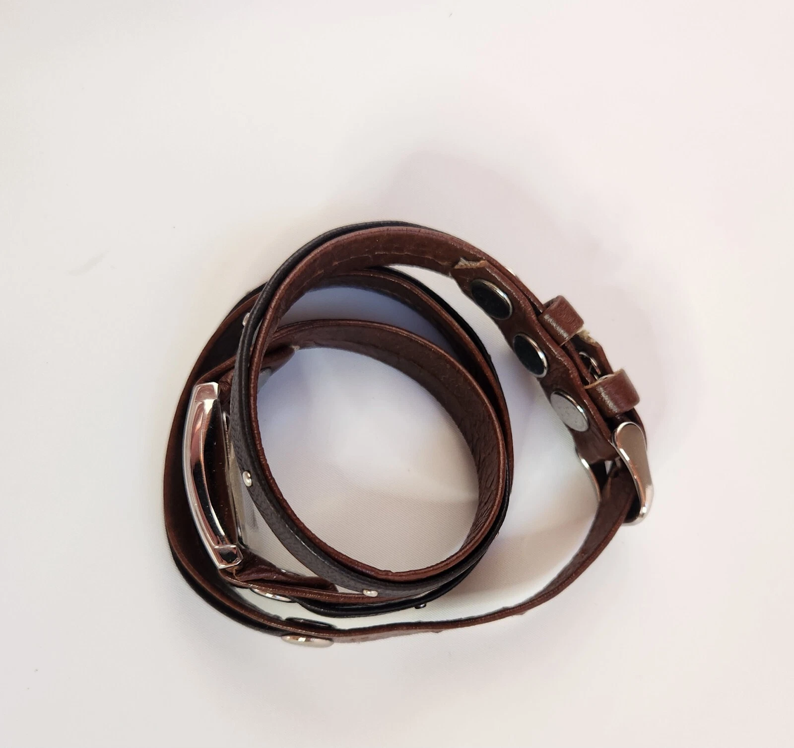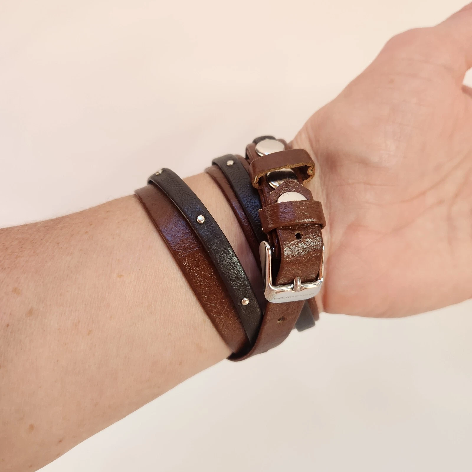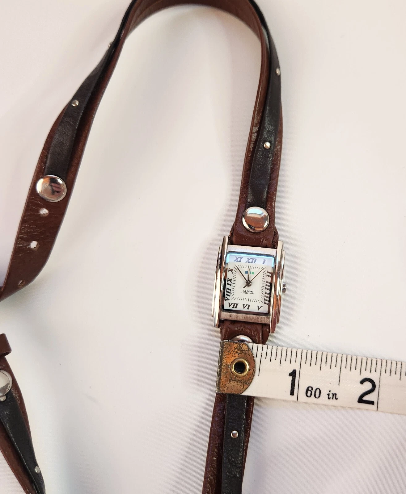 Ladies LA MER Collections Double Wrap Brown Leather, SilverTone Watch