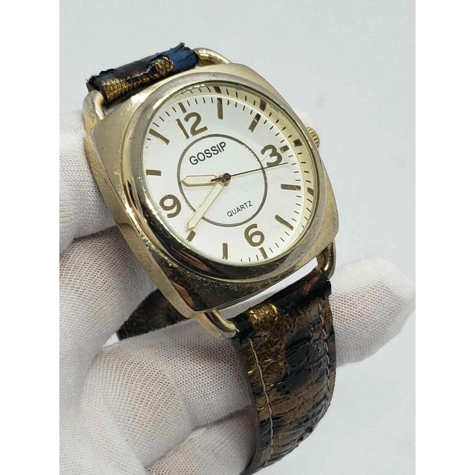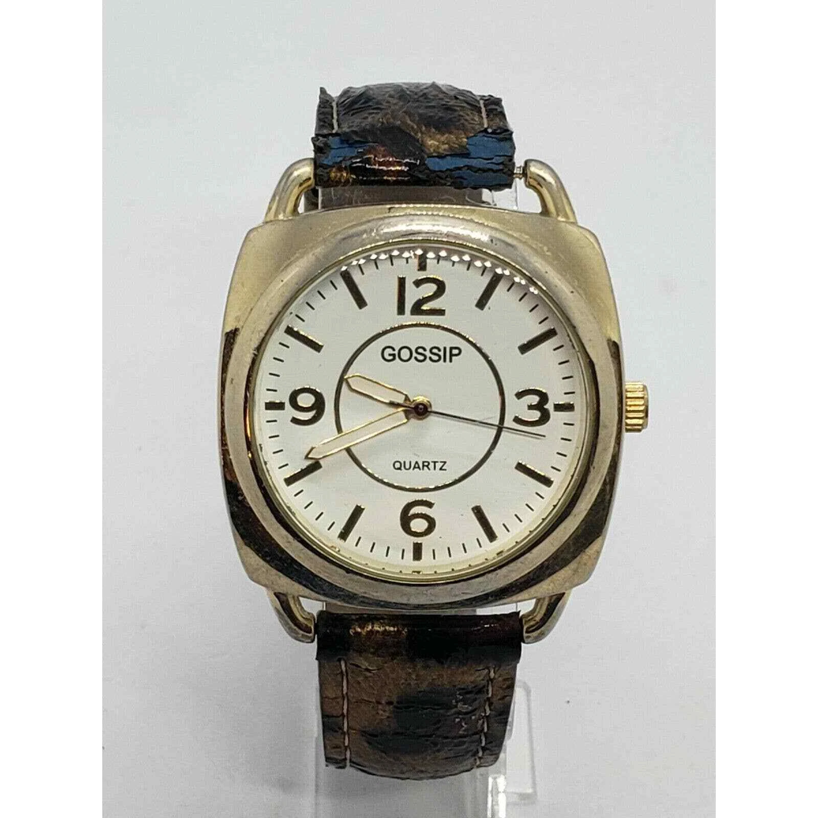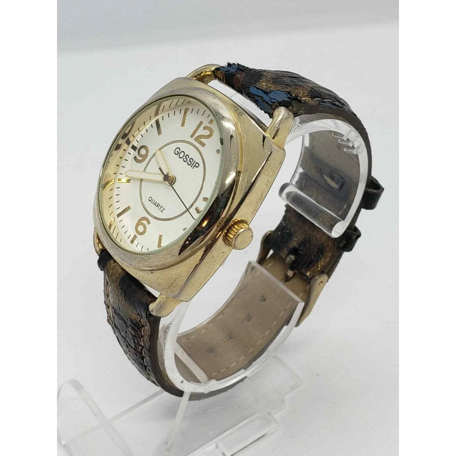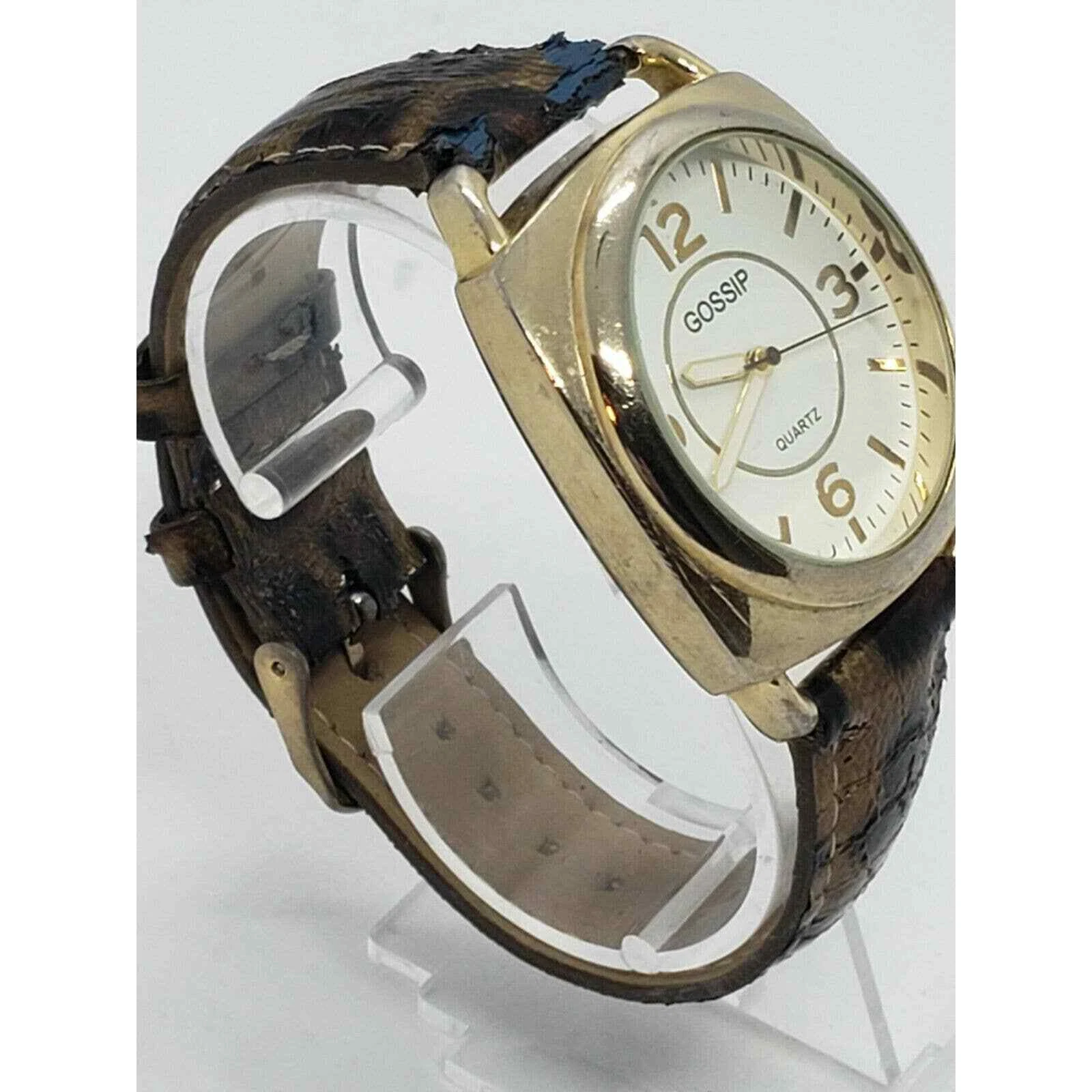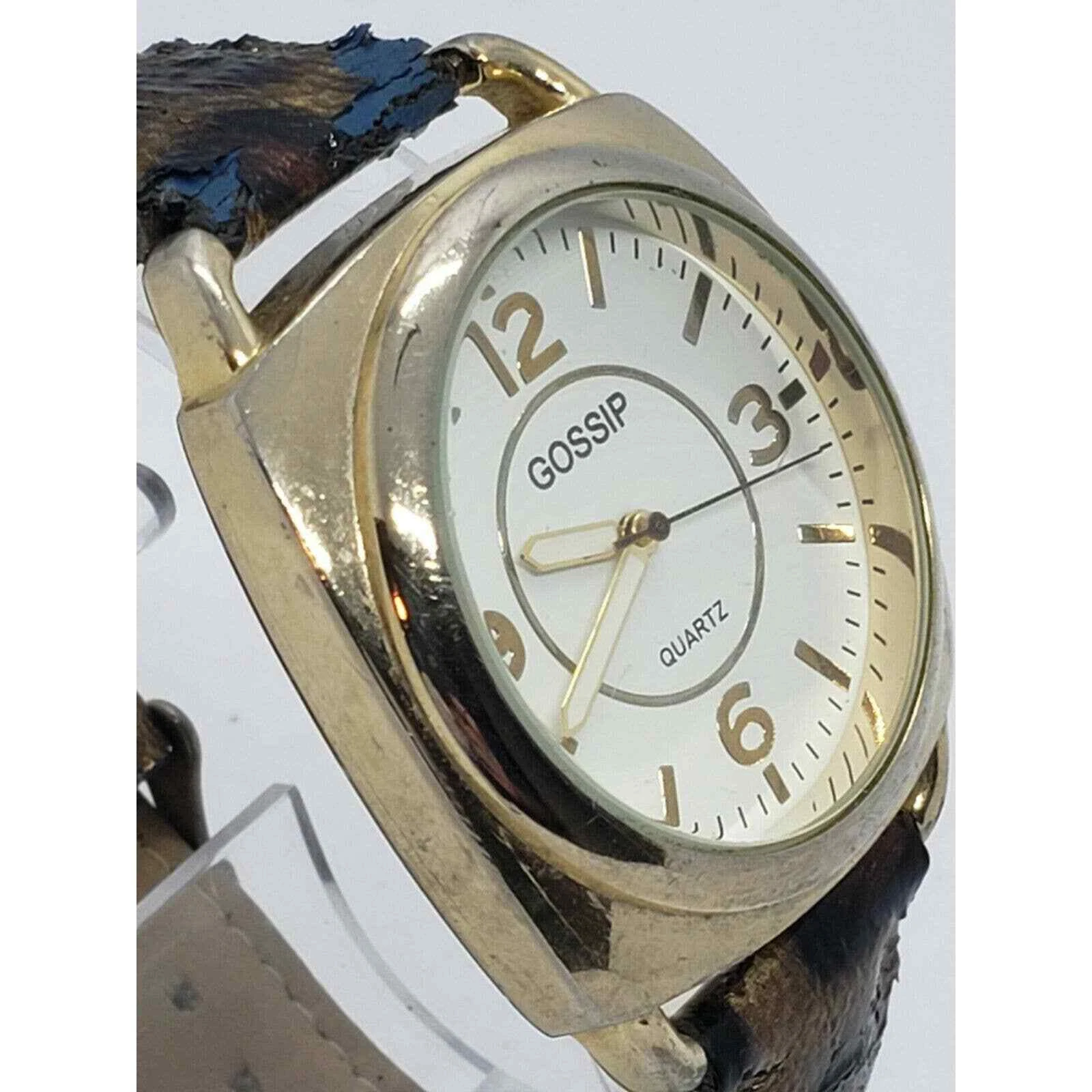 GOSSIP GSP888A Gold Toned Quartz WATCH Gold Leopard Band 39mm Watch