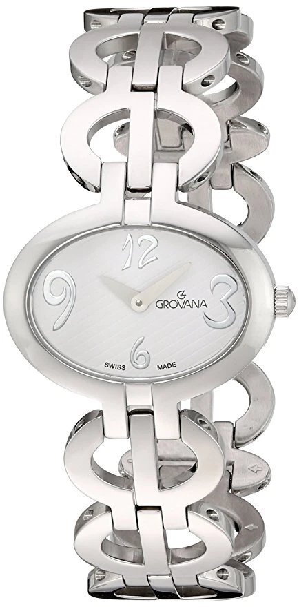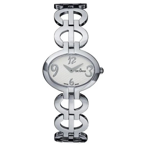 Grovana Swiss Sapphire 29mm Oval White Dial Silver Women's Watch 4566.1133