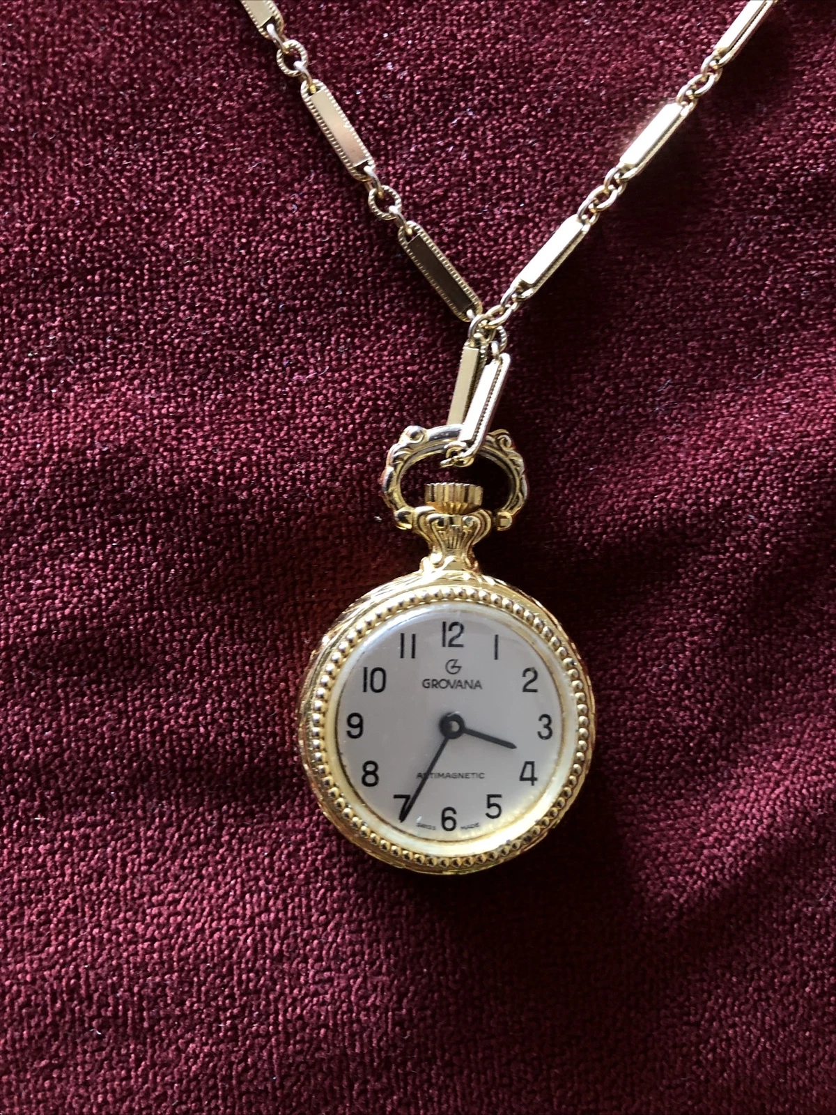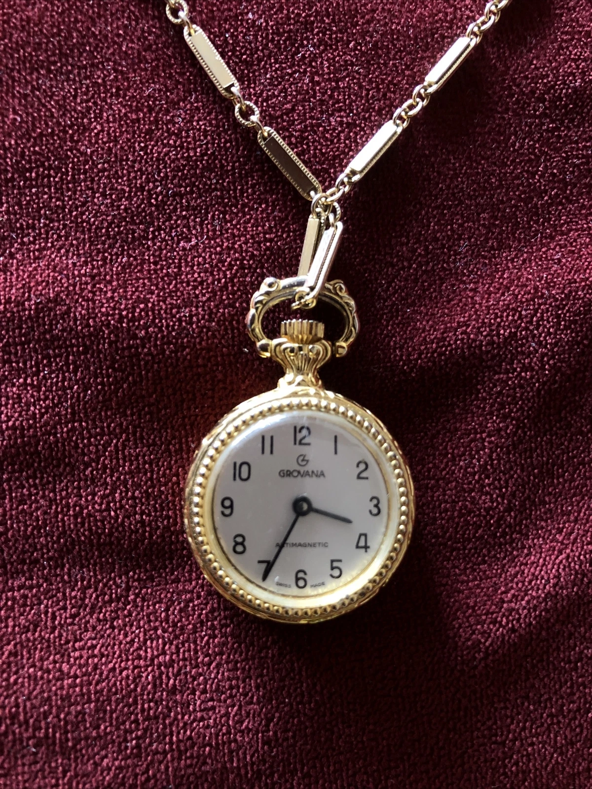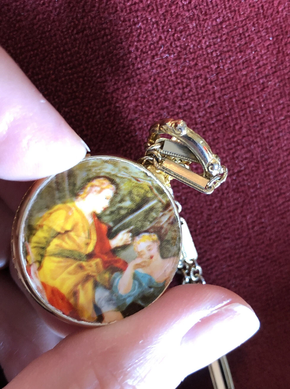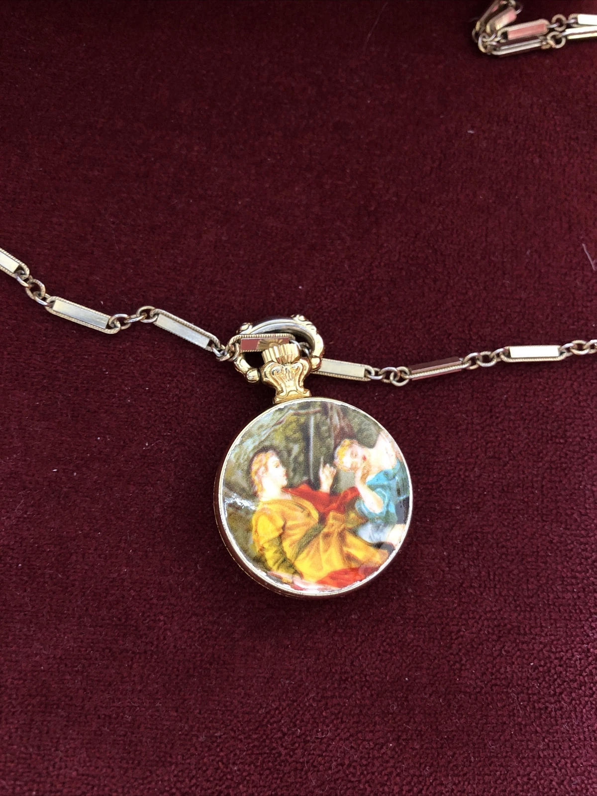 Antique Grovana Painting Portrait Gold Working Mechanical Pendant Watch