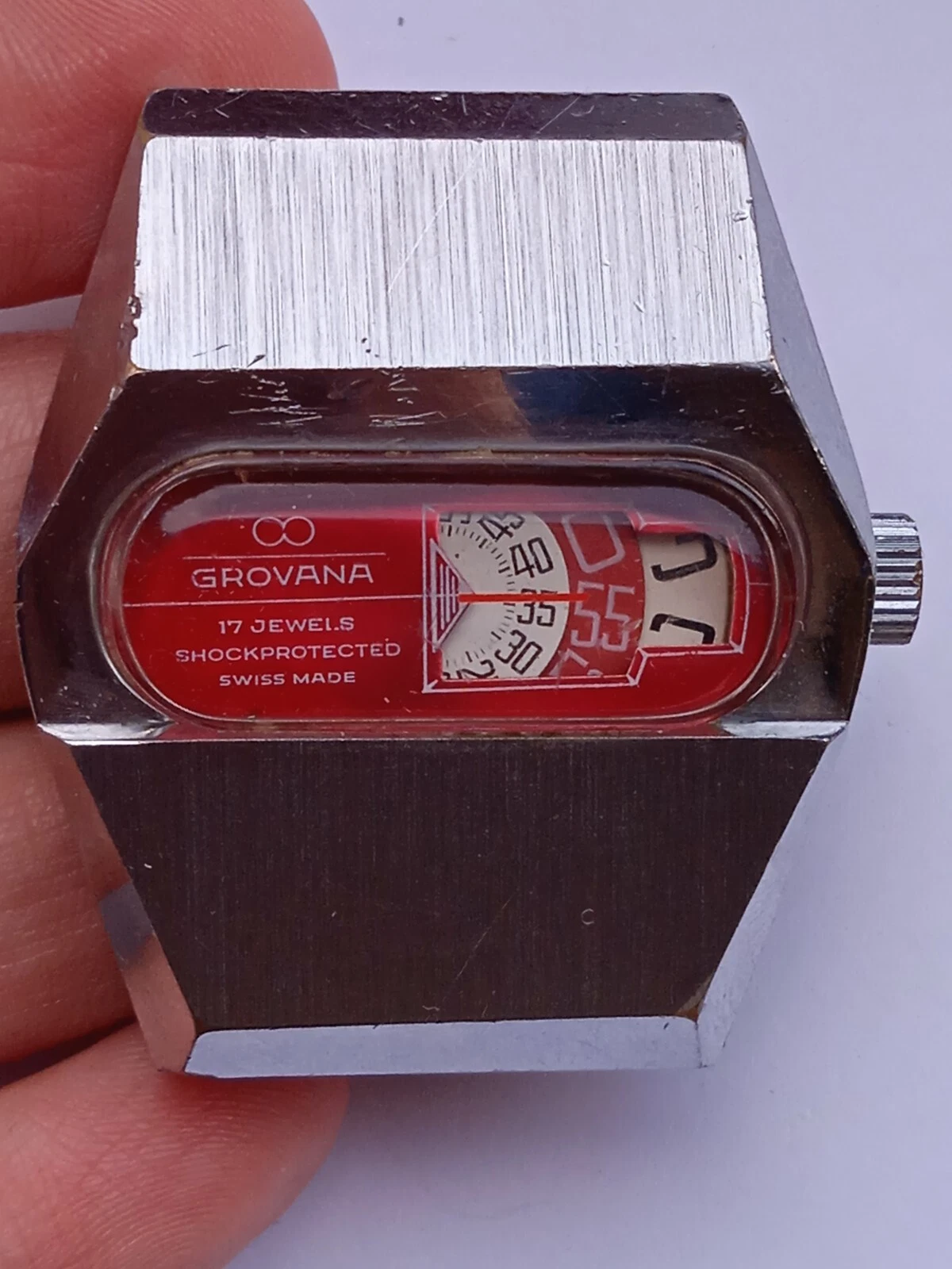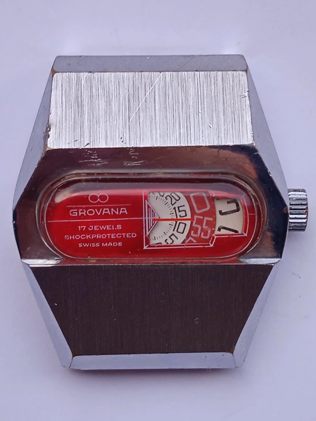 GROVANA Shockprotected 17 Jewels Swiss Red Dial RARE!!!!