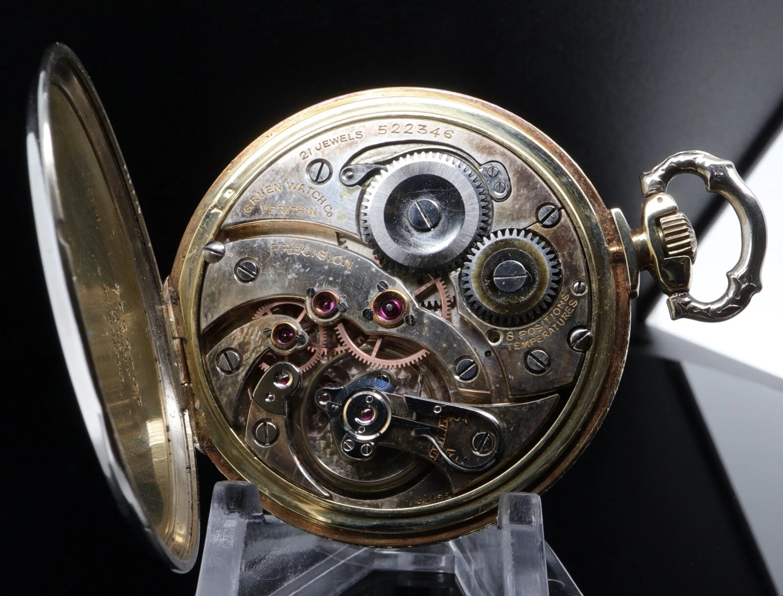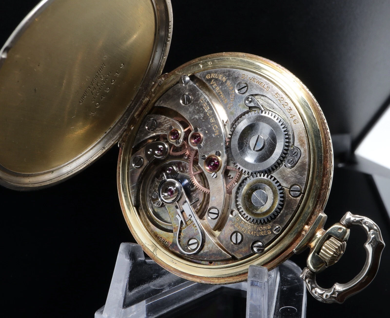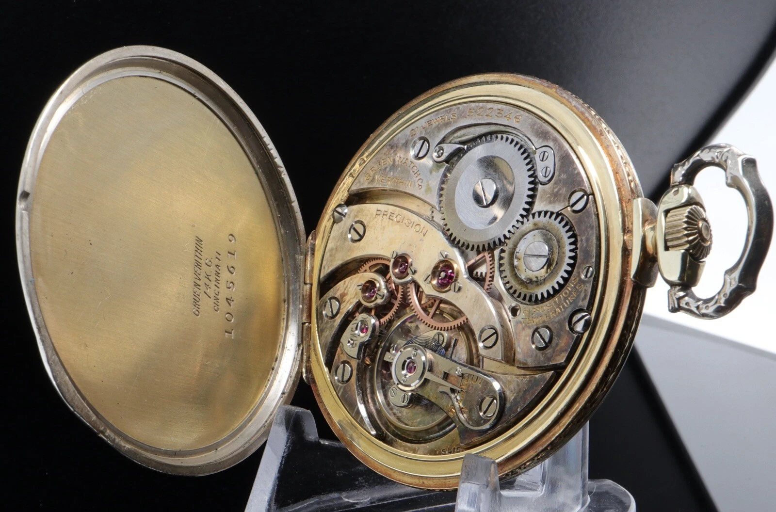 1942 Gruen 43.5mm Two Tone 14k Gold Verithin 21 Jewel 6 positions Pocket Watch