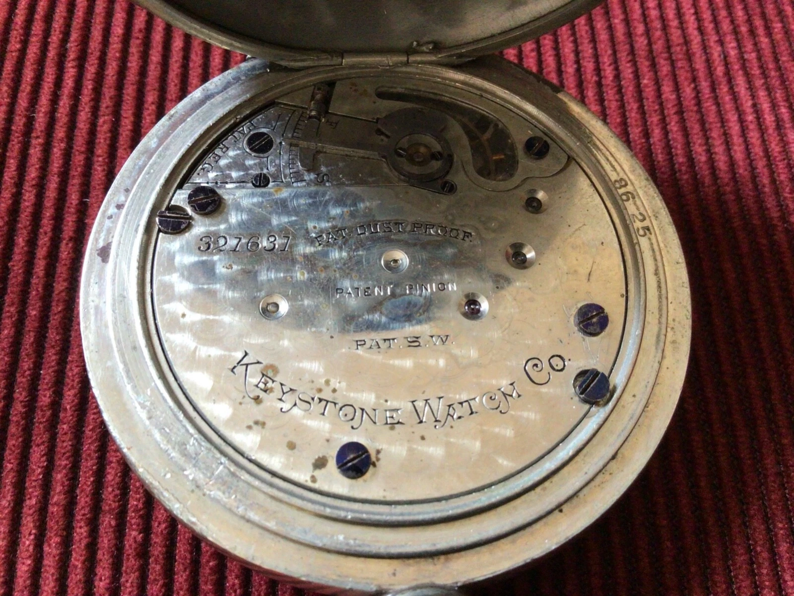Keystone Watch Co. Lancaster, Pa. "Very Rare Celluloid Dial" 18S. 10J. Dust Cove