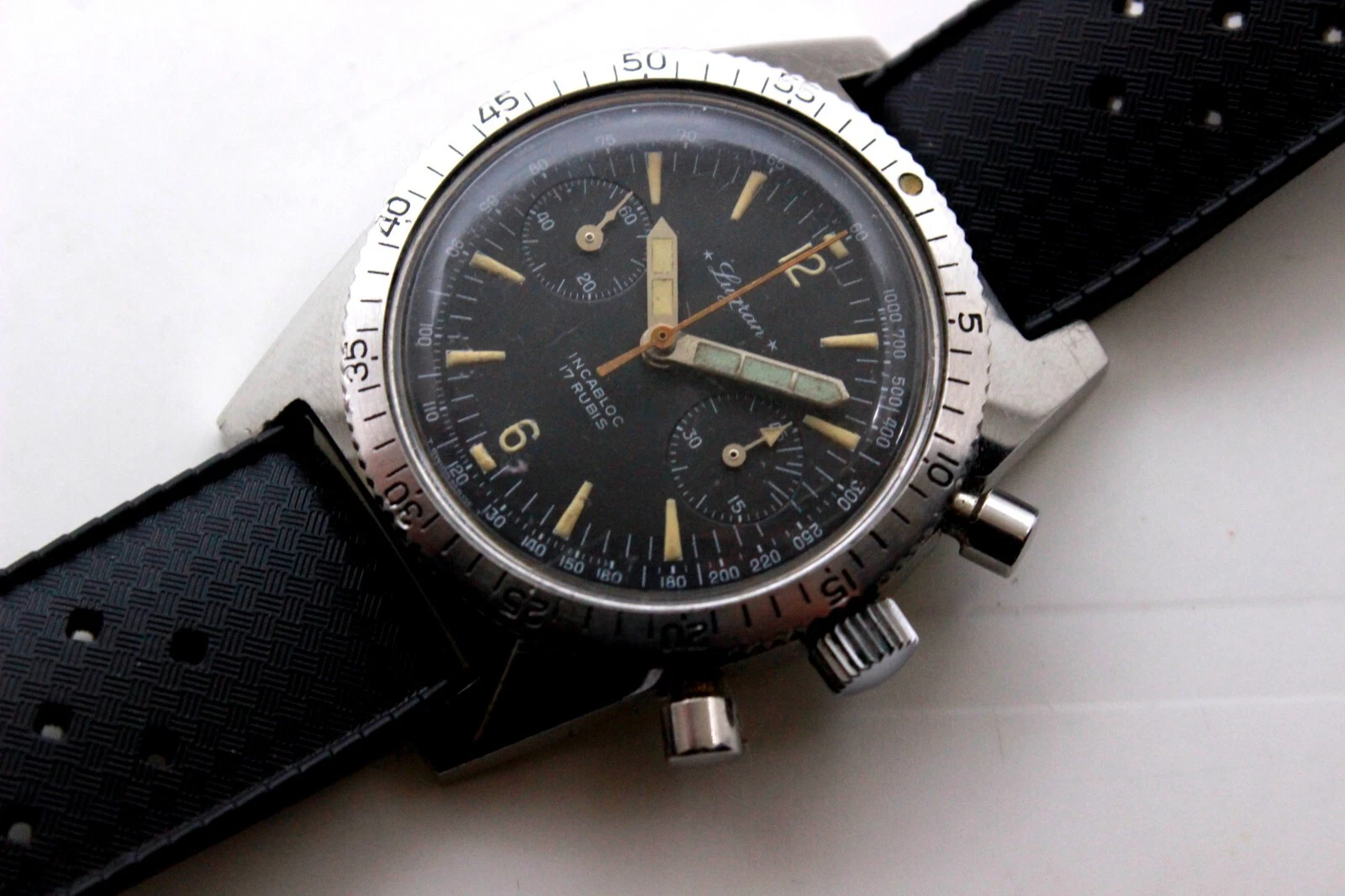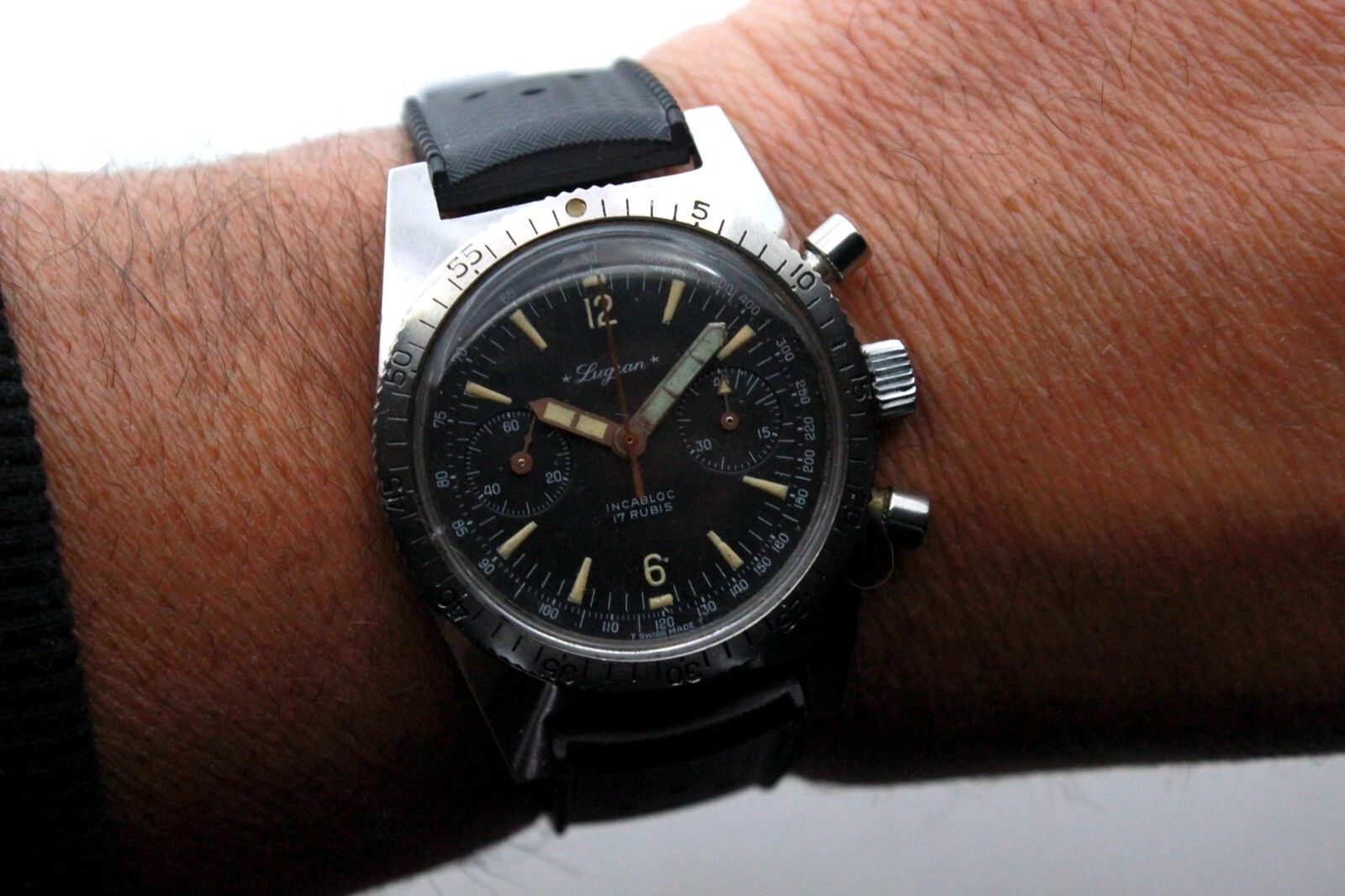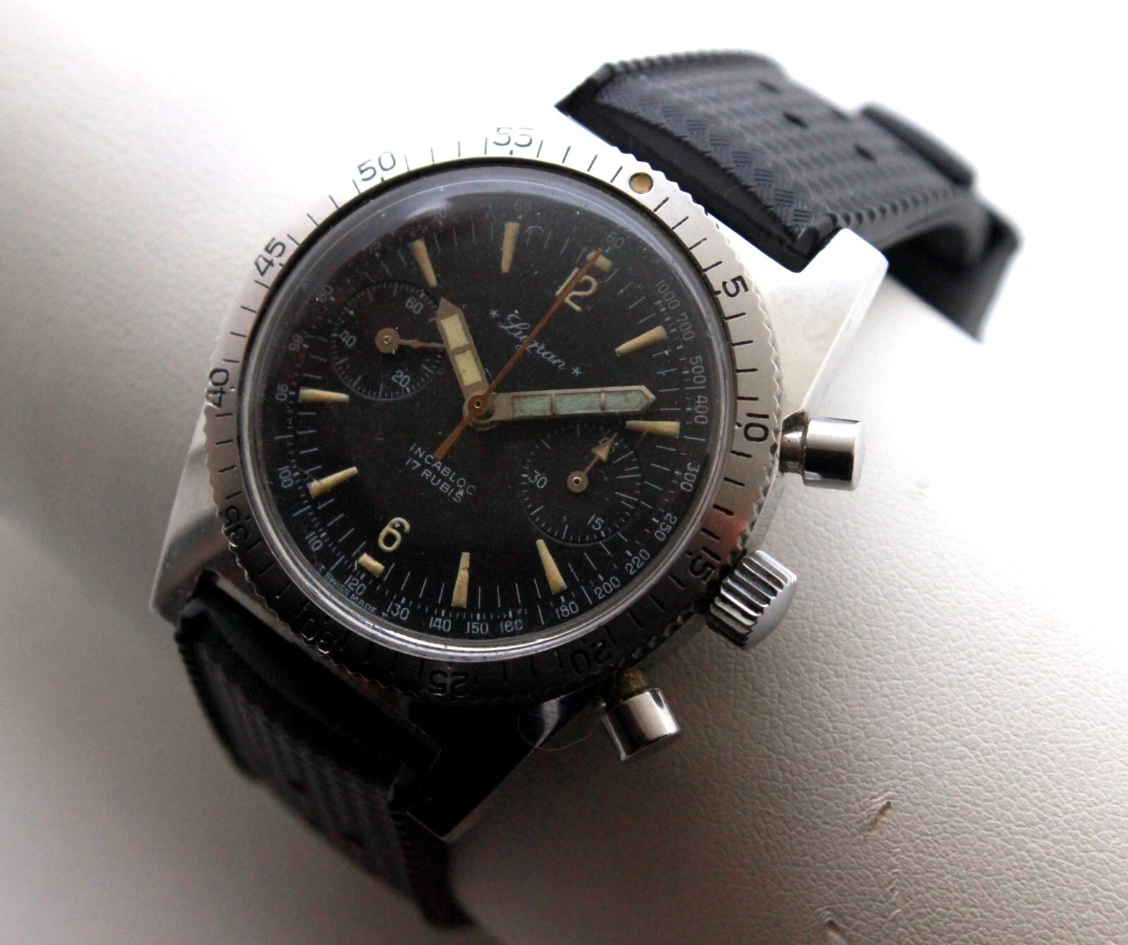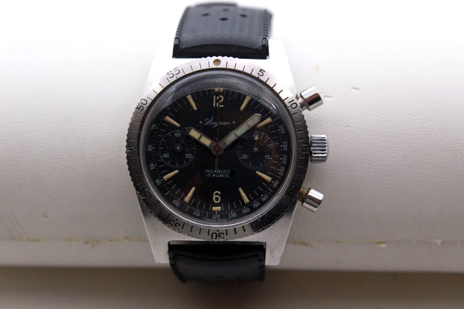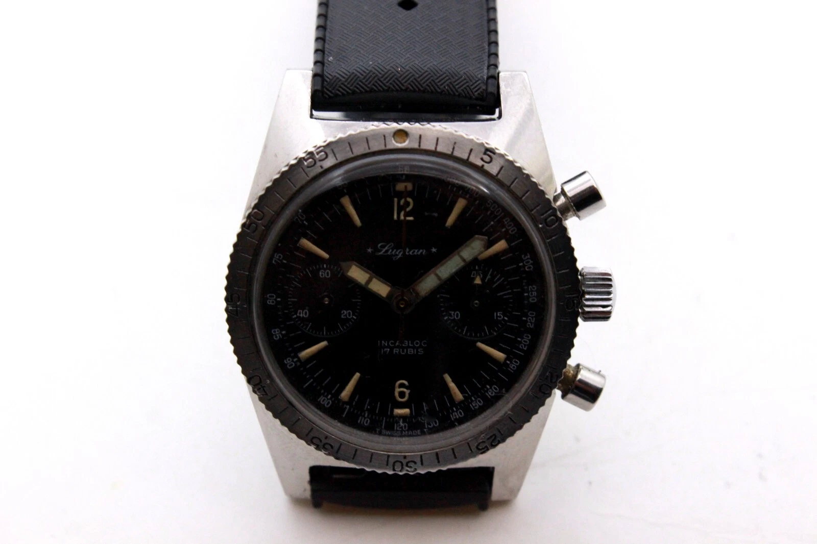 LUGRAN Skin Diver CHRONOGRAPH Incabloc Manual LANDERON 49-38mm-STEEL-(Aquastar)