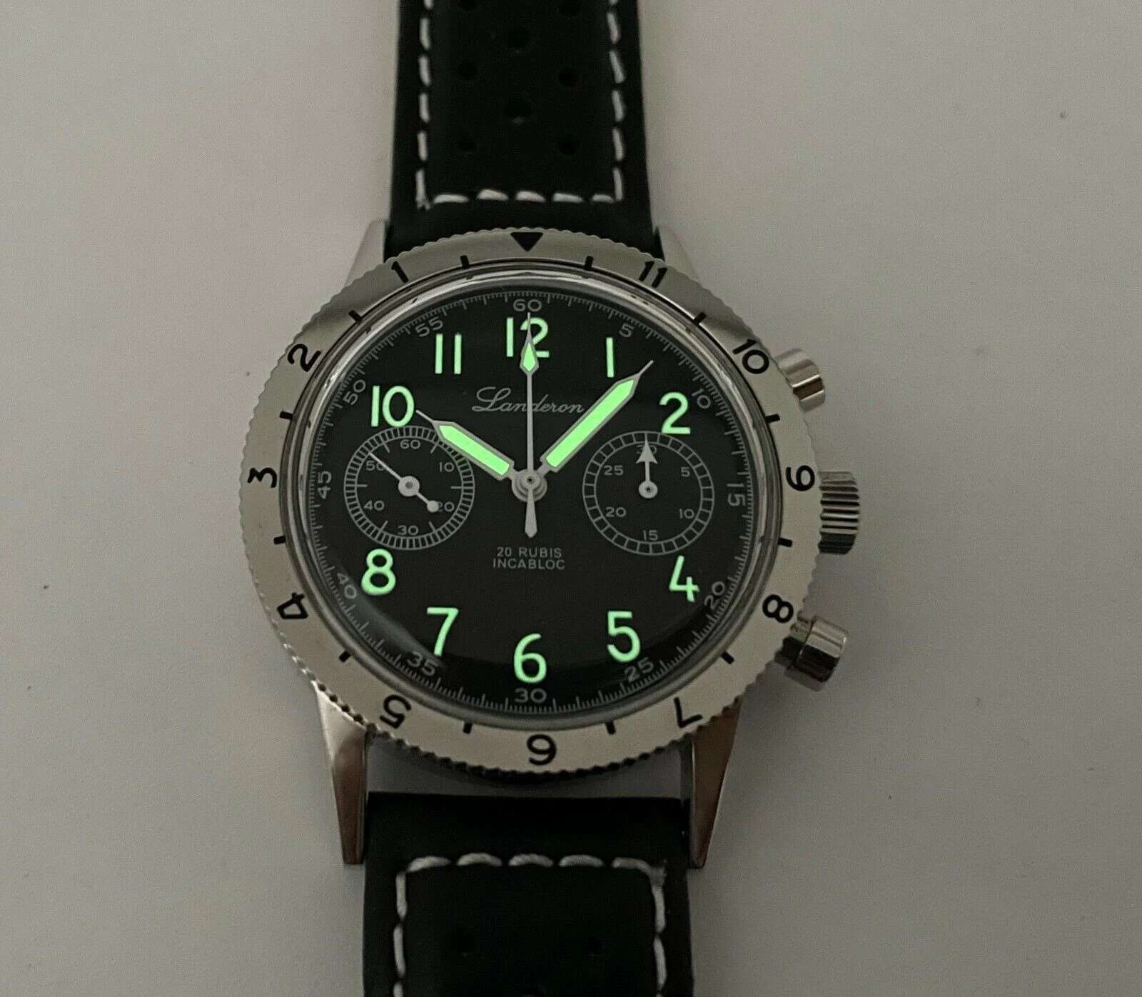LANDERON CHRONOGRAPH TYPE 20 WHITE INDEXES MANUAL WINDING (C)