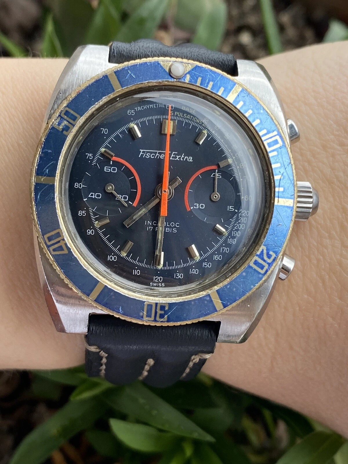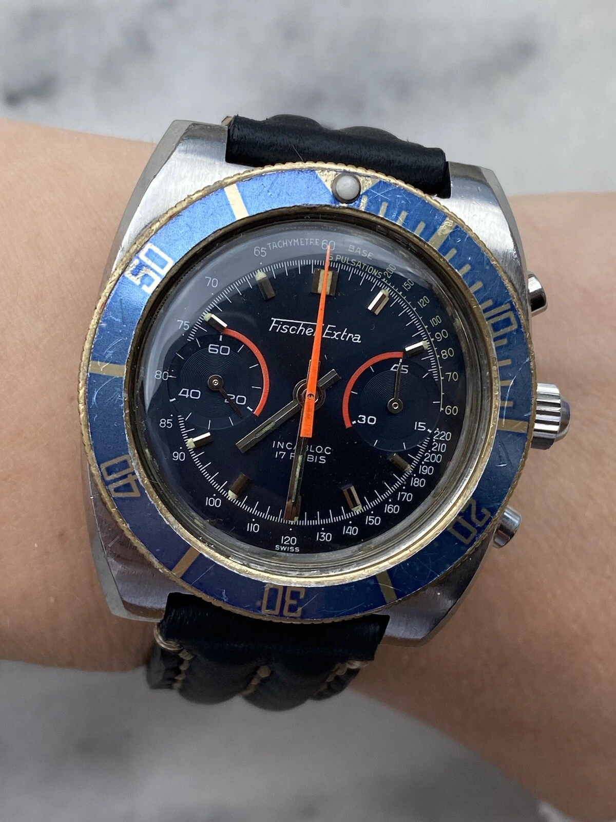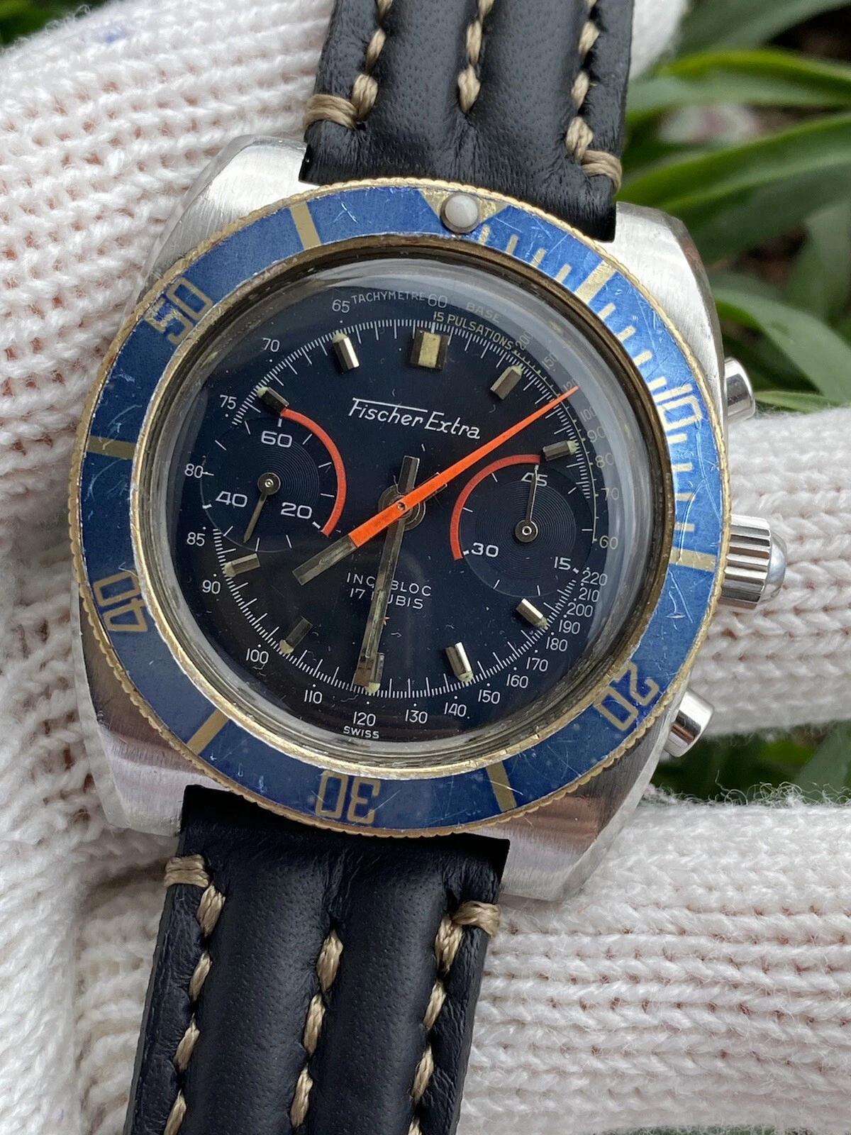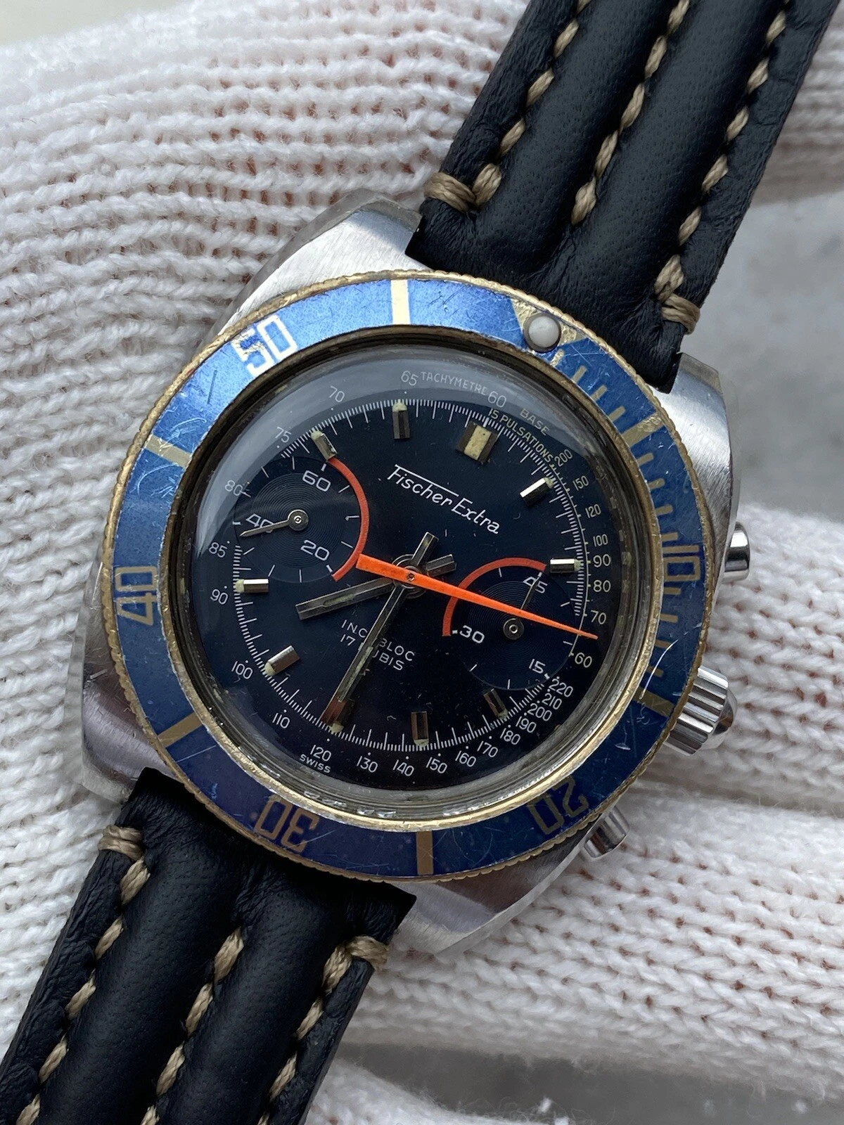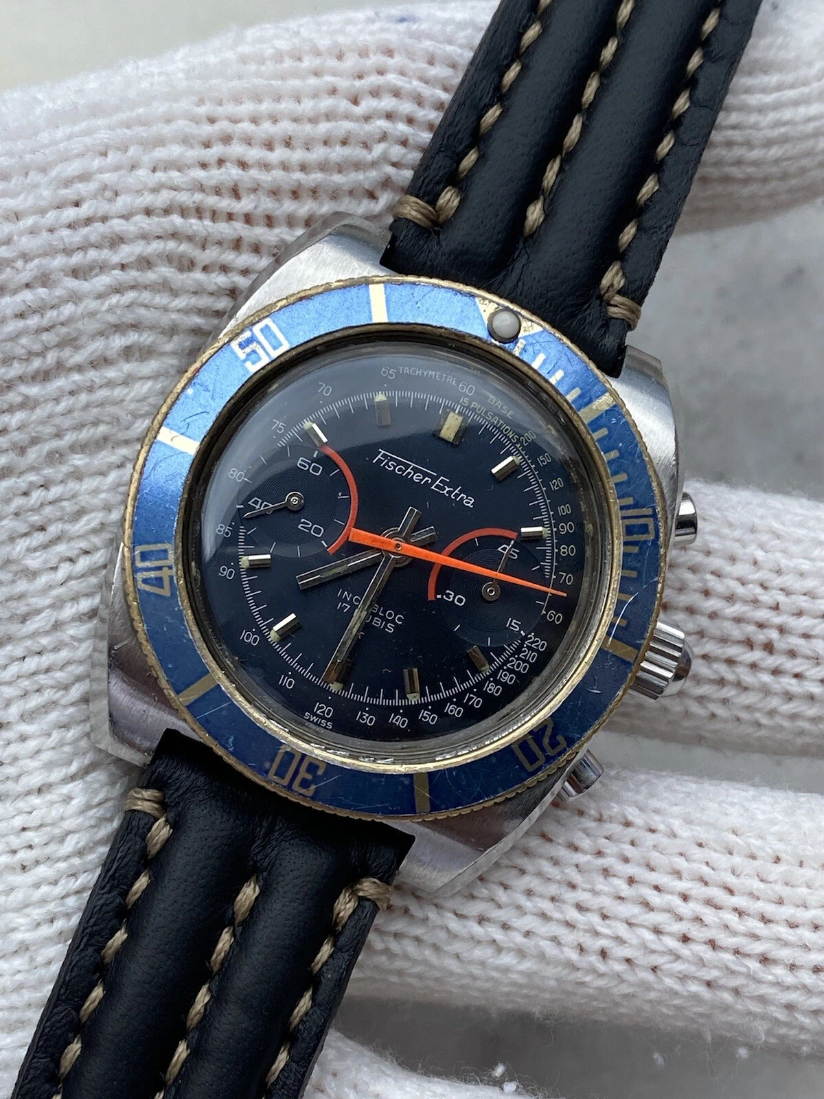 Chronograph Diver Watch Manual Landeron 149 Fischer Extra Mens 38.5mm Swiss Made