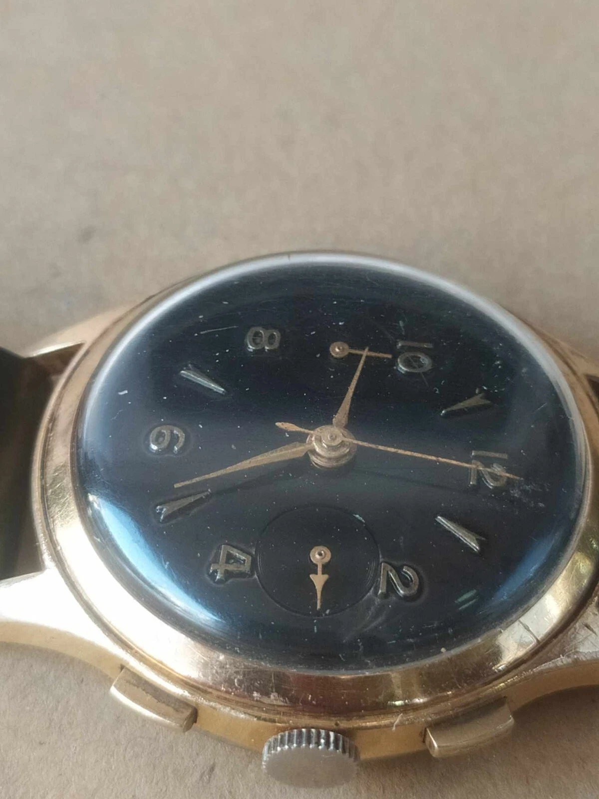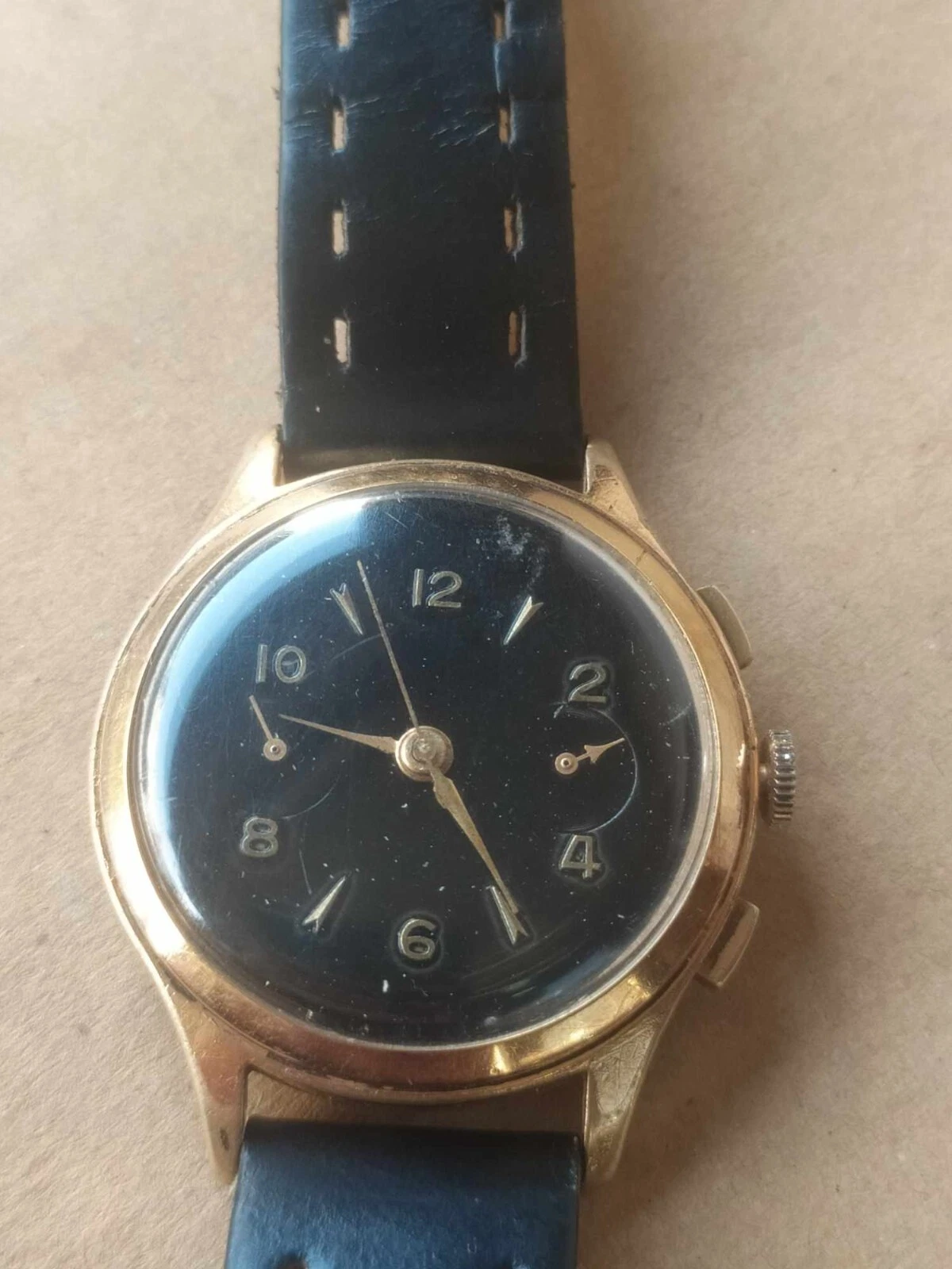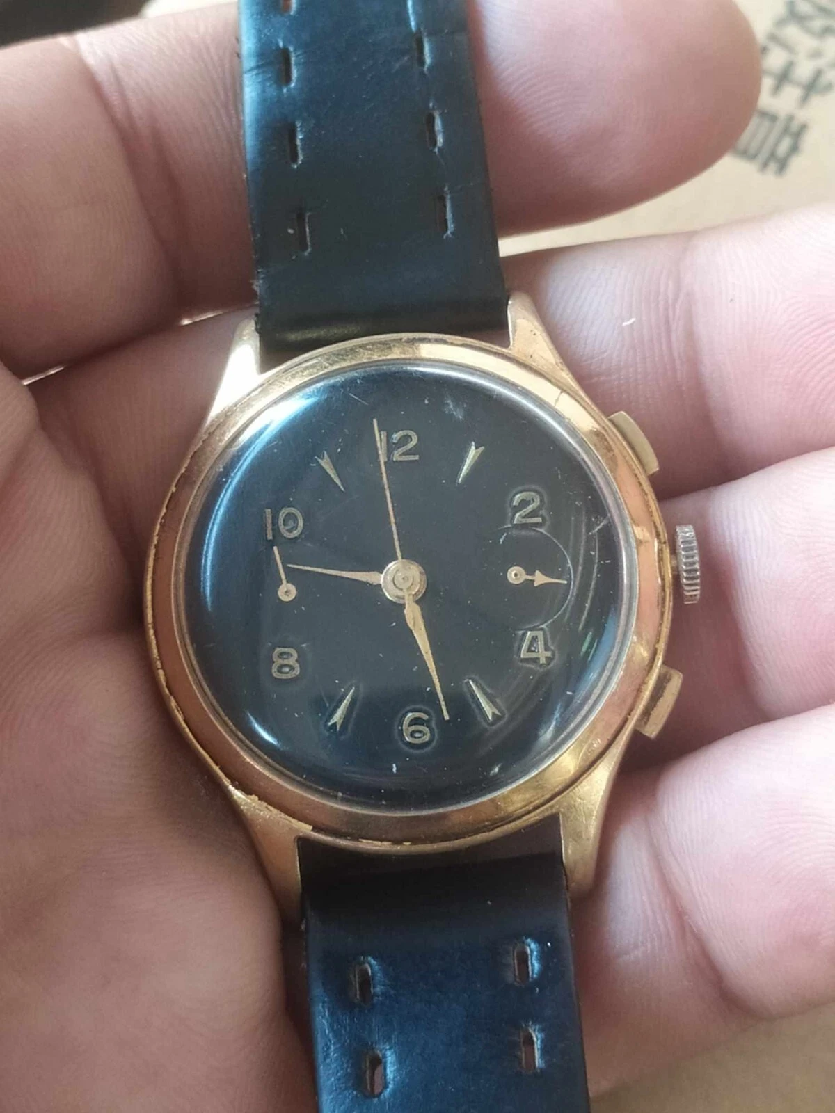 vintage swiss mechanic landeron 51 working 37MM chronograph black dial rare