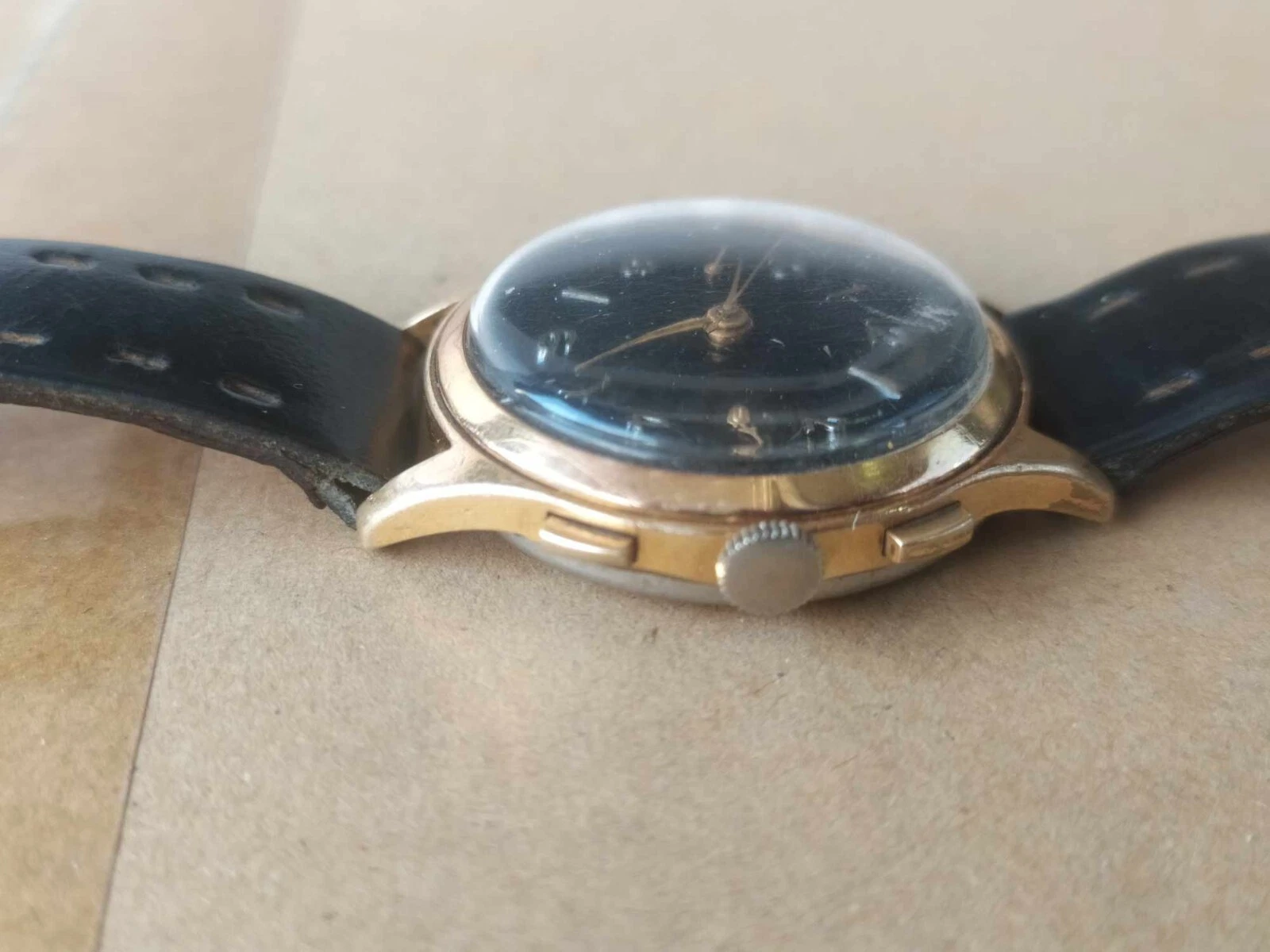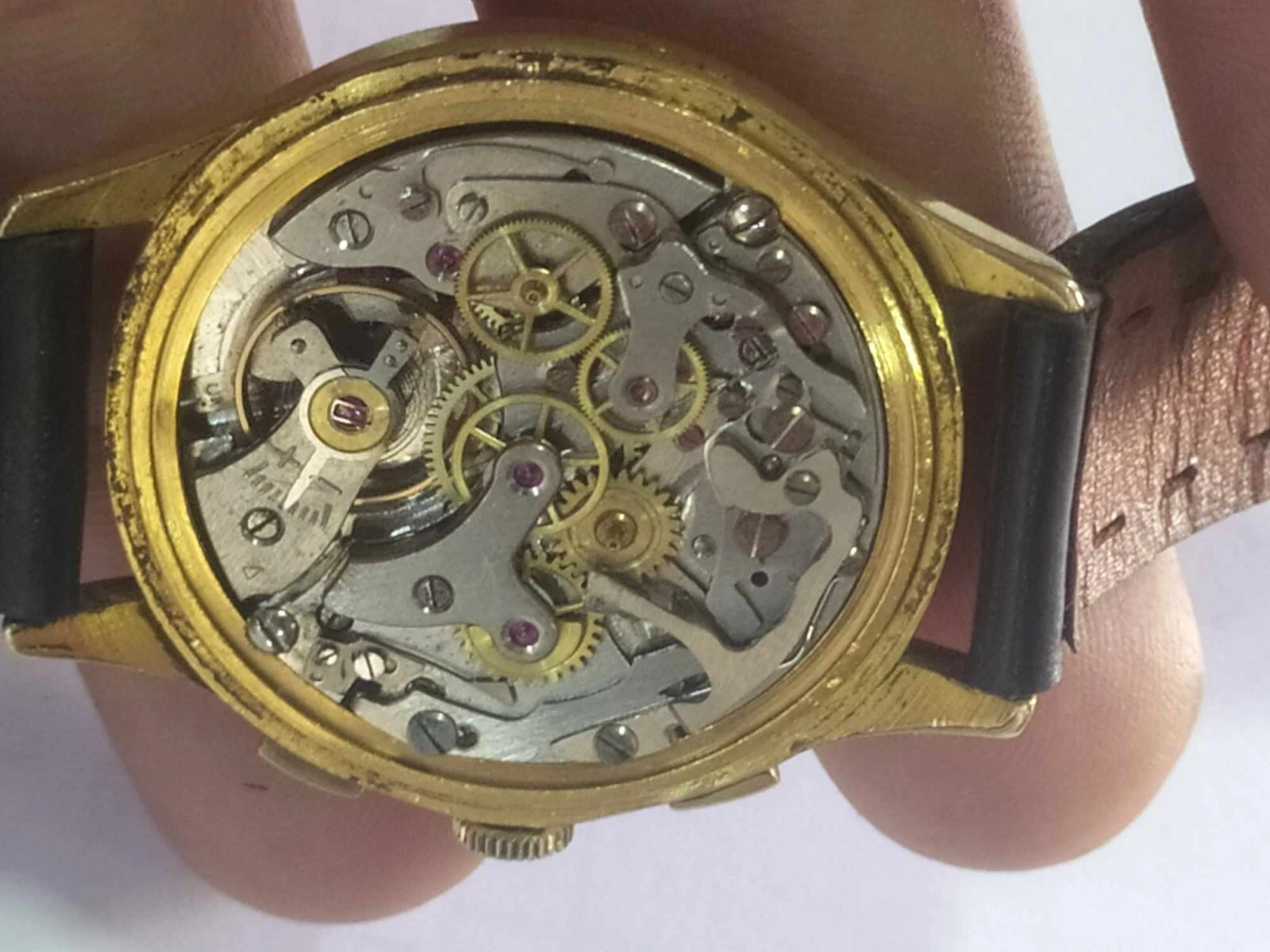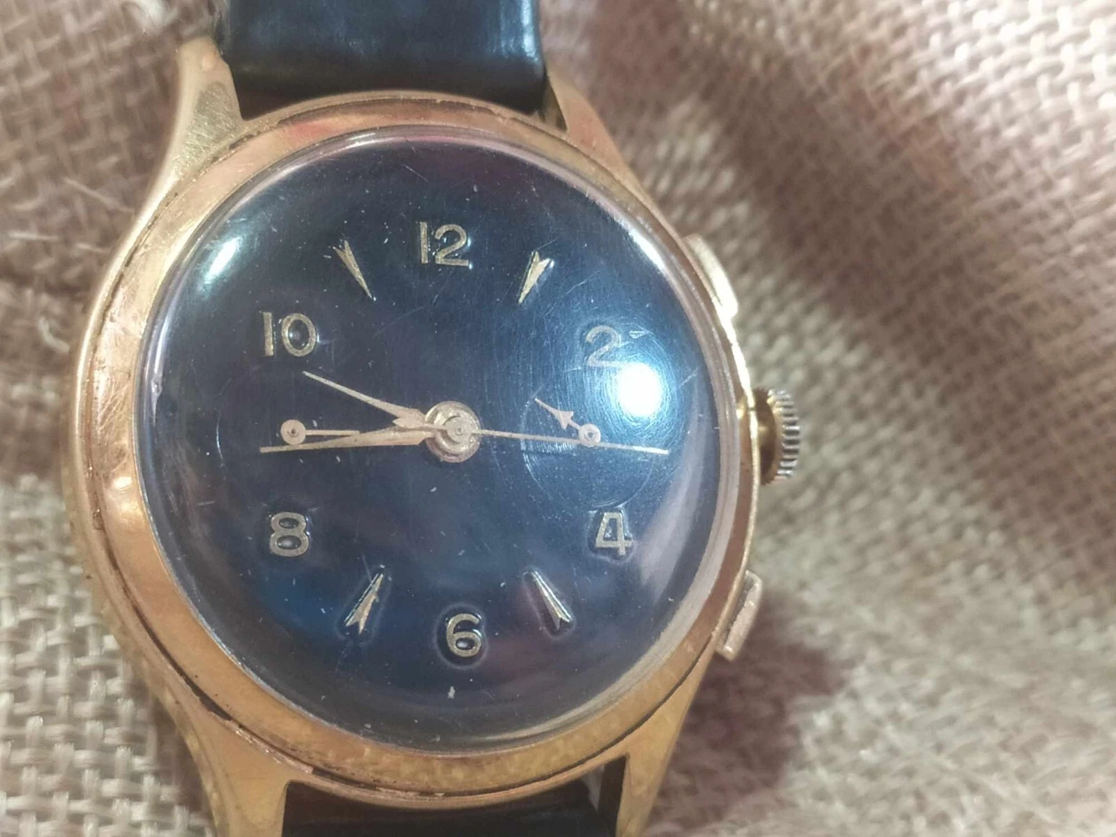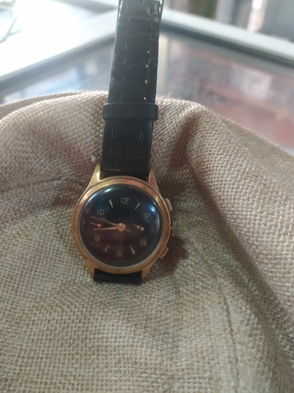 vintage swiss mechanic landeron 51 working 37MM chronograph black dial rare