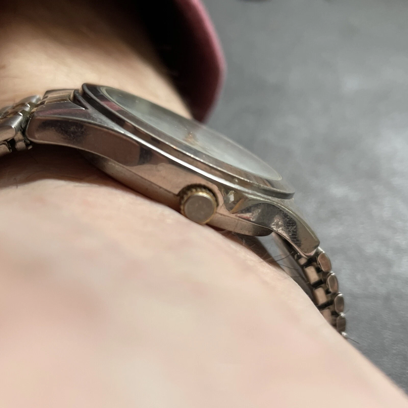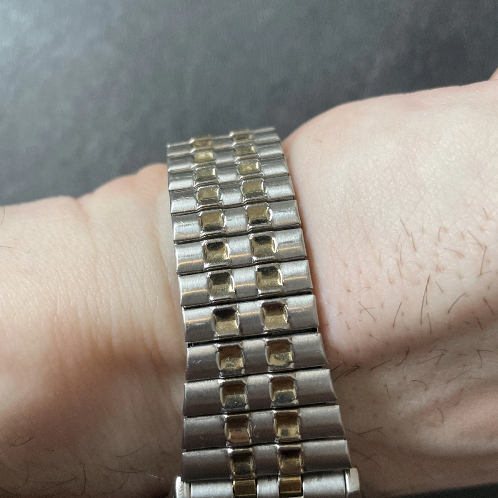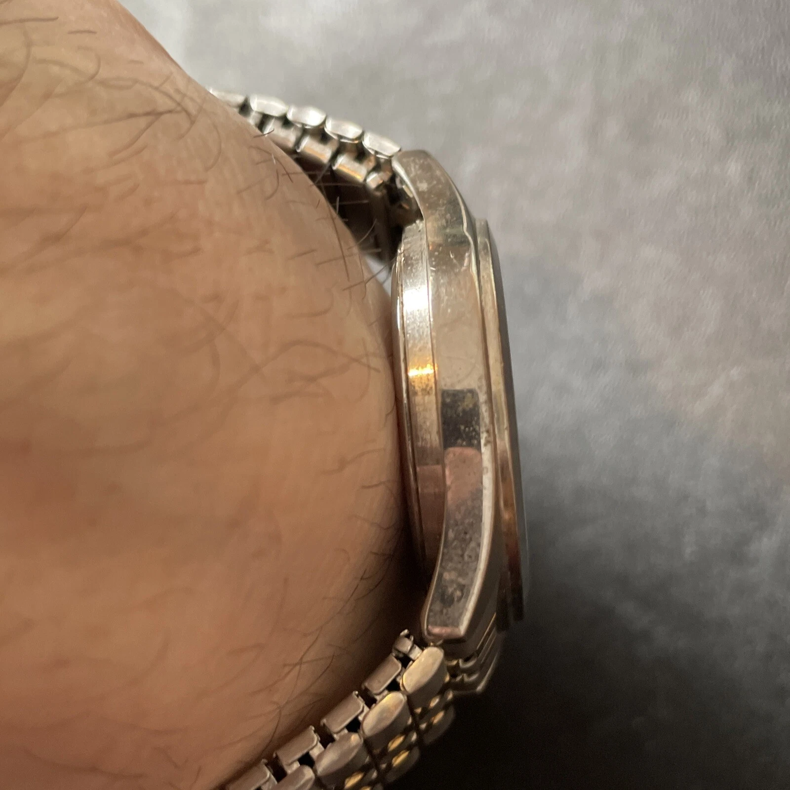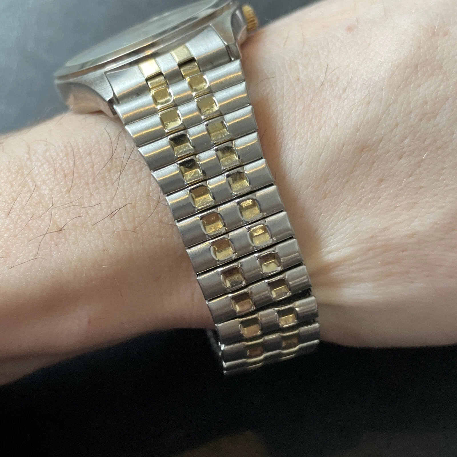 Vintage Embassy By Gruen Day/Date Quartz Watch New Battery President Flexo Steel