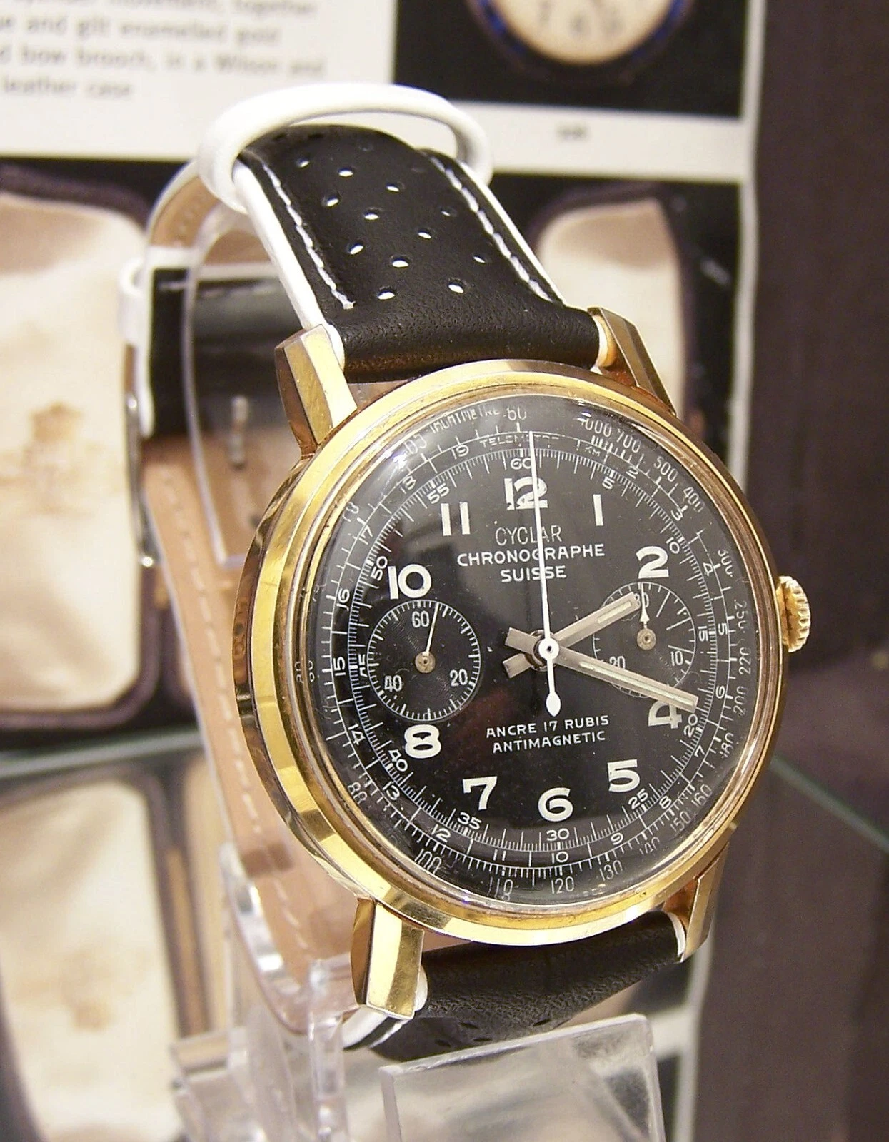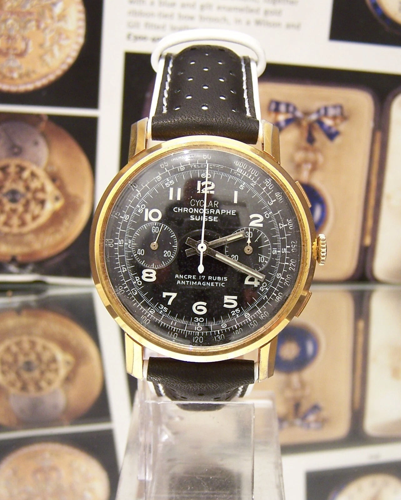 60'S LOVELY BLACK DIAL MILITARY STYLE LANDERON 48 CYCLAR CHRONOGRAPH WATCH WORKS