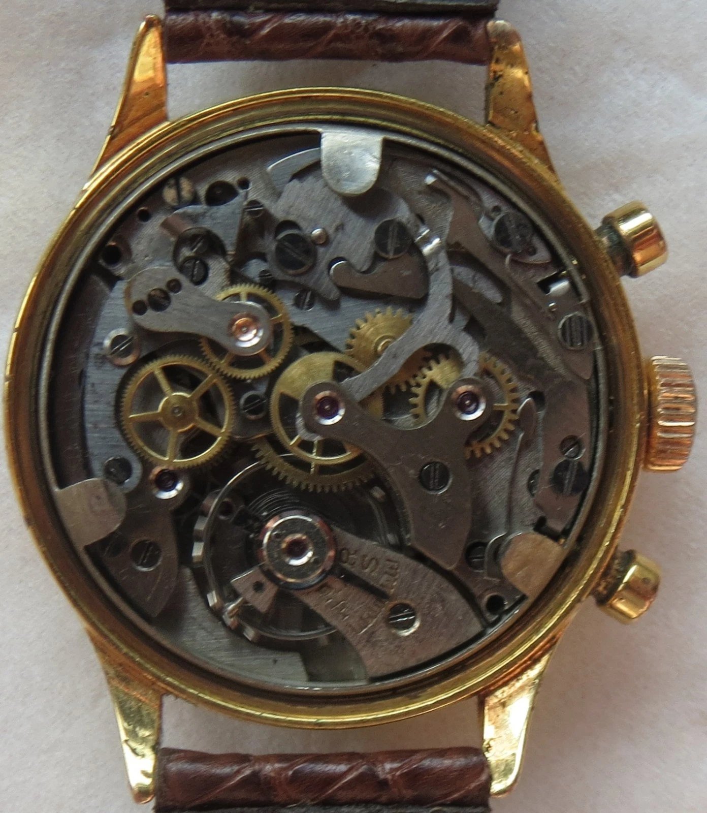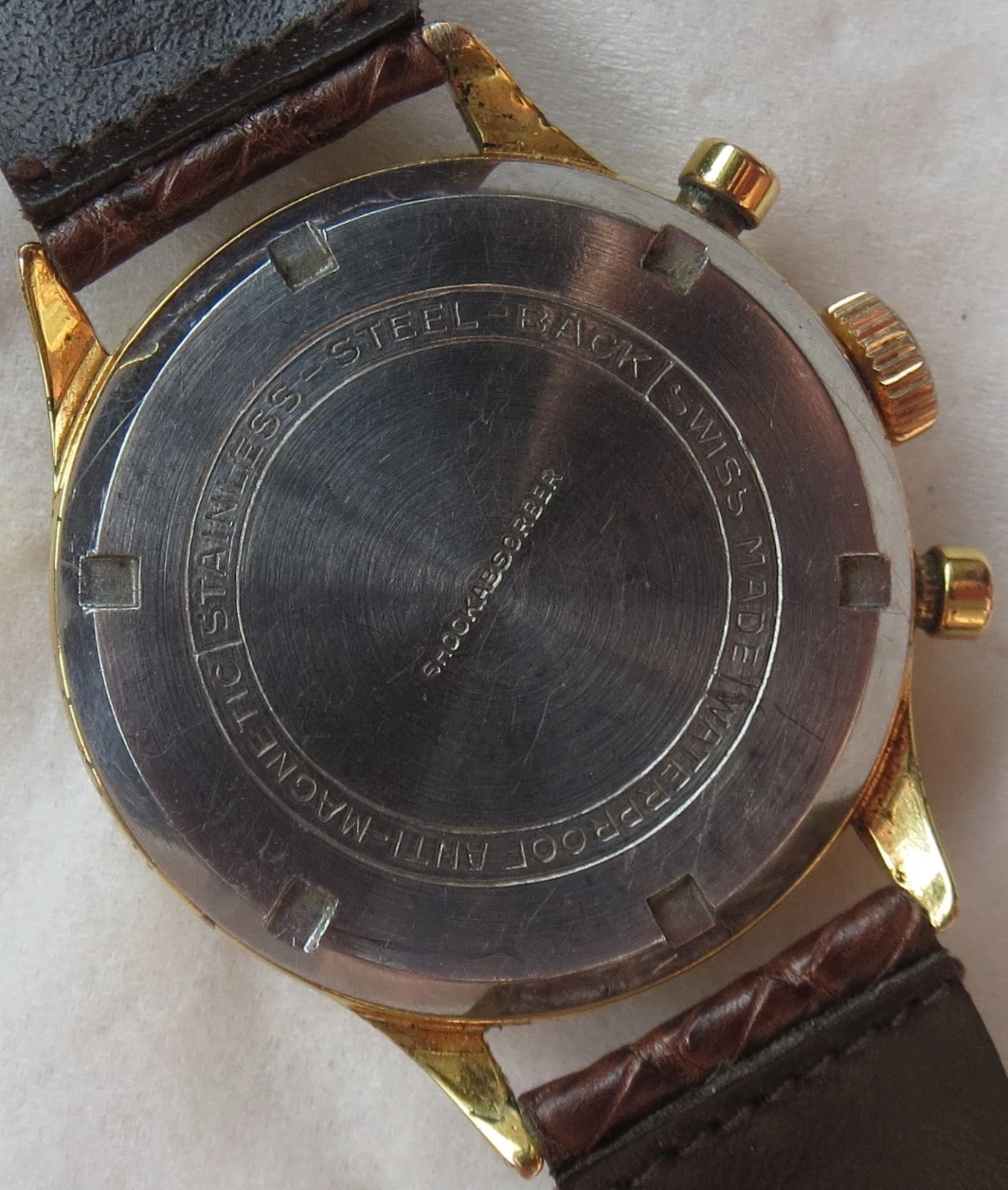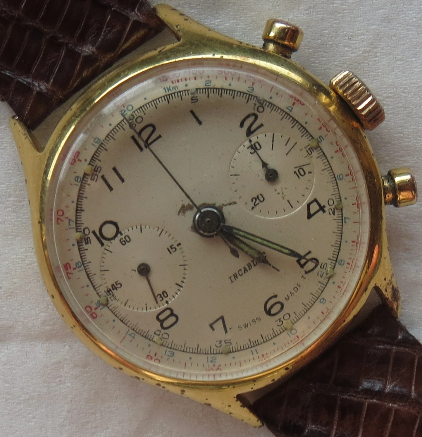 Chronograph mens wristwatch gold filled case cal. Landeron 35,5 mm. in diameter