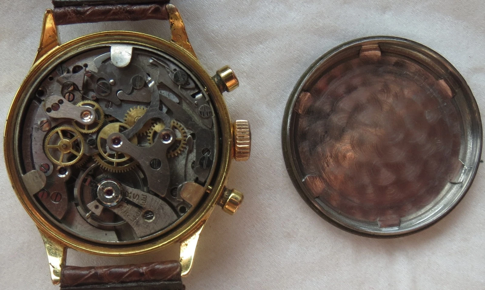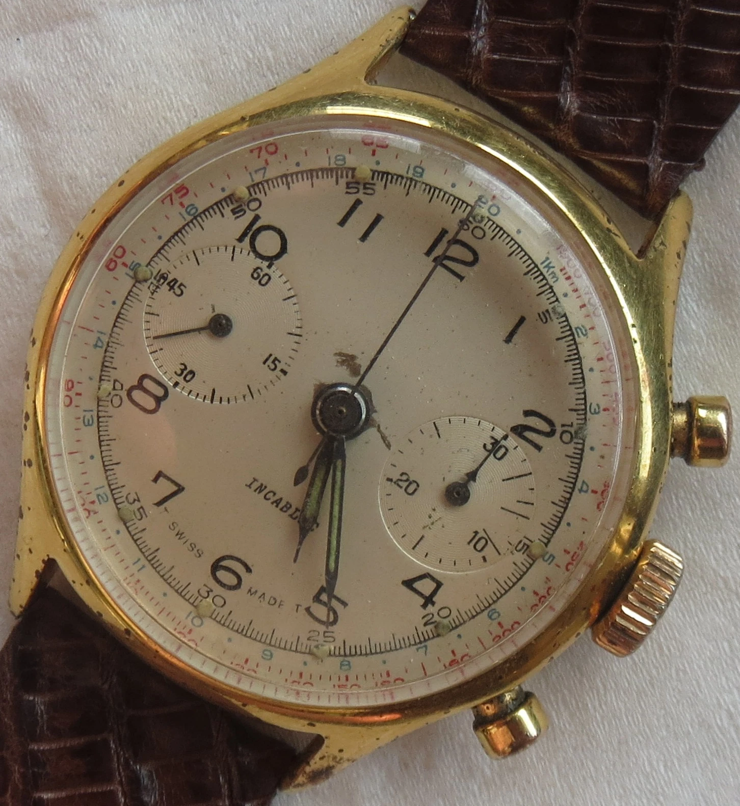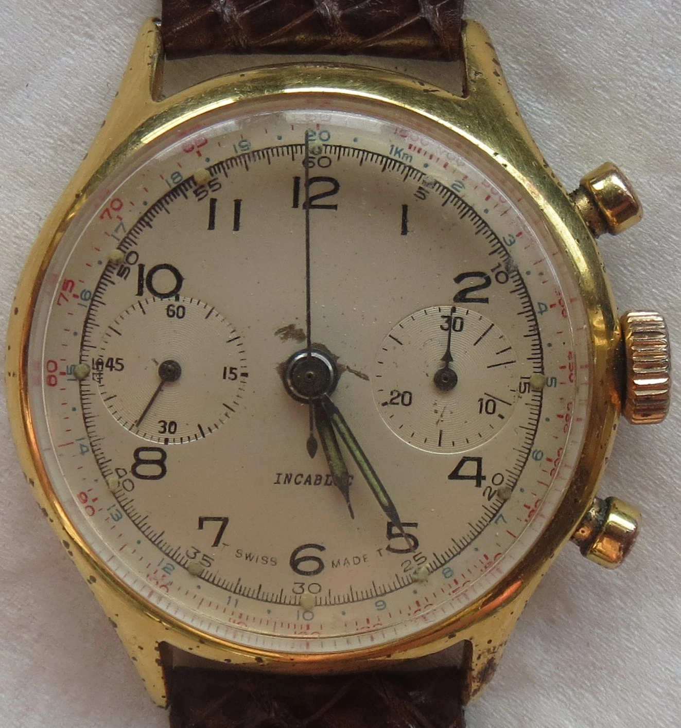 Chronograph mens wristwatch gold filled case cal. Landeron 35,5 mm. in diameter