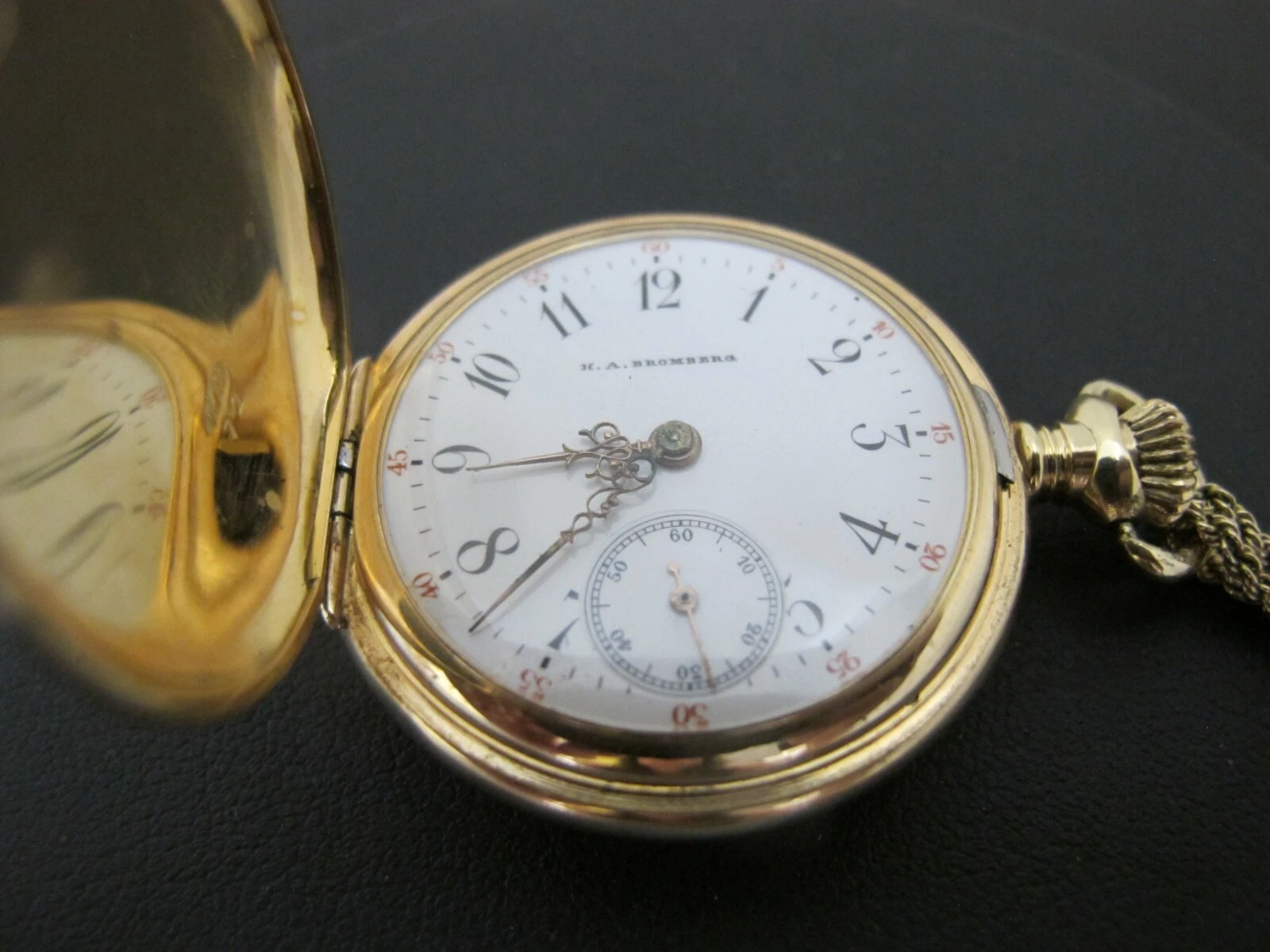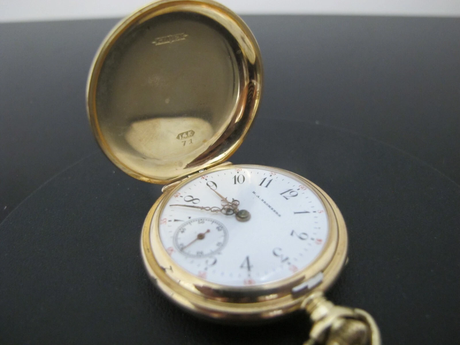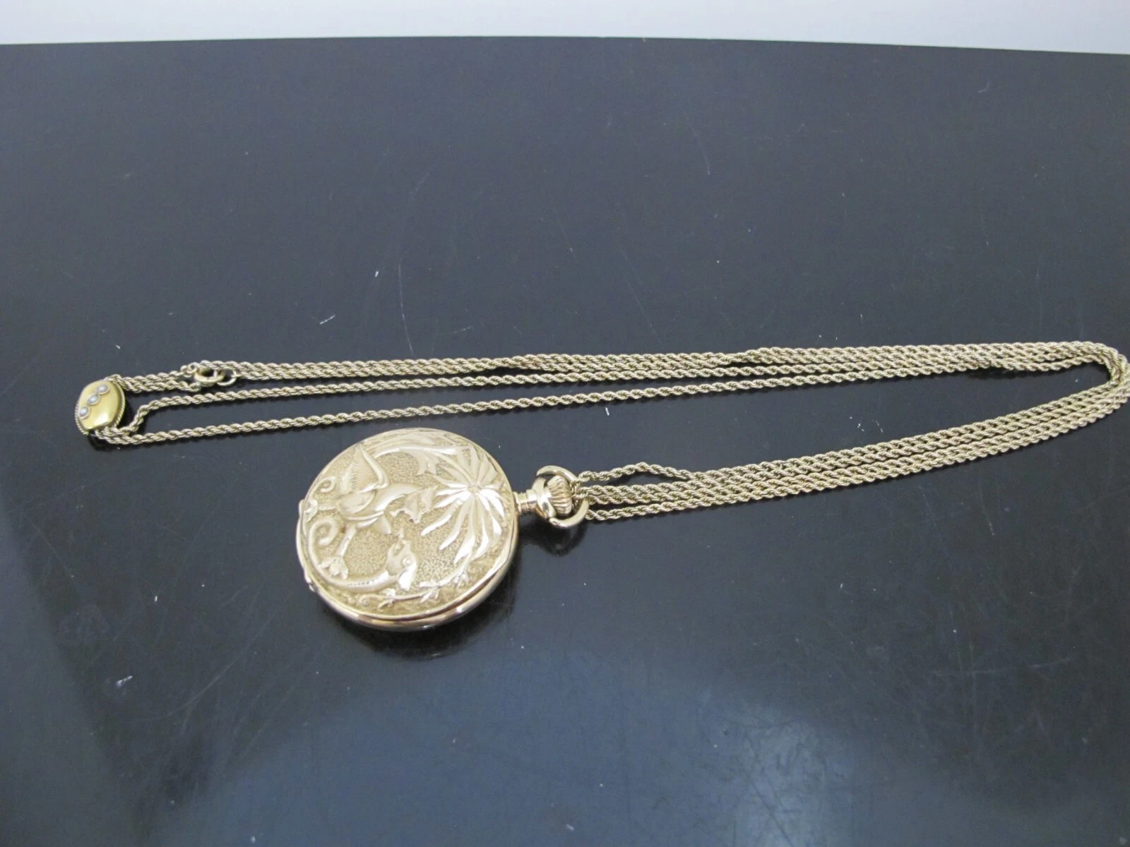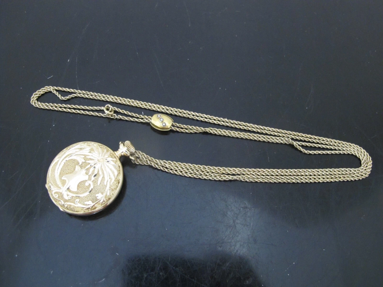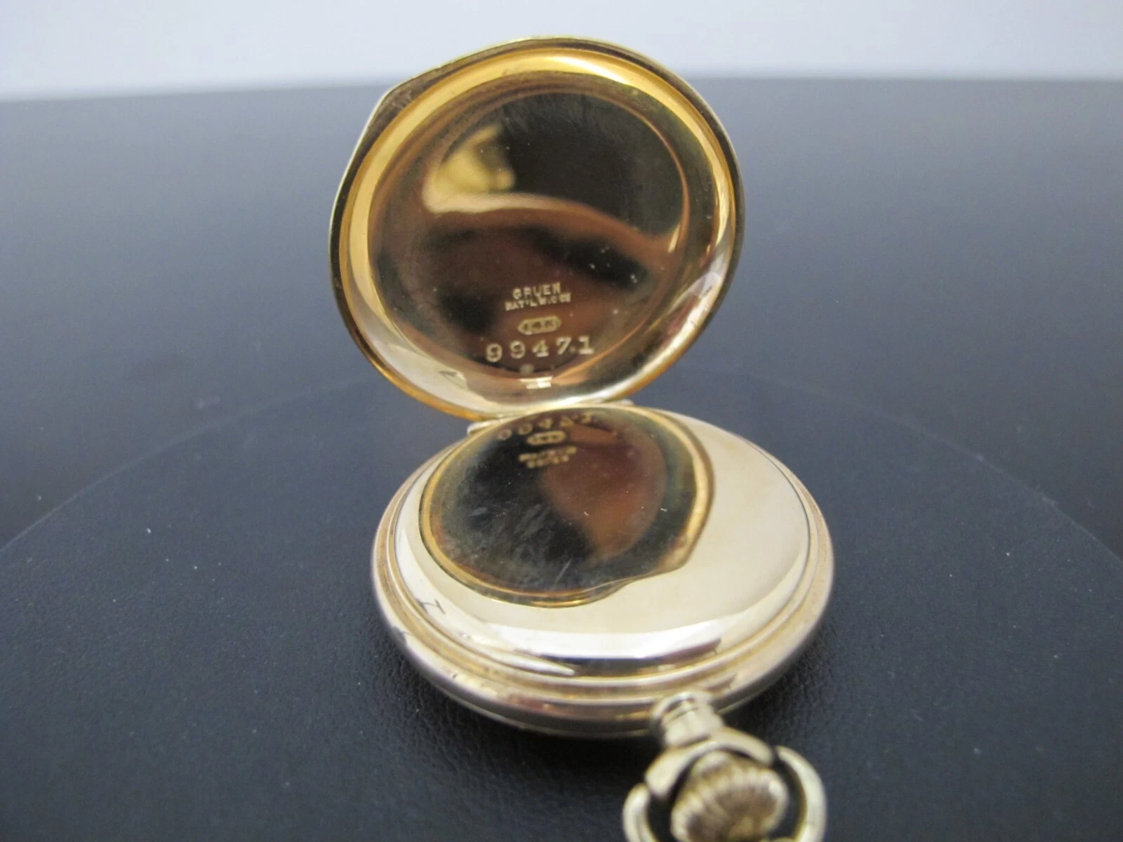GRUEN 14k Yellow Gold Engraved GRIFFINS Hunter Case Seed Pearl FOB Pocket WATCH