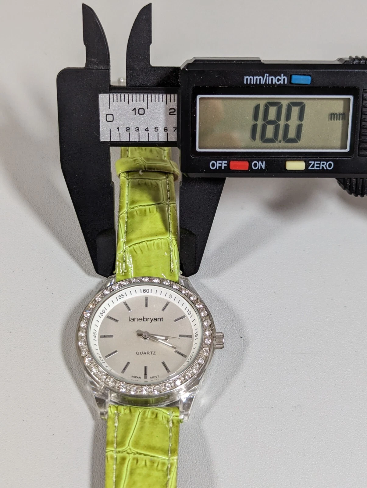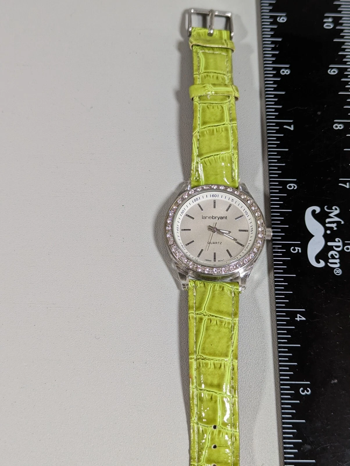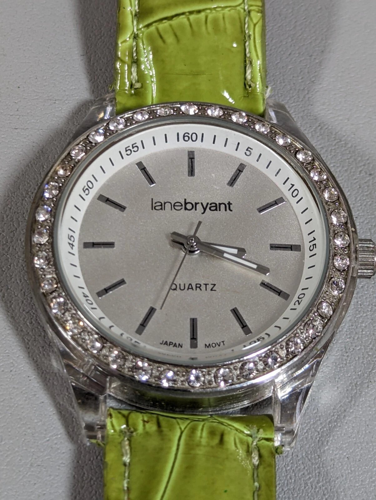 Lane Bryant Silver Tone Dial Round Crystal Accent Case Green Band Watch
