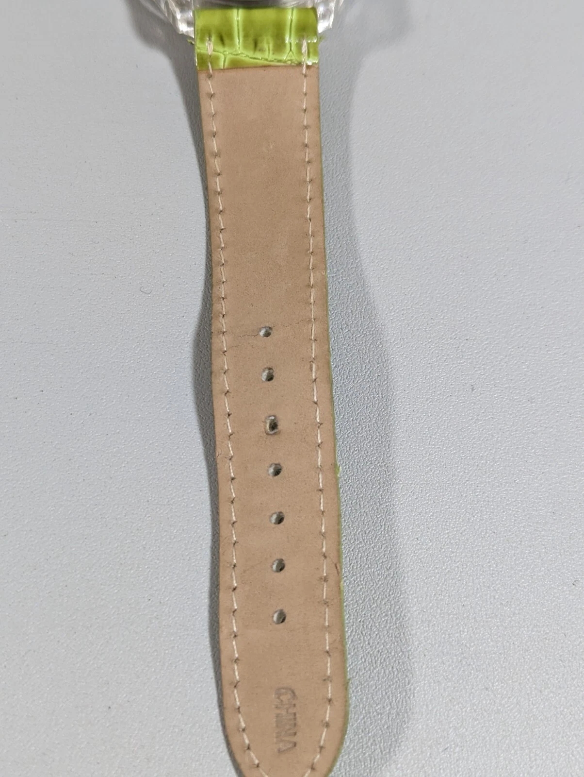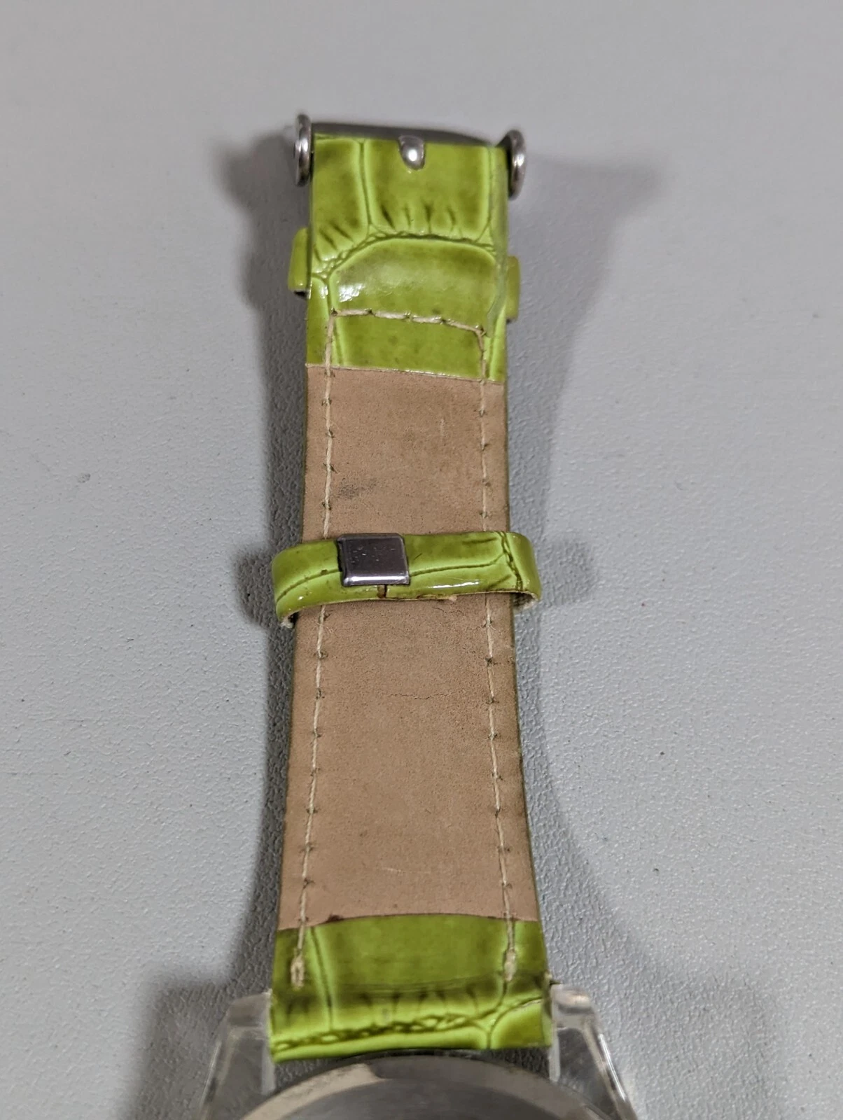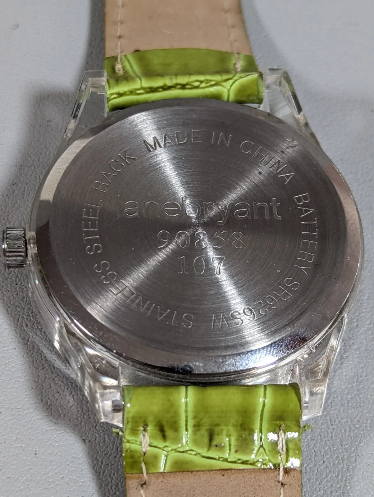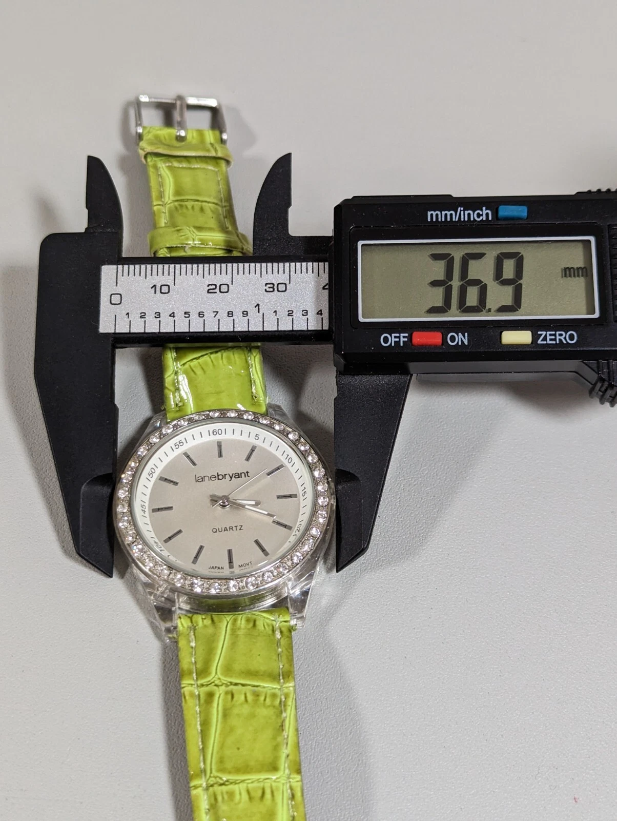 Lane Bryant Silver Tone Dial Round Crystal Accent Case Green Band Watch