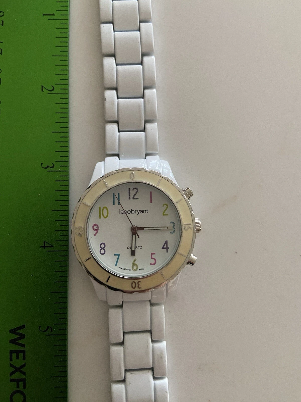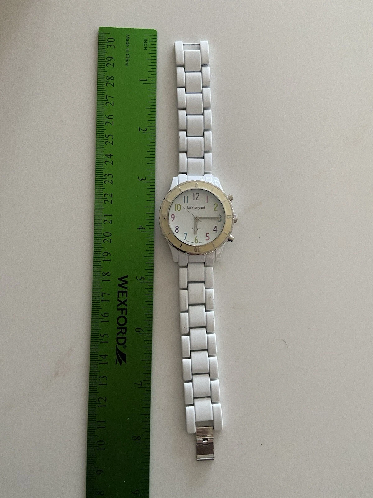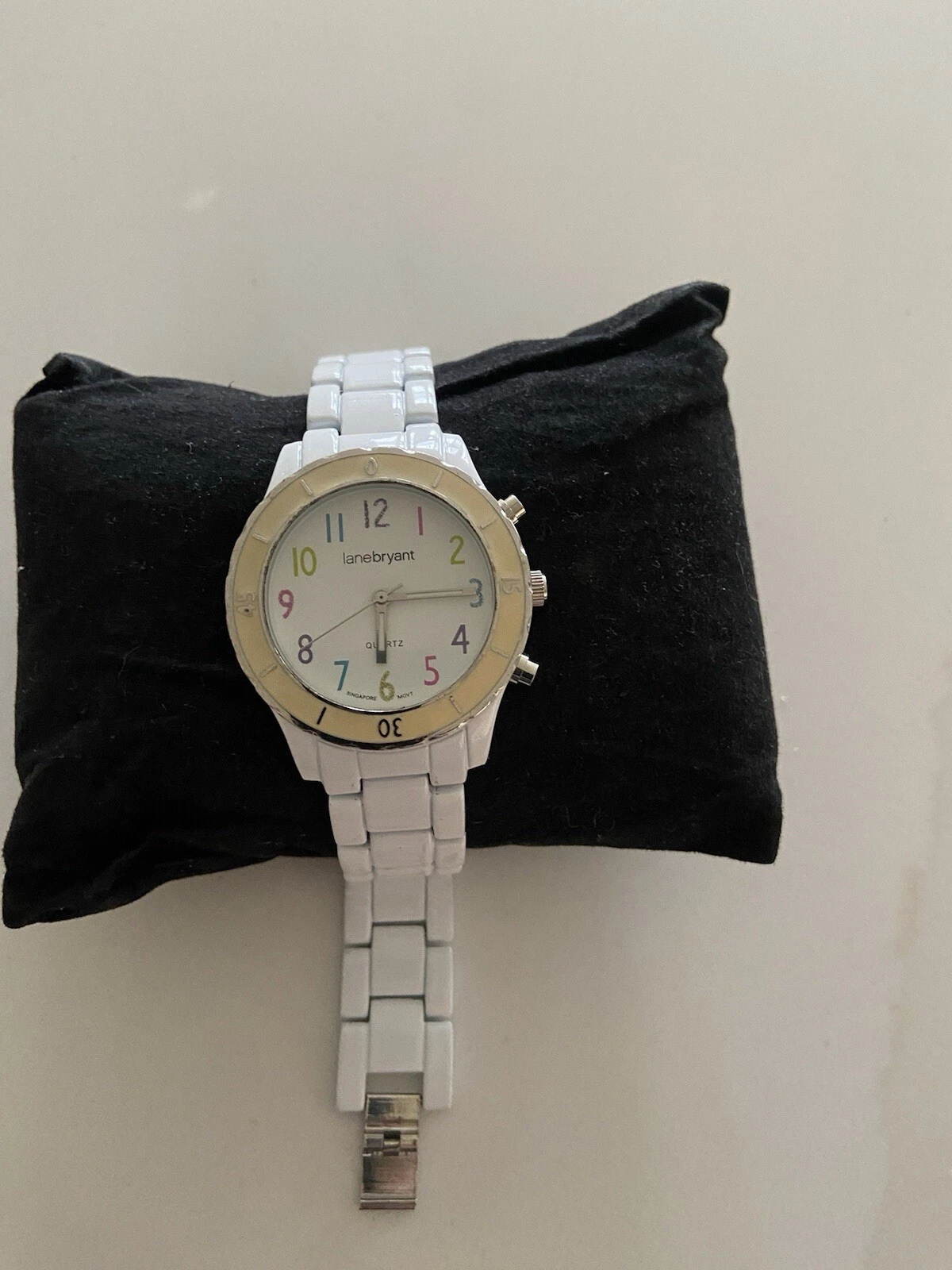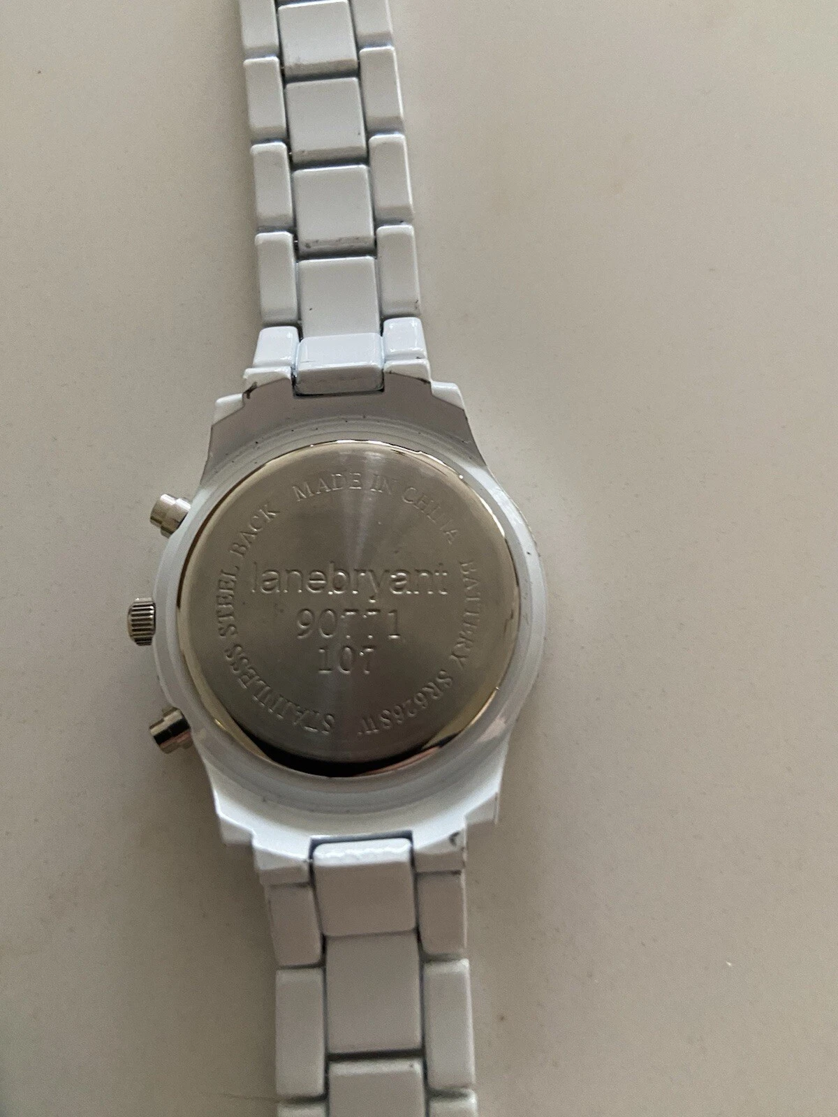 Lane Bryant White Dial Round Case Link Bracelet Band Watch Works Great New Batt.