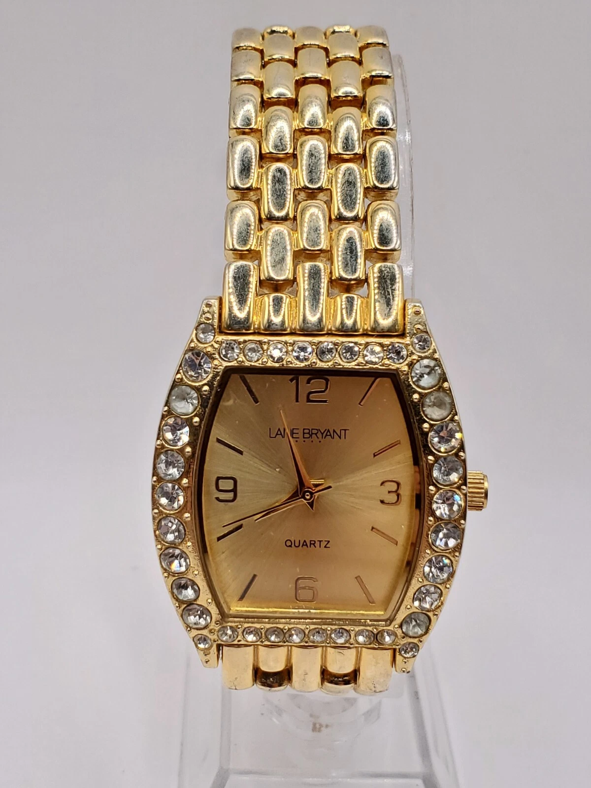 Lane Bryant Ladies Fashion Gem Quartz Watch 31mm Oval Gold Tone Bracelet Band