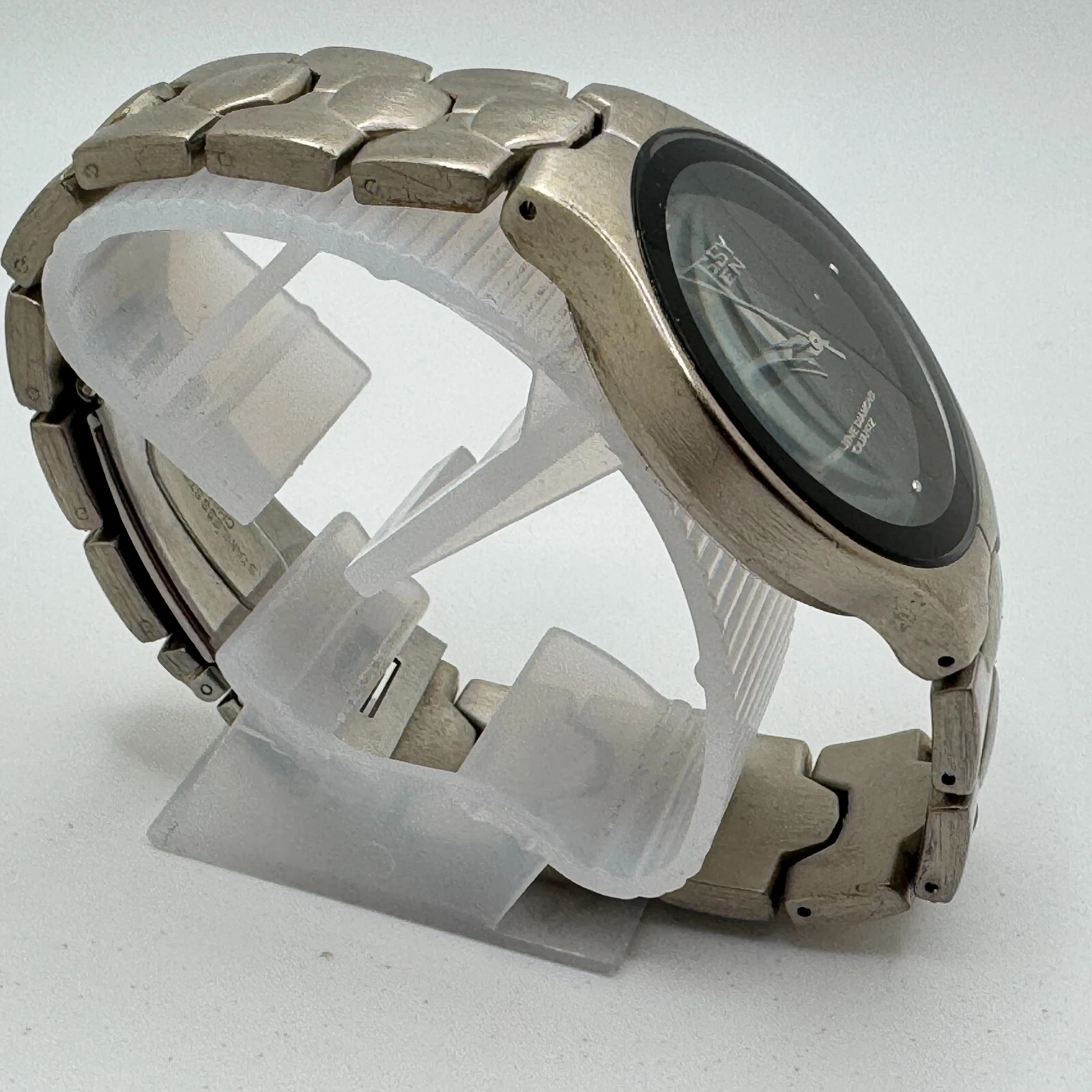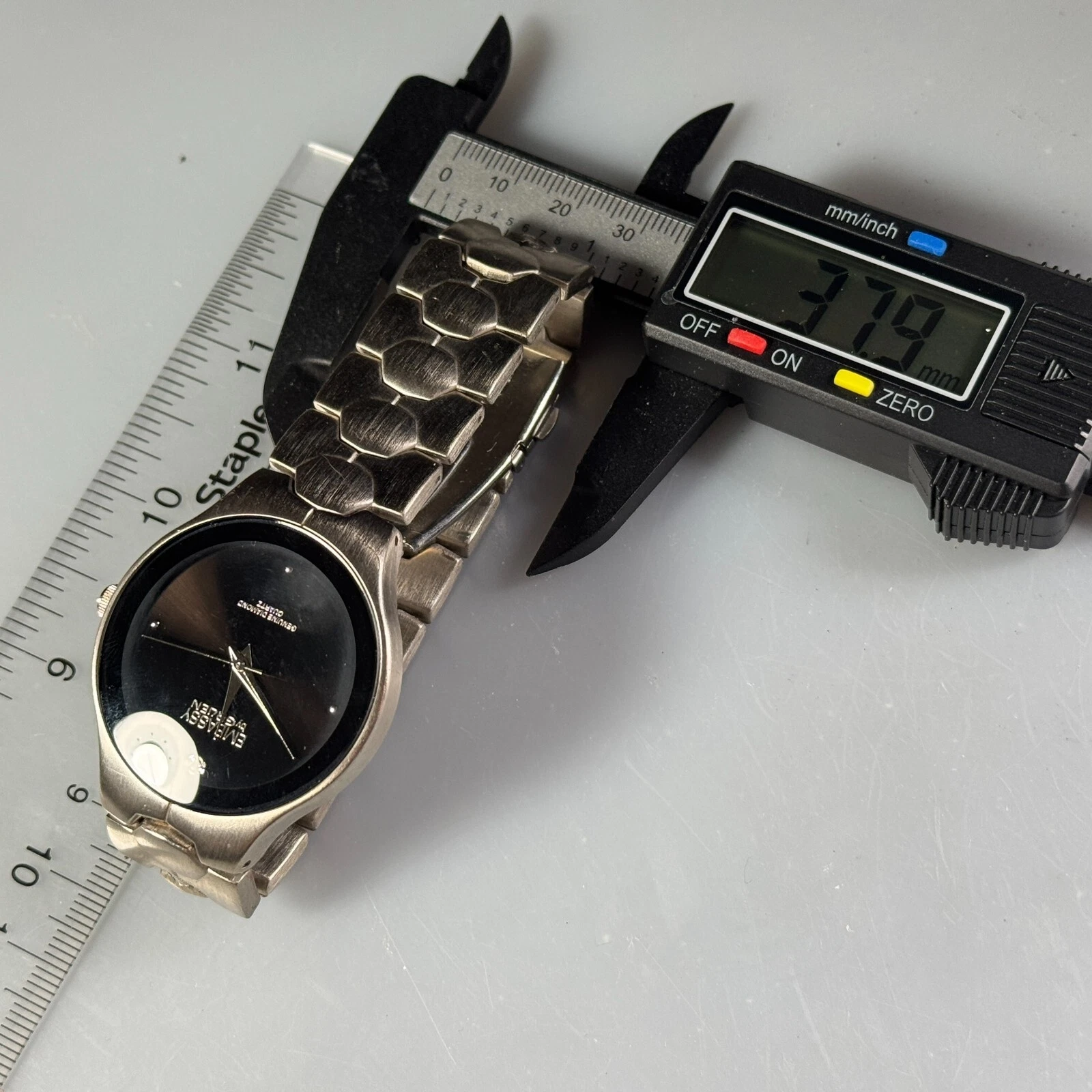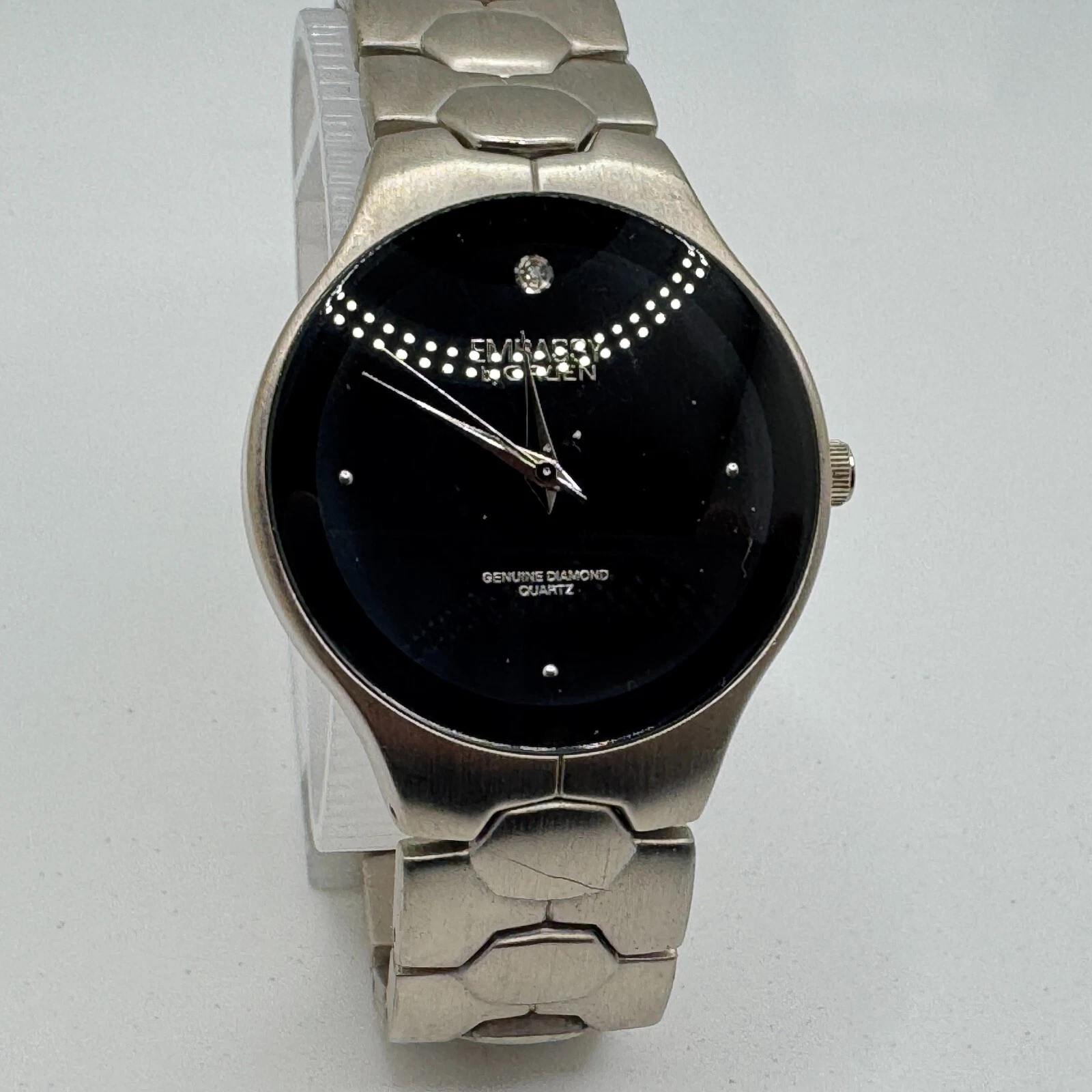 Embassy by Gruen Japan Quartz Watch Men Silver Steel Diamond New Battery 7.5"