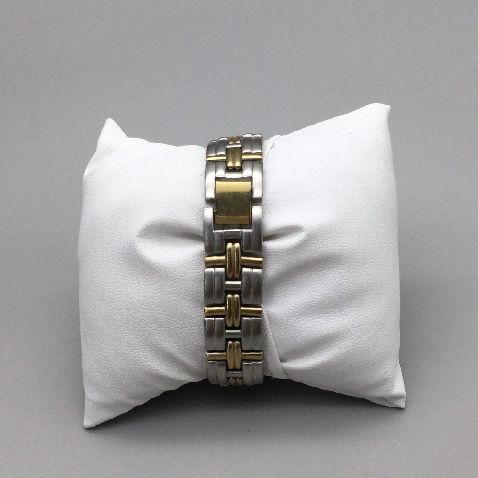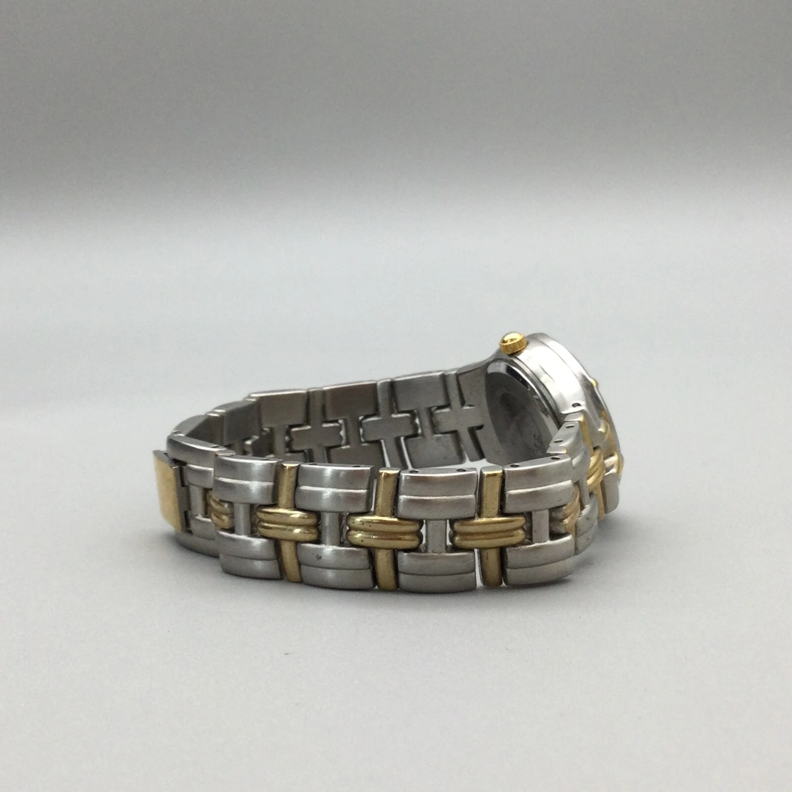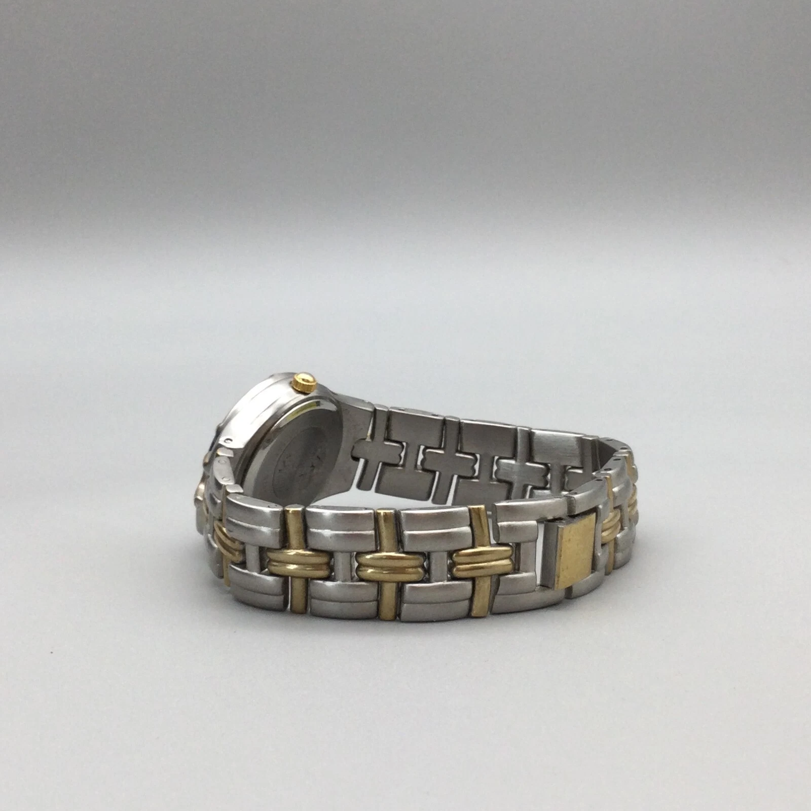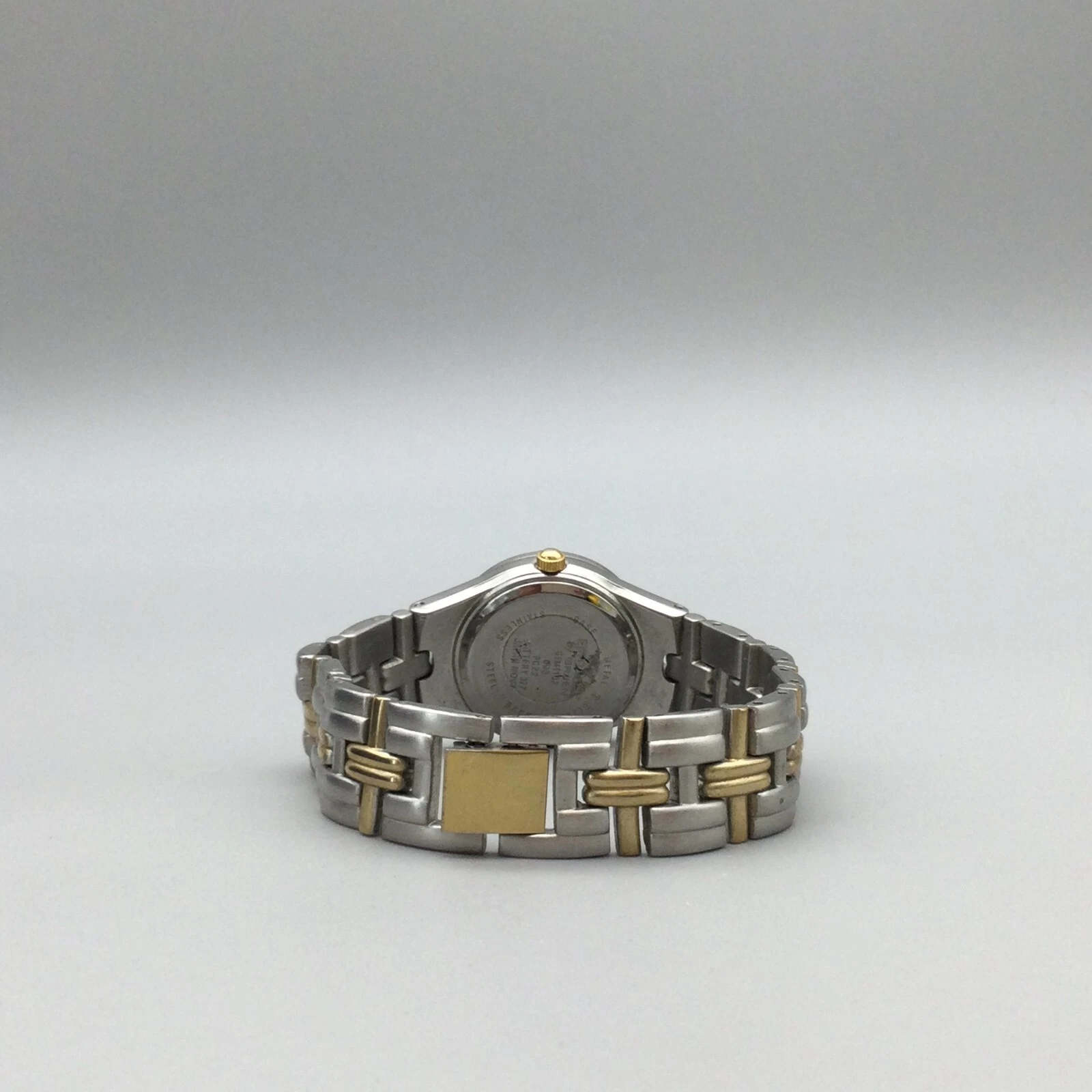 Embassy Gruen Watch Women 25mm Silver Gold Tone Black Dial New Battery 6.25"