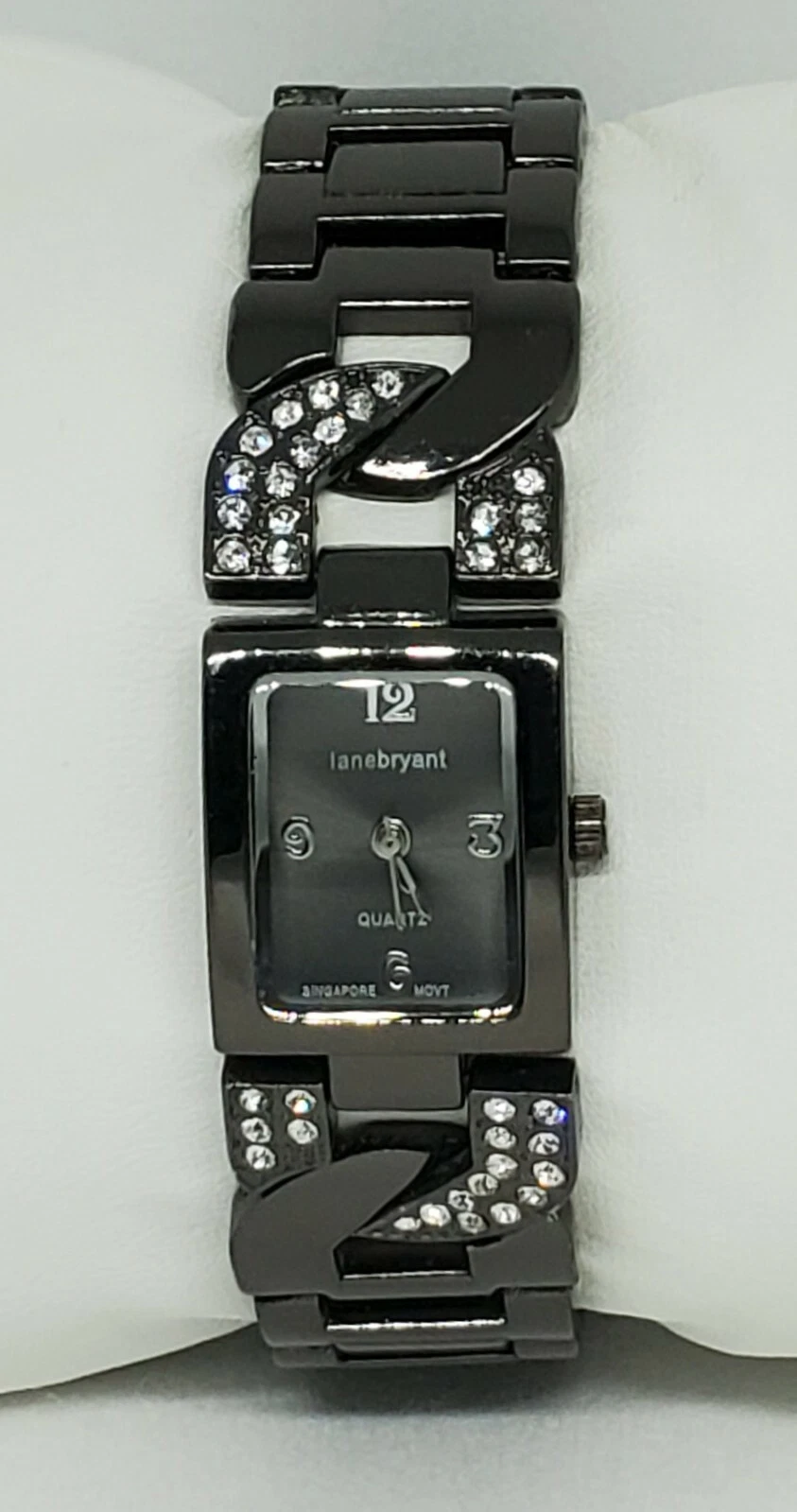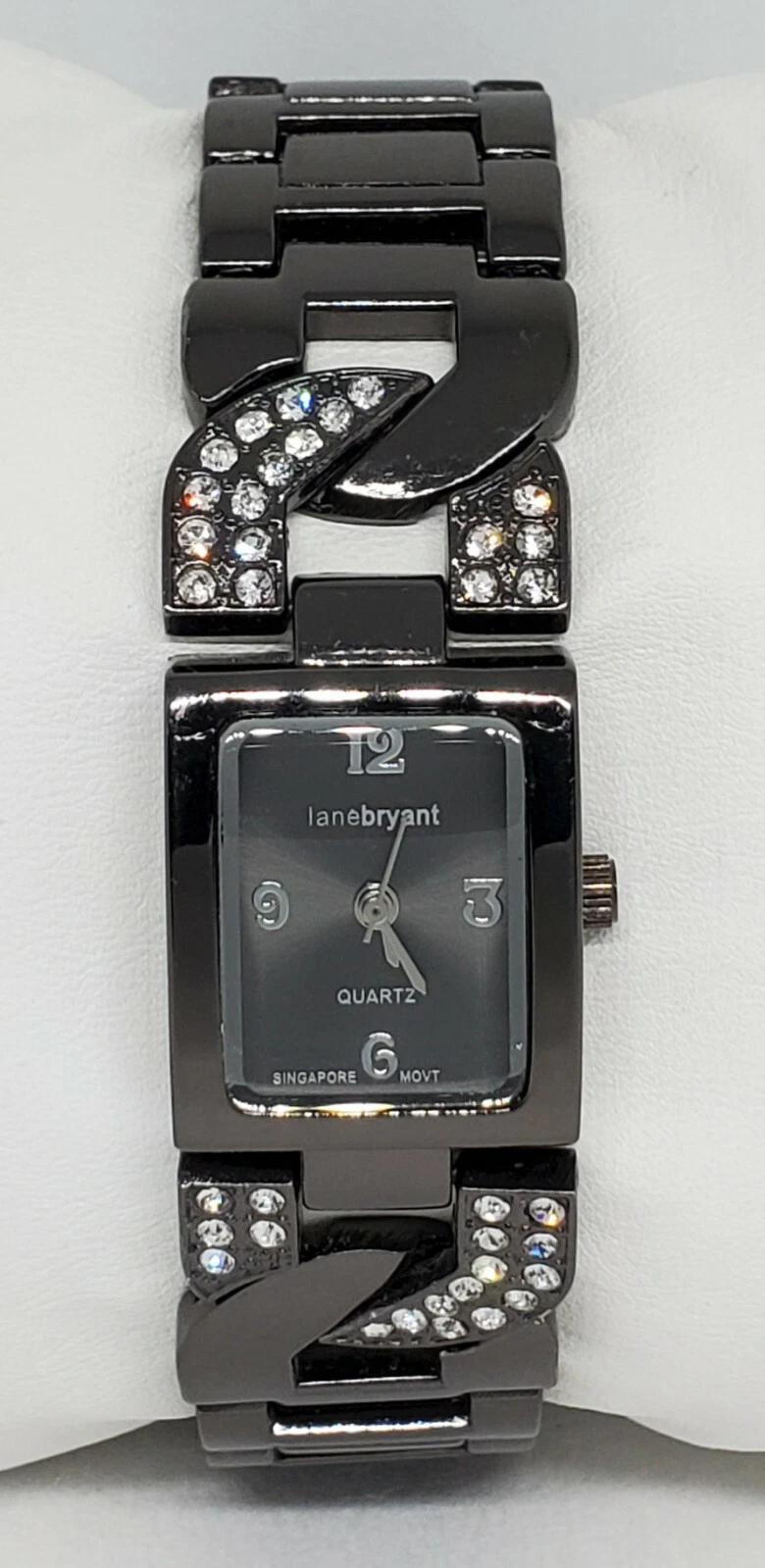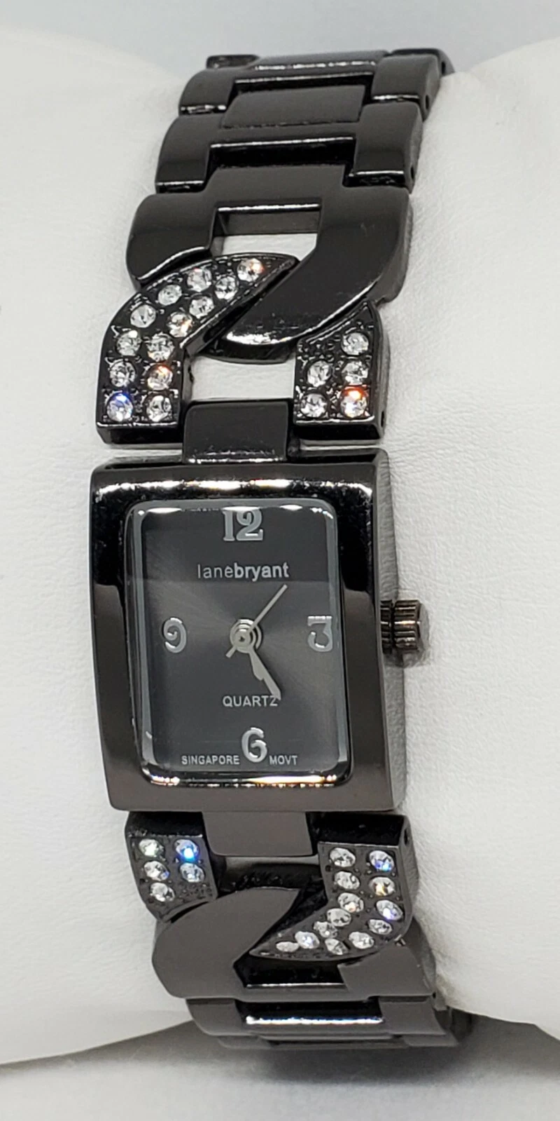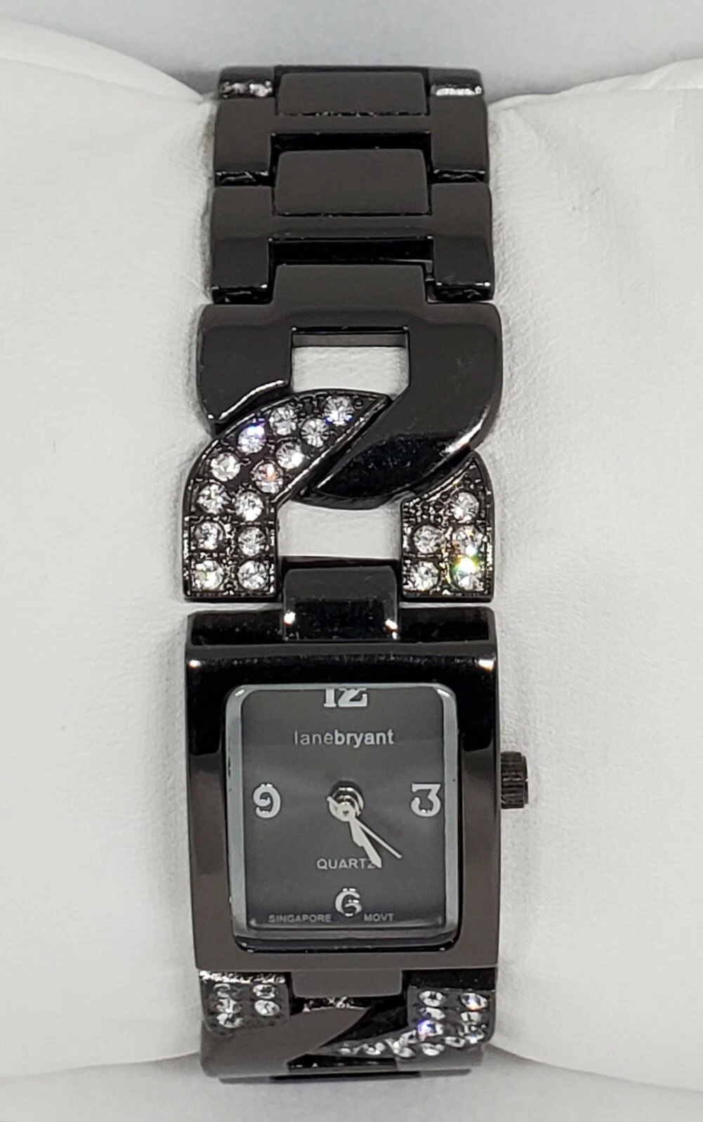 Ladies Lane Bryant Stunning Black Rhinestones Adjustable Band Analog Watch B9