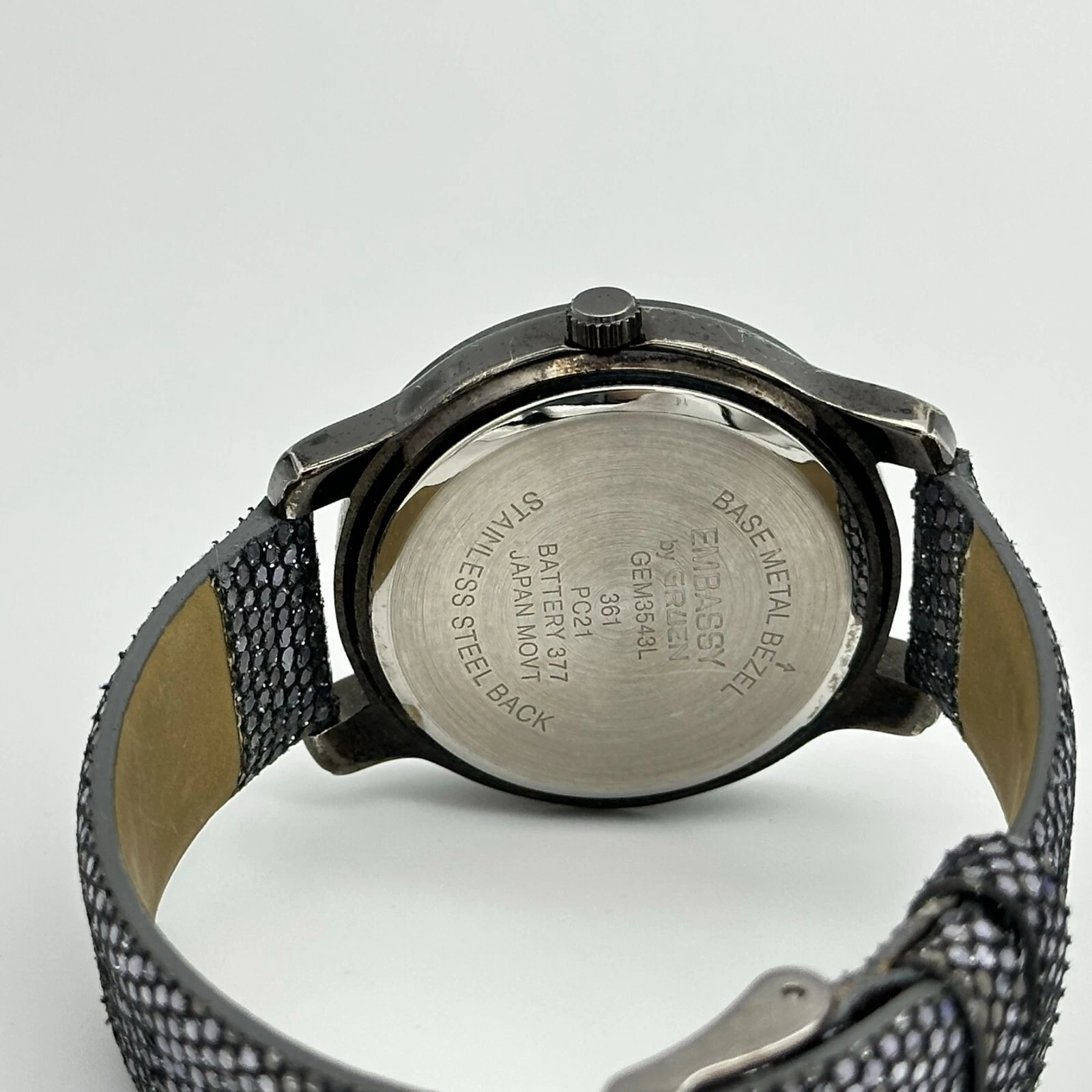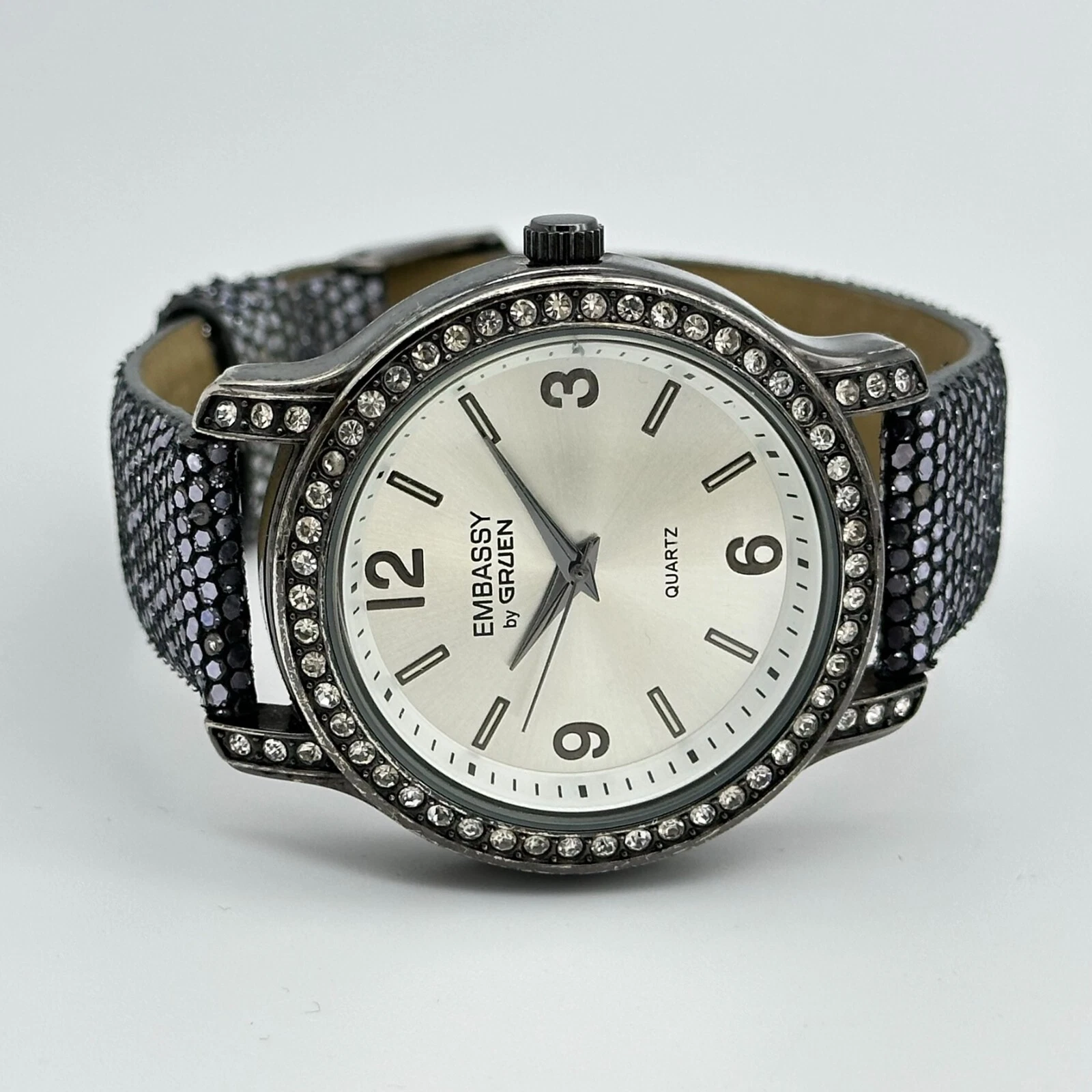 Ladies EMBASSY By Gruen GEM3543 Crystal Accent Silver & Gray Watch, Sparkly Band