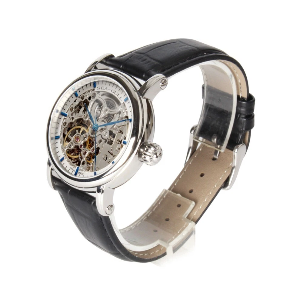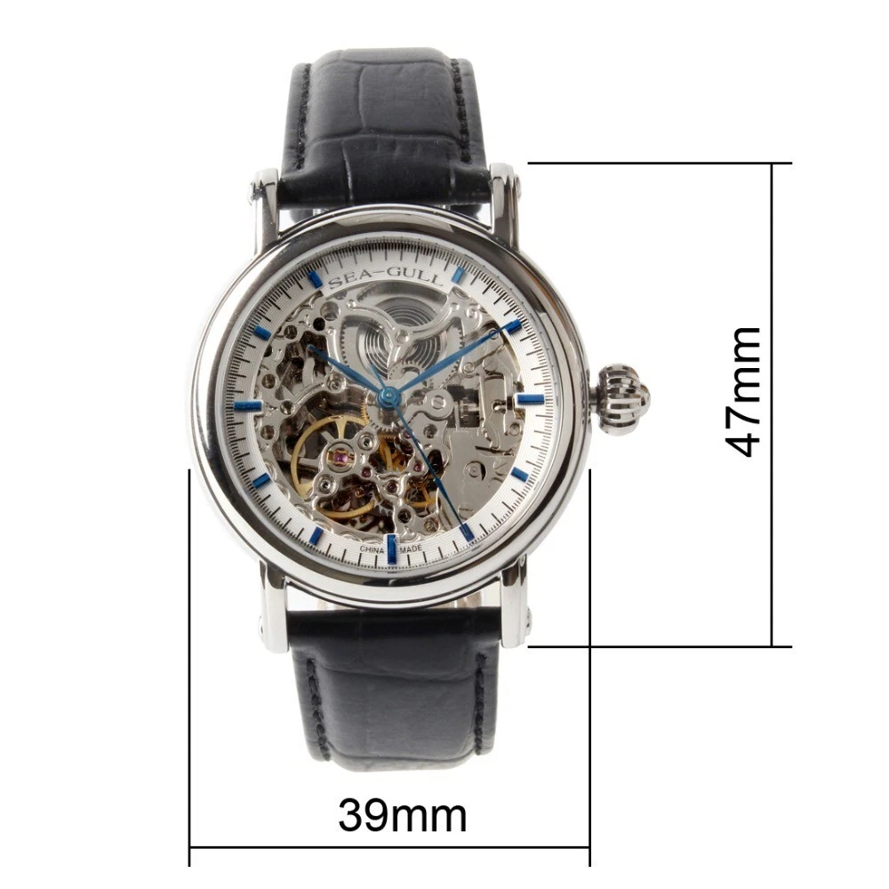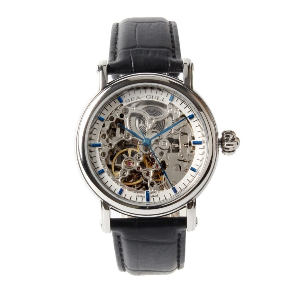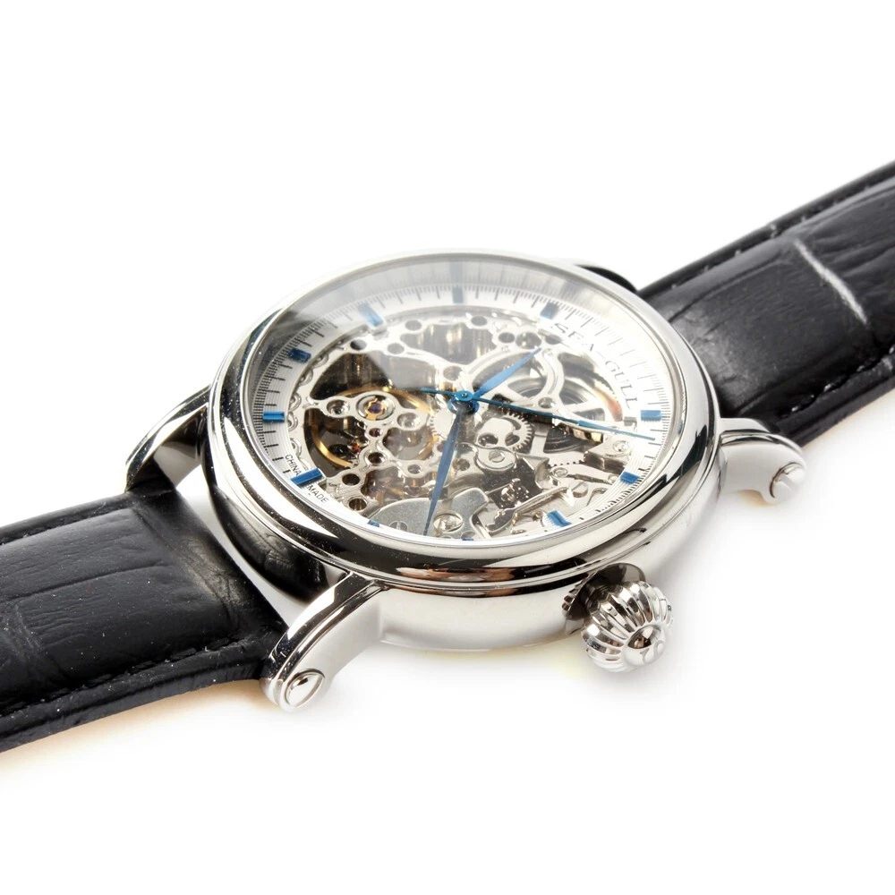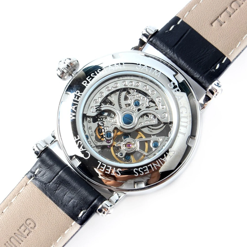 Double Skeleton Seagull M182SK Black Hand Automatic Men's Watch