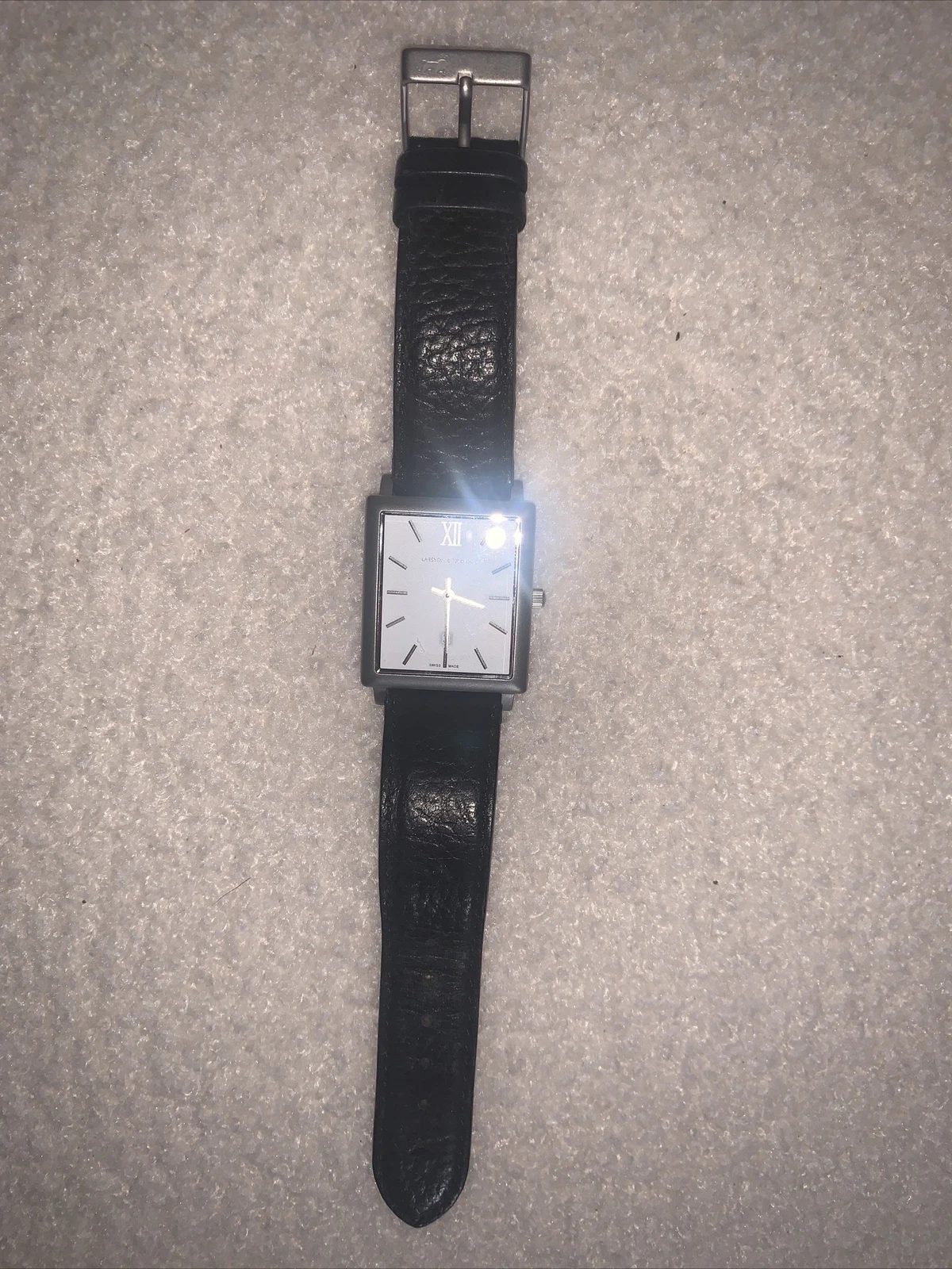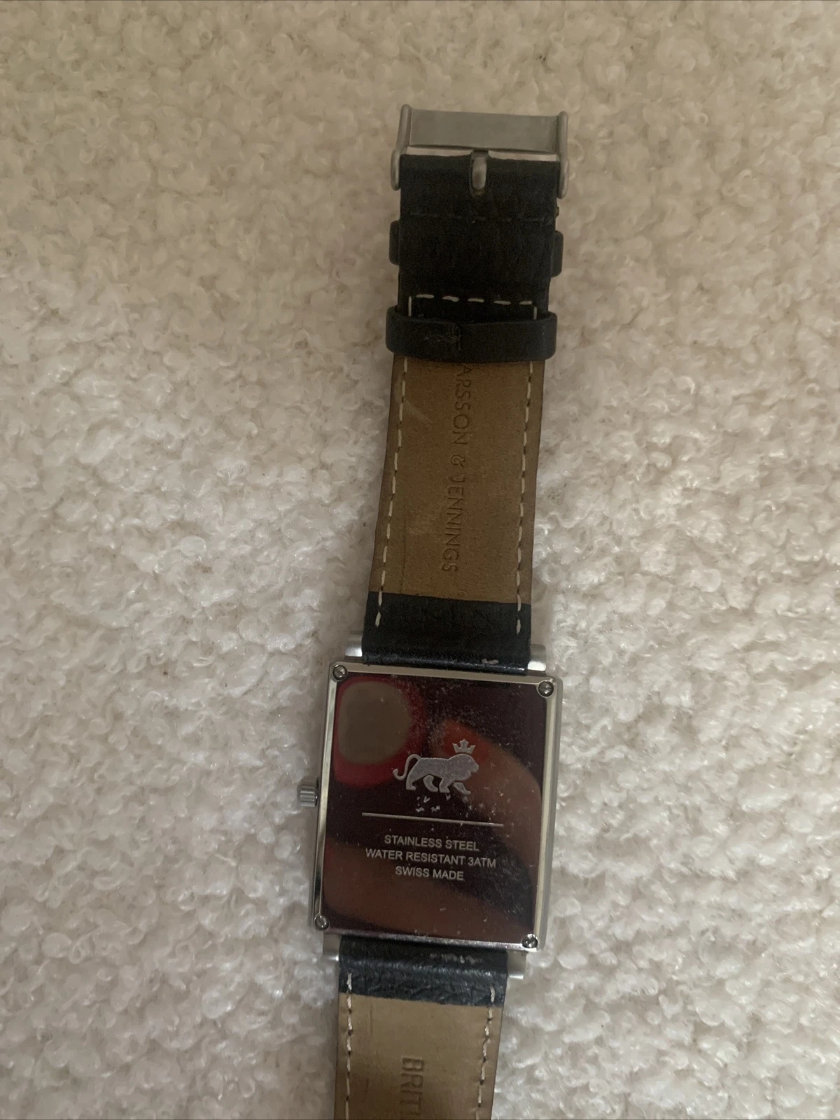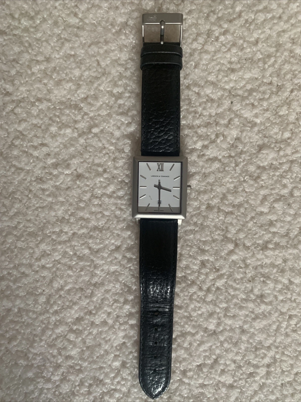 LARSSON & JENNINGS Norse black leather watch rectangle square face