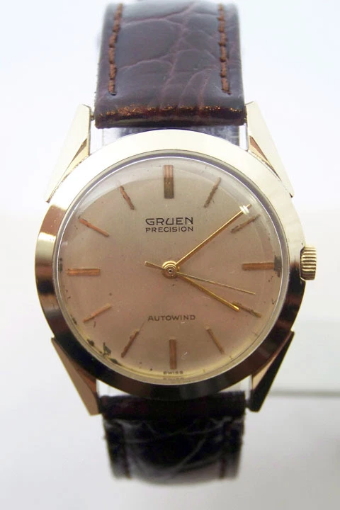 Vintage 14k GRUEN PRECISION 23J Mens Automatic Watch 1950s* EXLNT* SERVICED