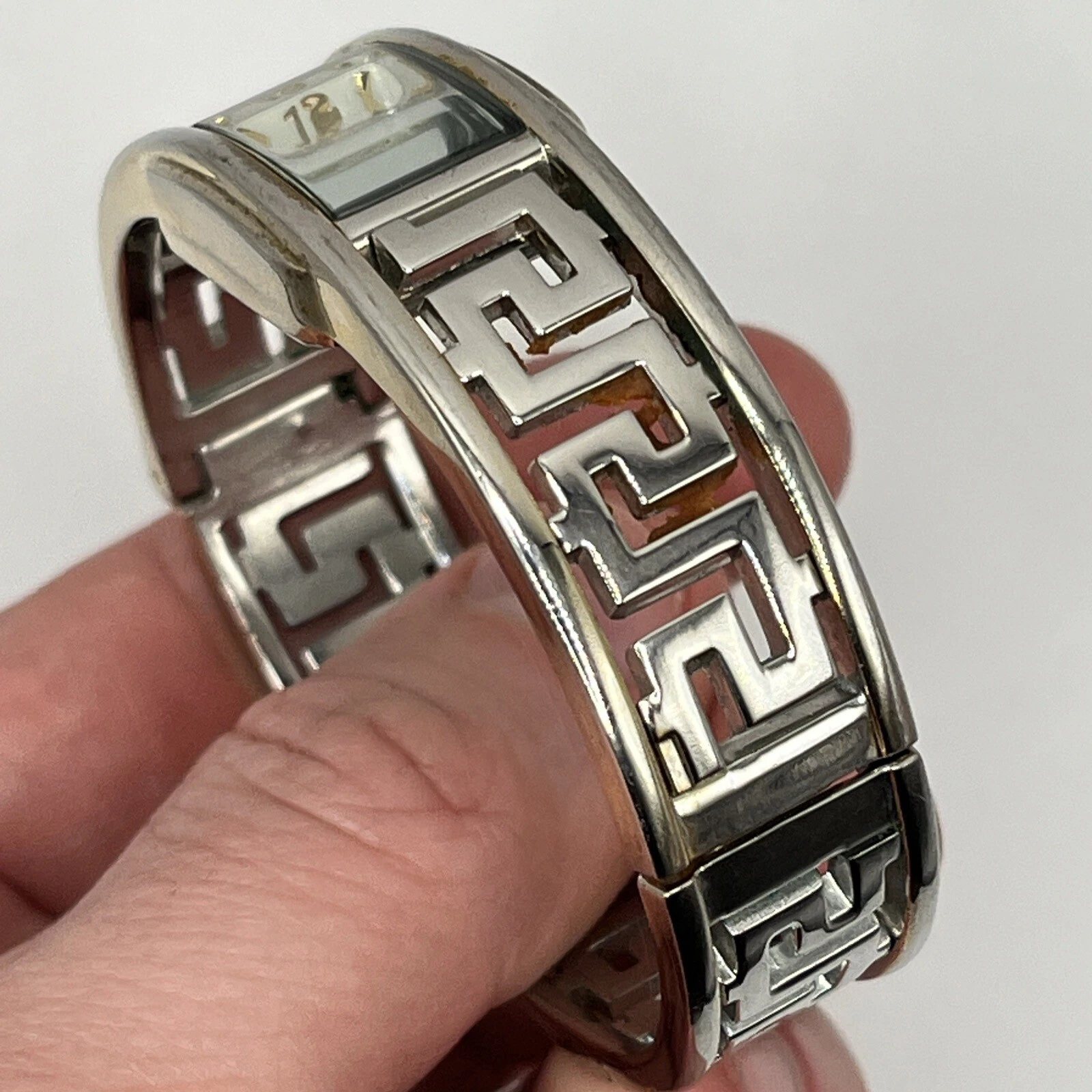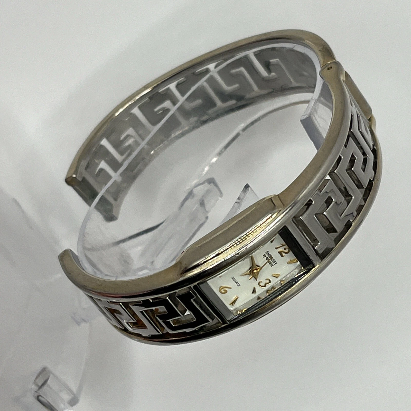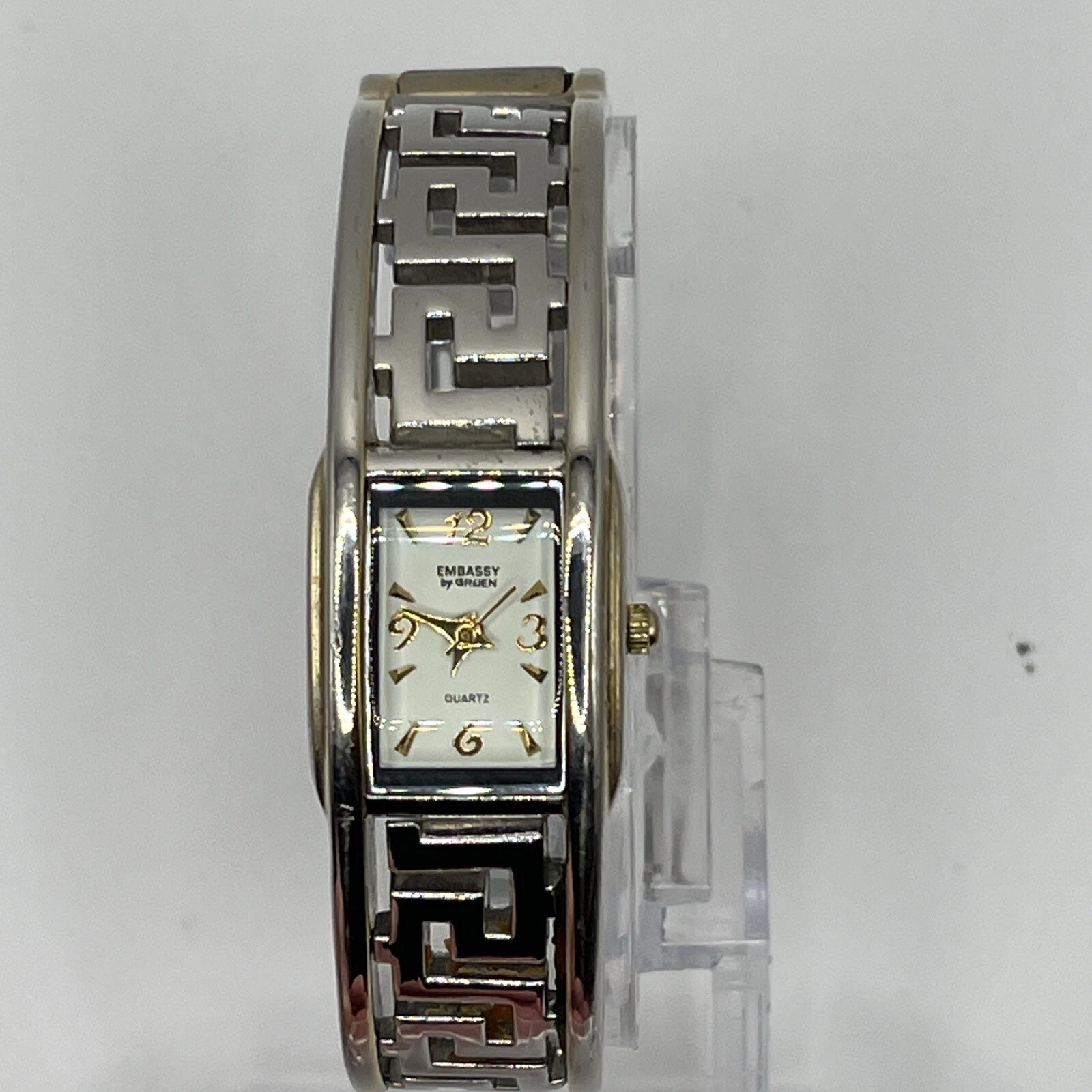 Embassy By Gruen Women's Watch Cuff Band Silver Tone Dial NEW BATTERY RUNS!