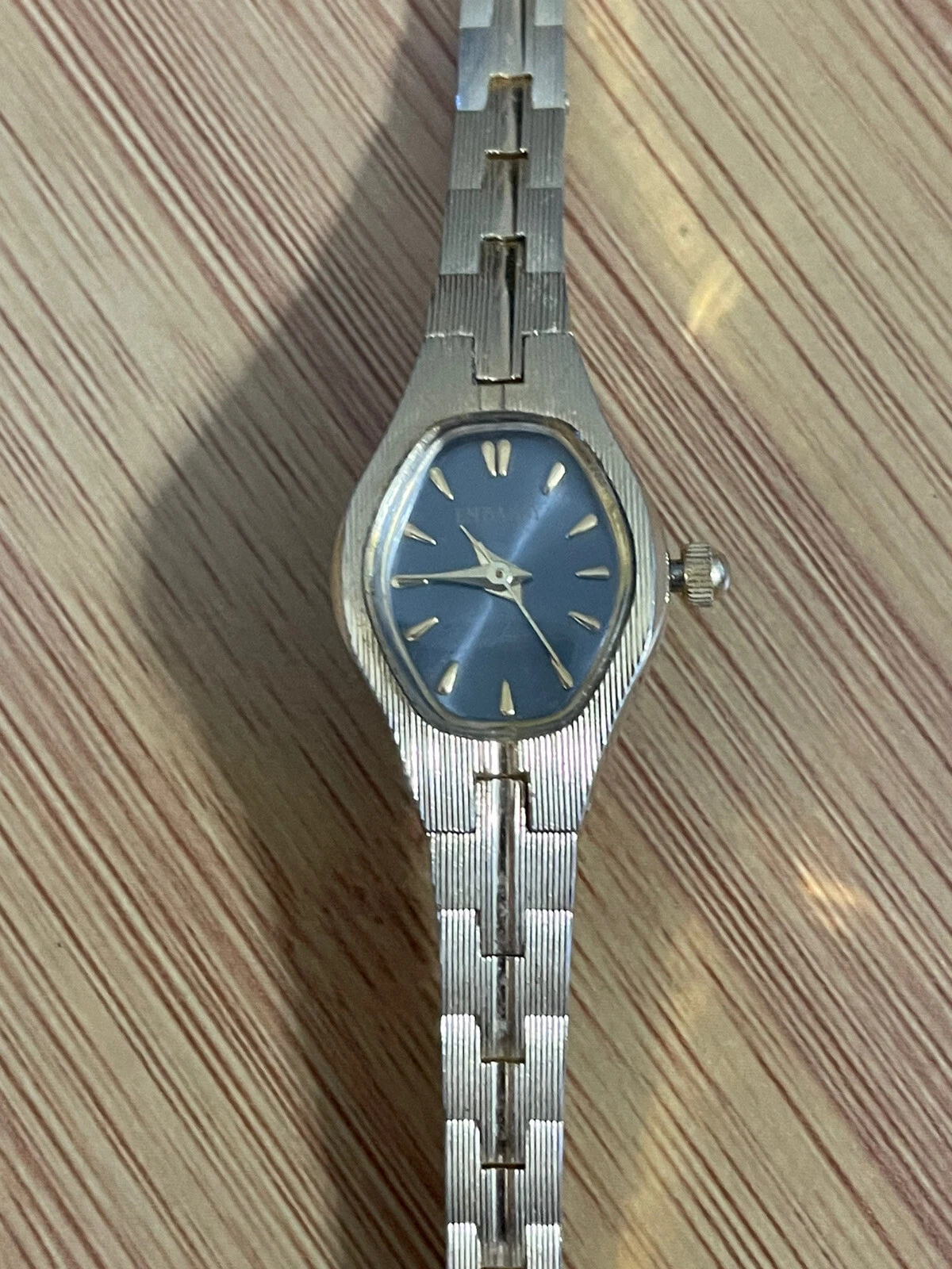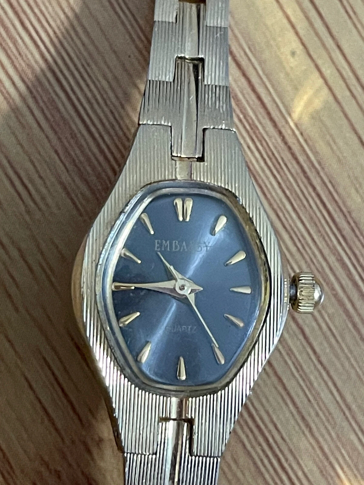 Vintage EMBASSY by GRUEN Ladies Gold Tone w/Black Dial & Swiss Parts Watch-GREAT