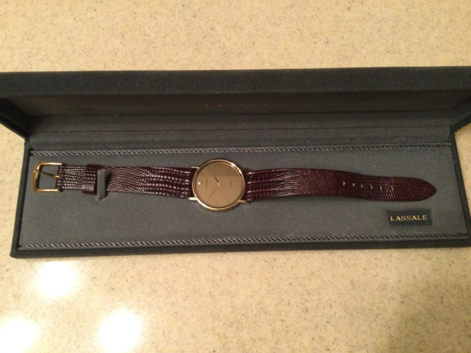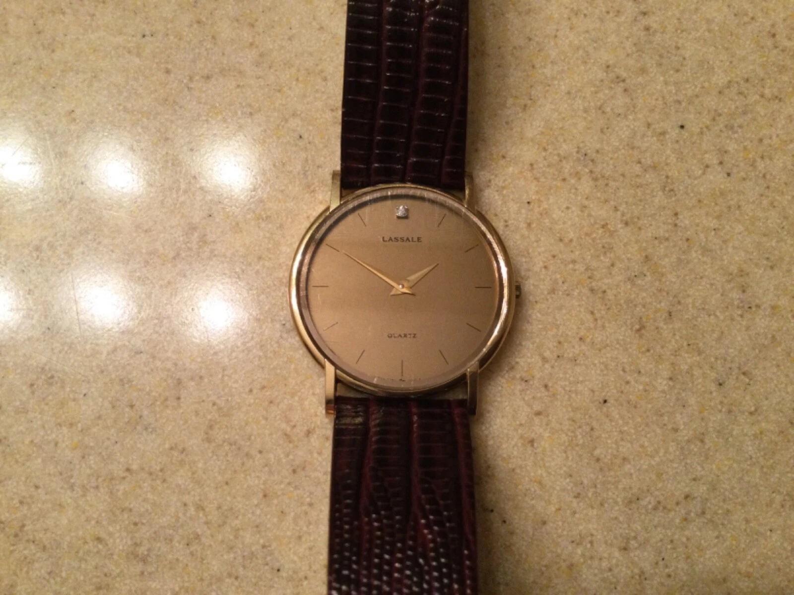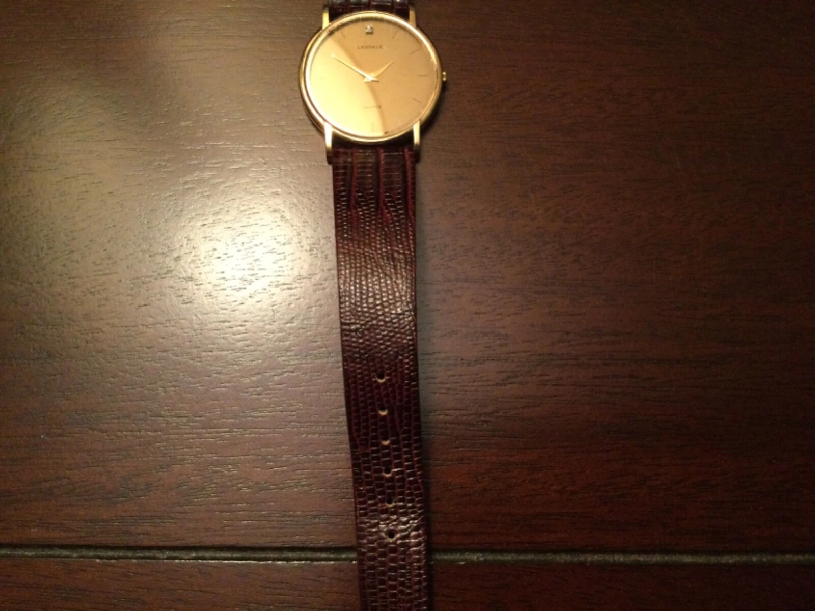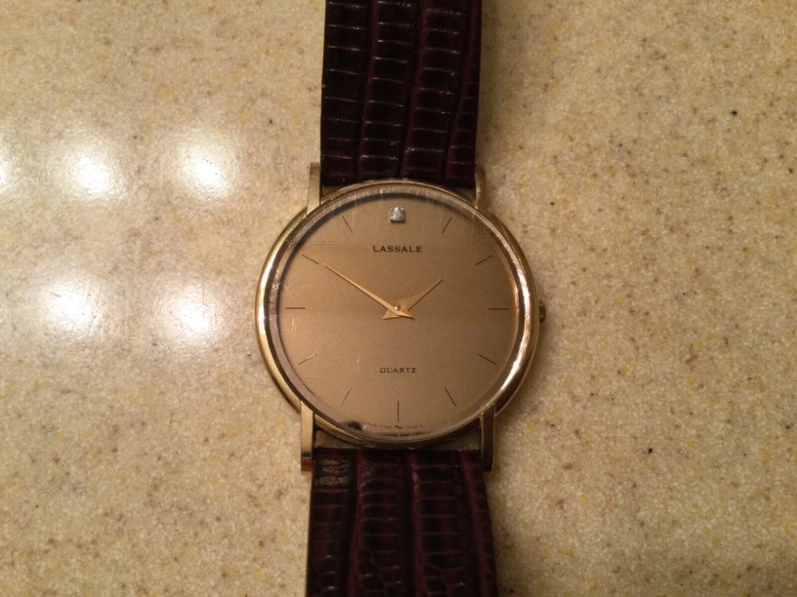 VINTAGE LASALLE SEIKO ULTRA THIN MEN’S DRESS WATCH DIAMOND AT 12 O’CLOCK INDEX