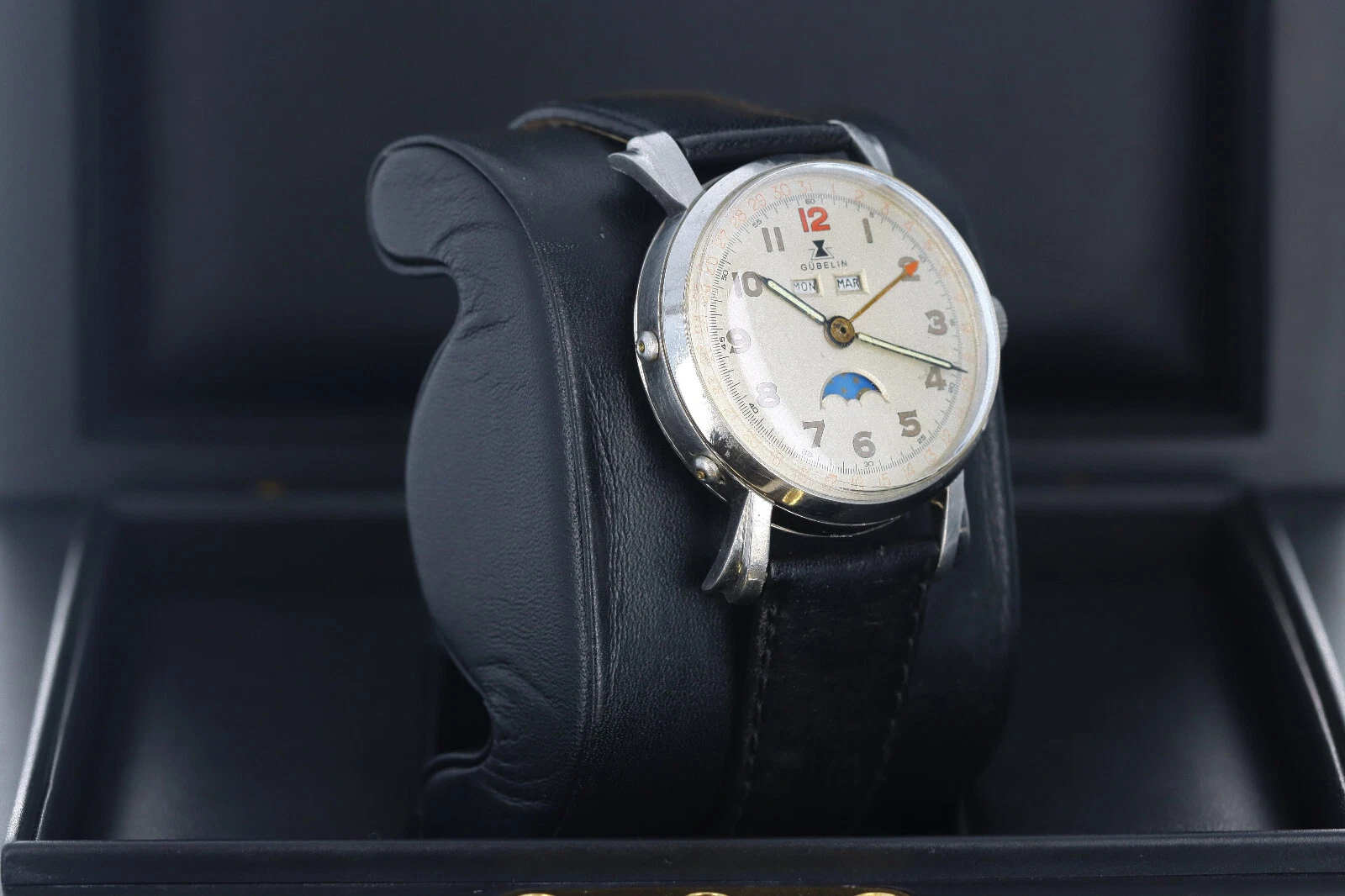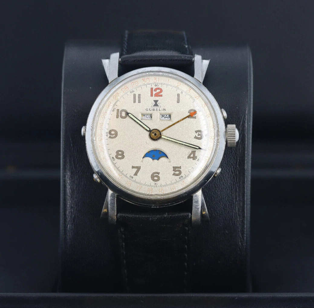 Gubelin Vintage Day-Date Triple Calendar Moonphase Full Calendar Circa 1950