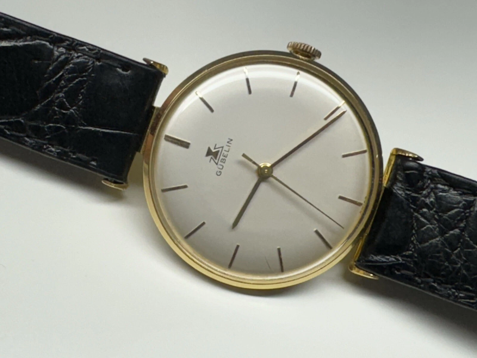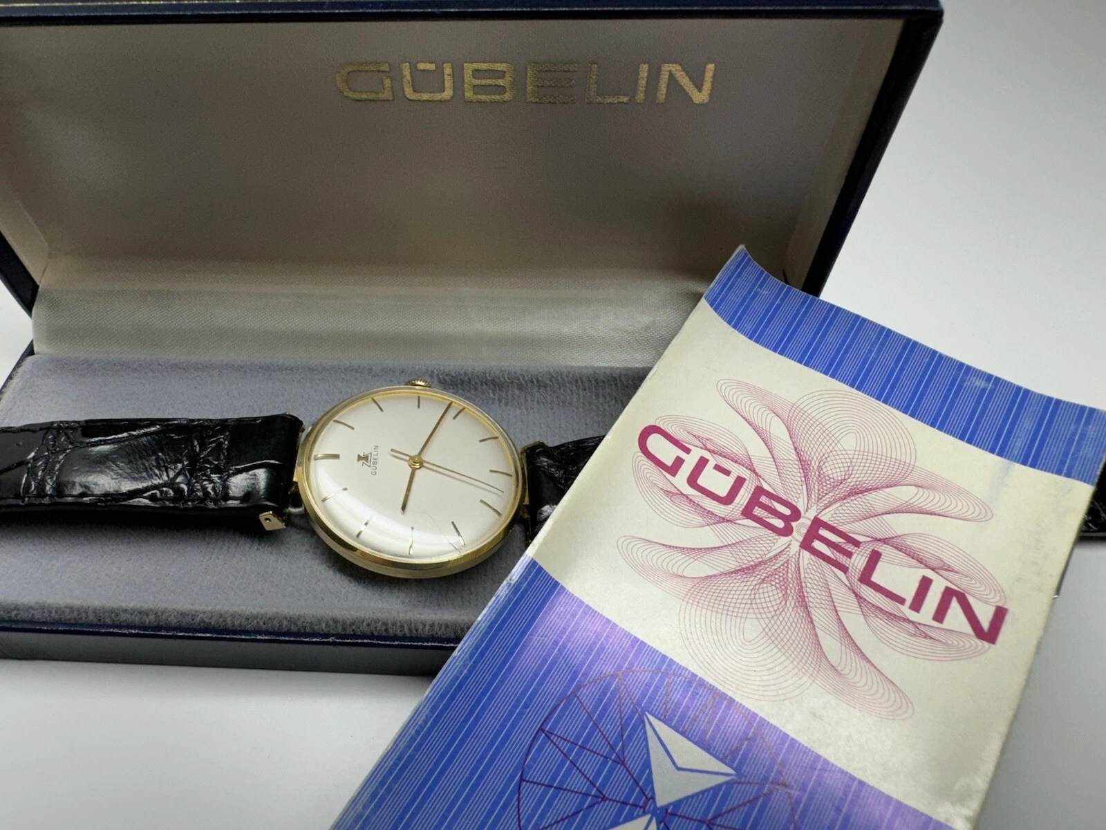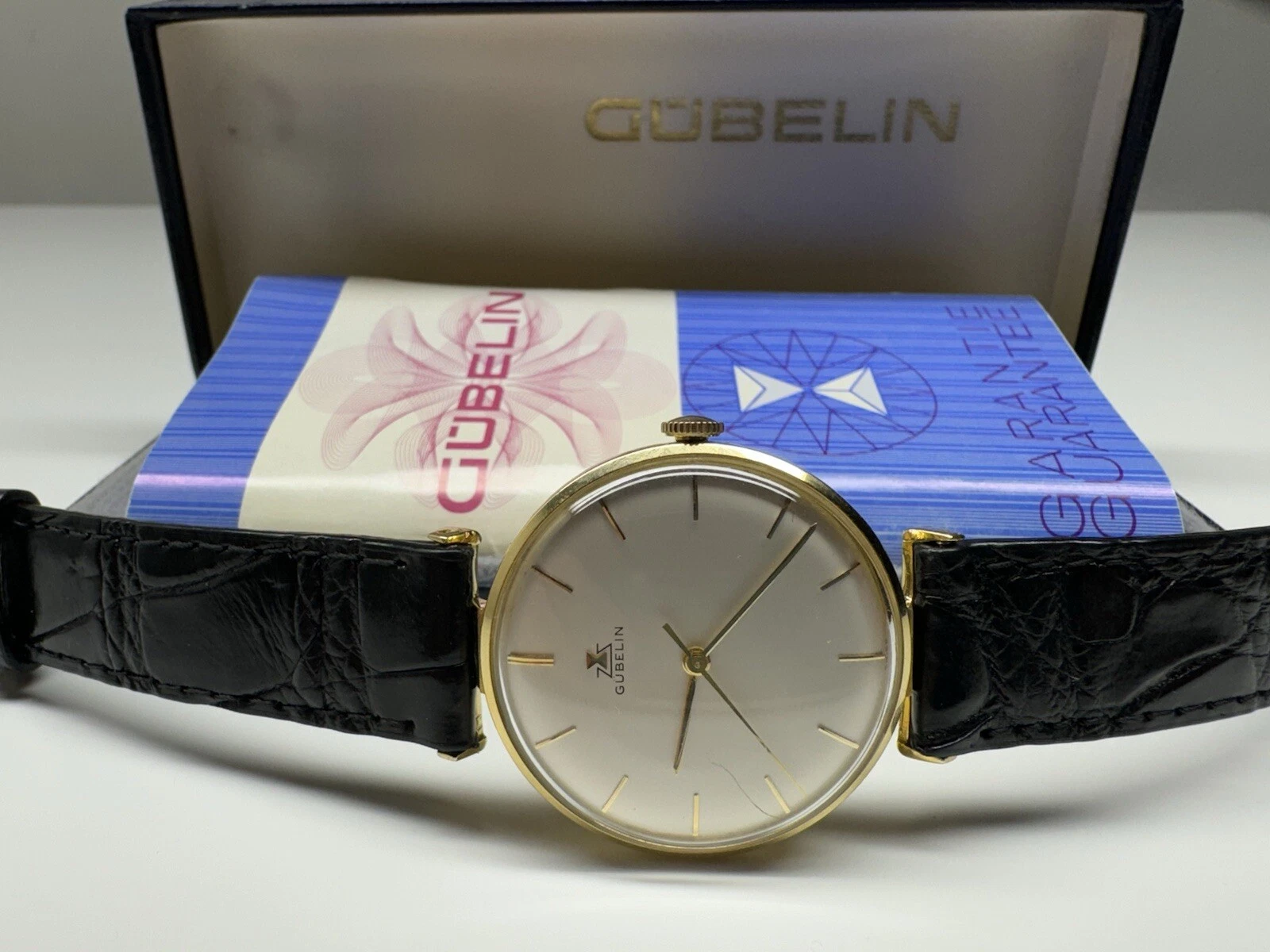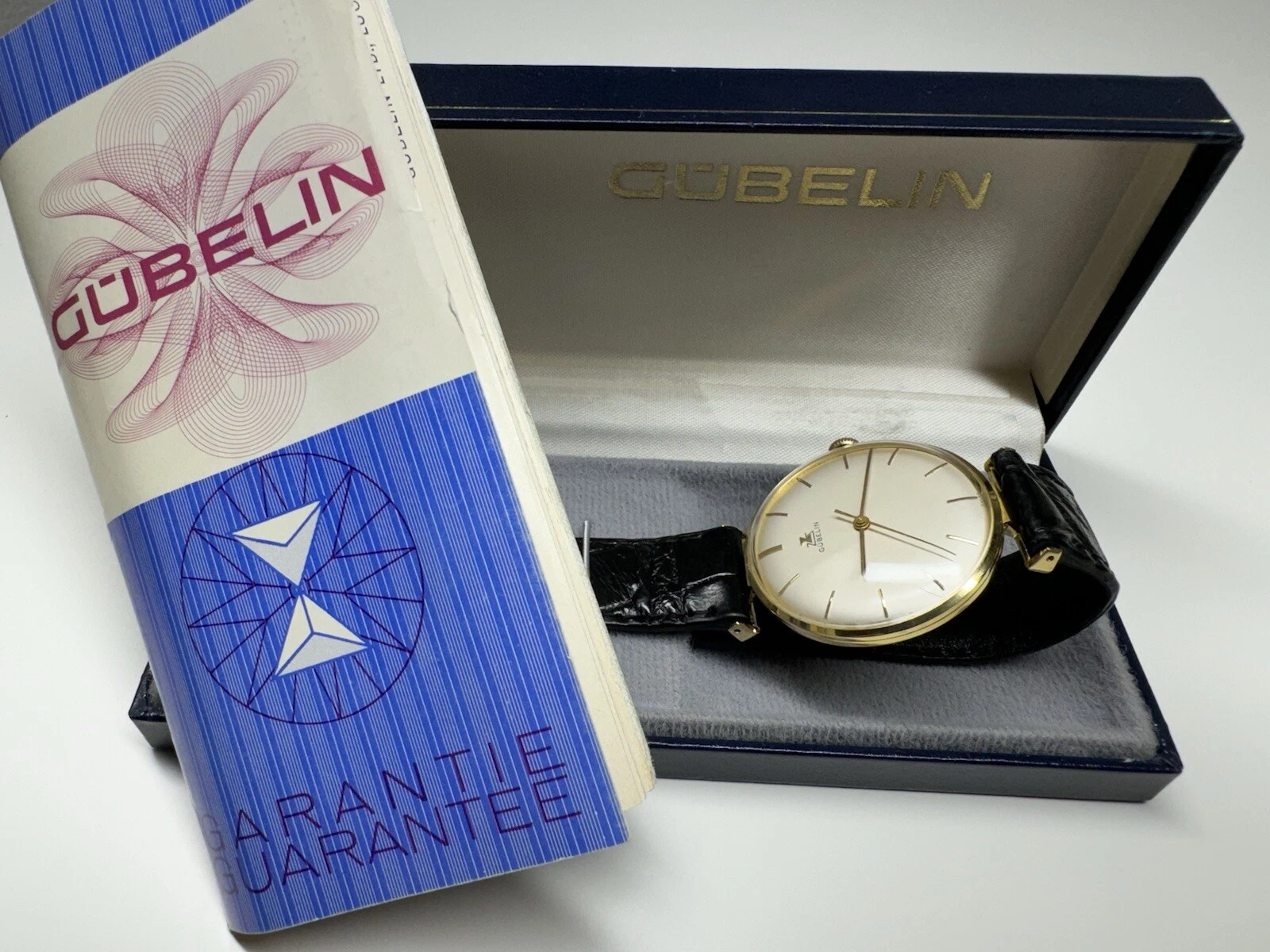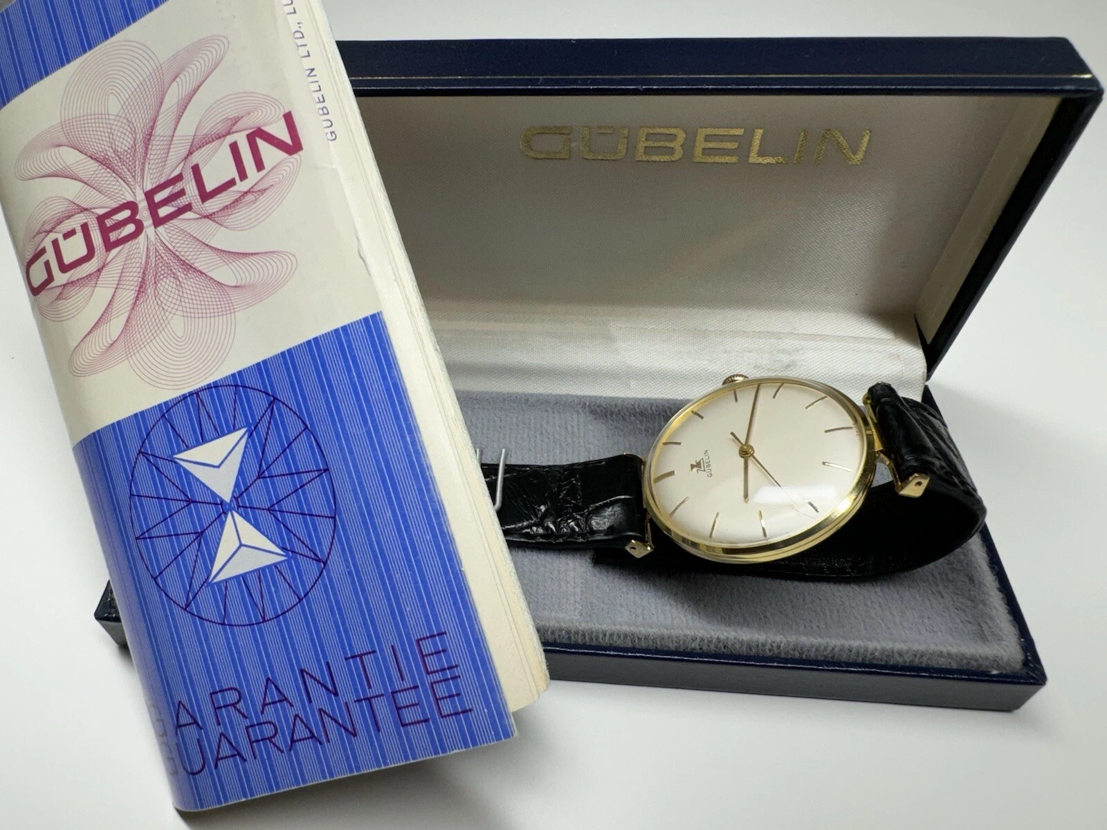gübelin 18kt solid gold swiss made mechanical wristwatch with box & paper