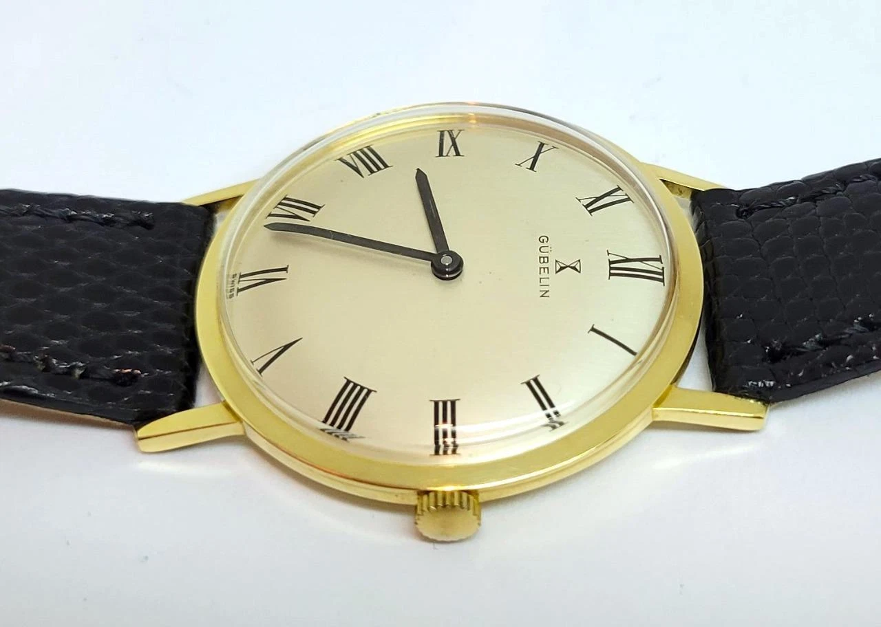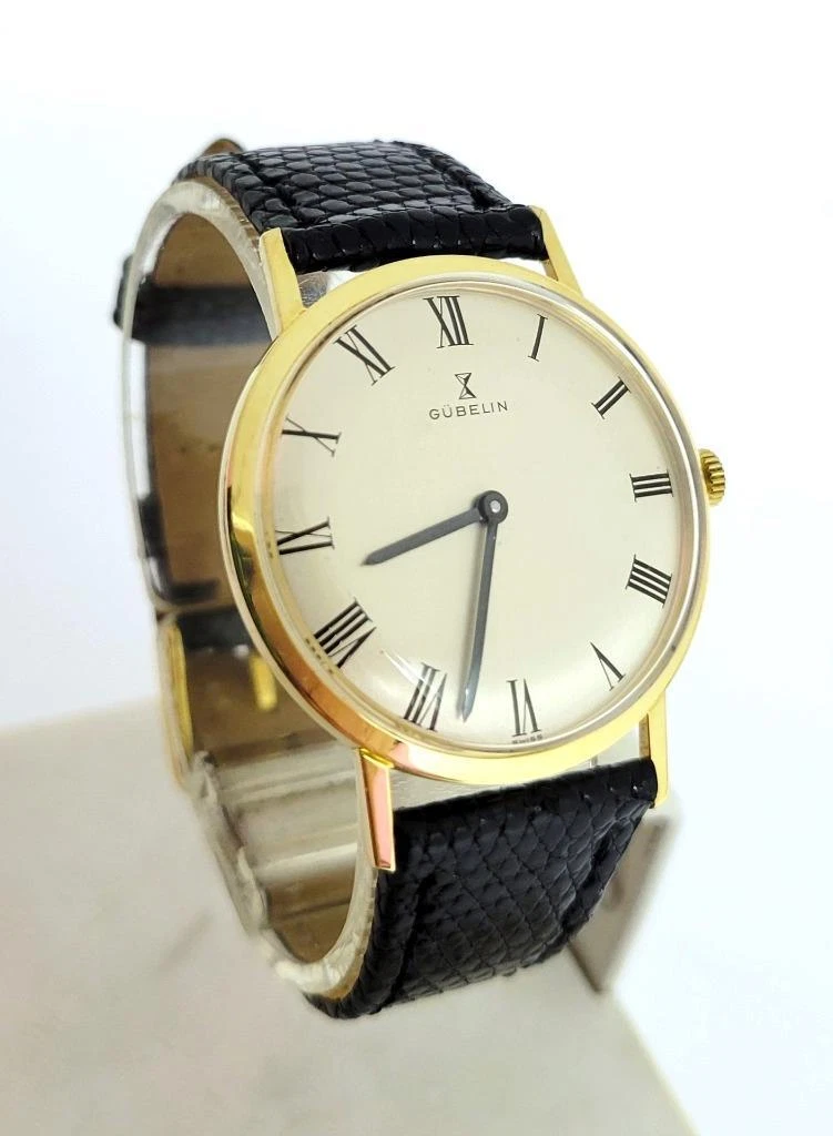 Vintage Solid 18k GUBELIN Mens Winding Watch 1960s Cal G7017 EXLNT RARE High End