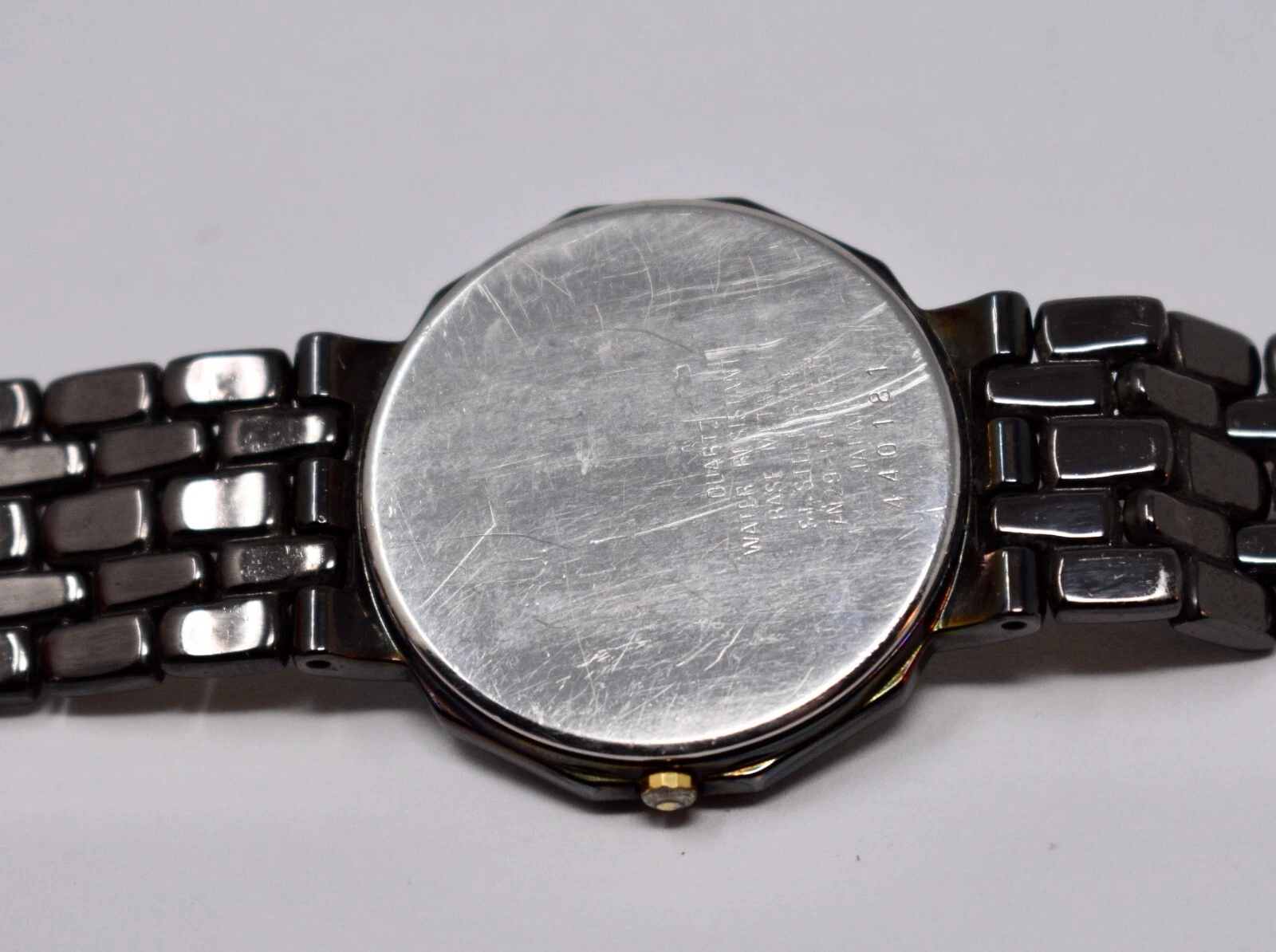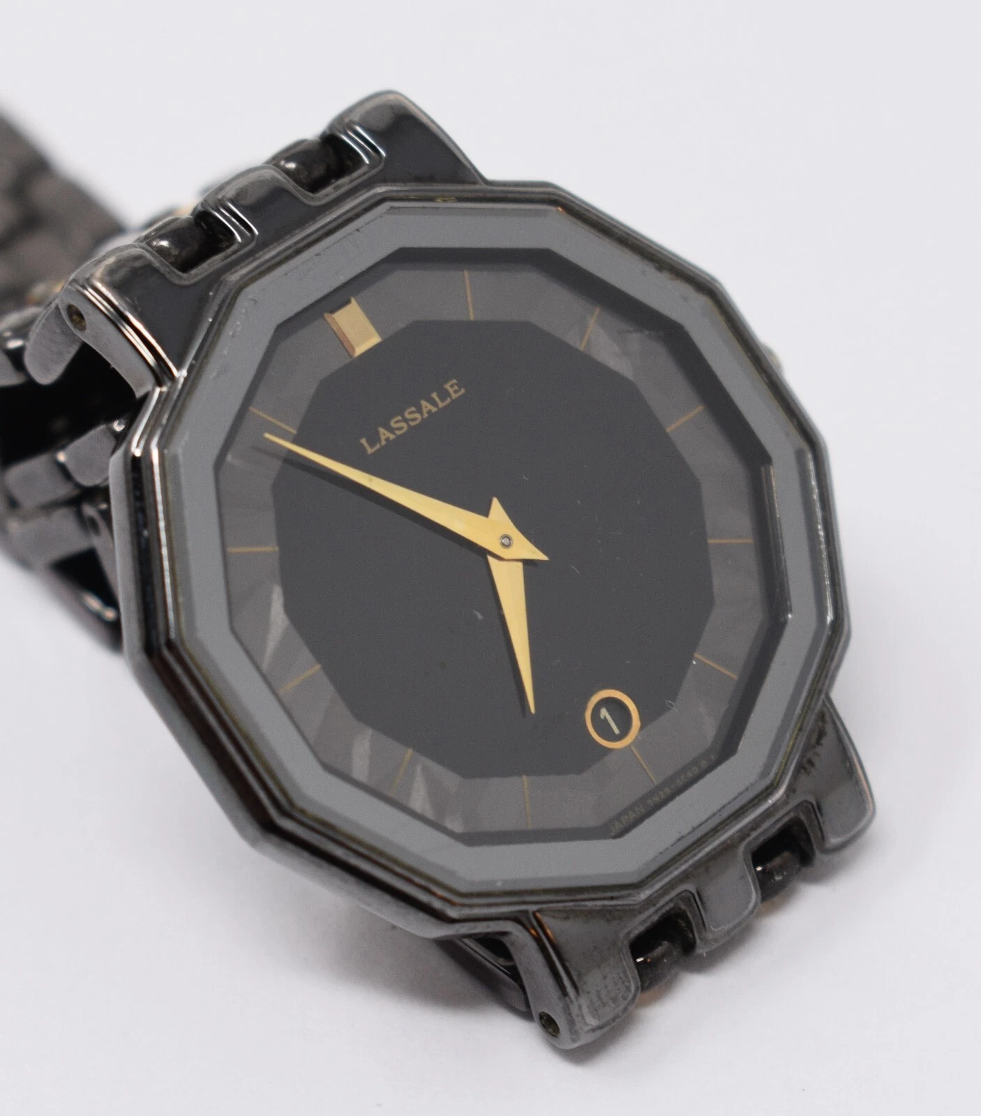 Vintage 1980s Seiko Lasalle Mens Quartz Wristwatch Black & Gold 7N29-5C10 Date