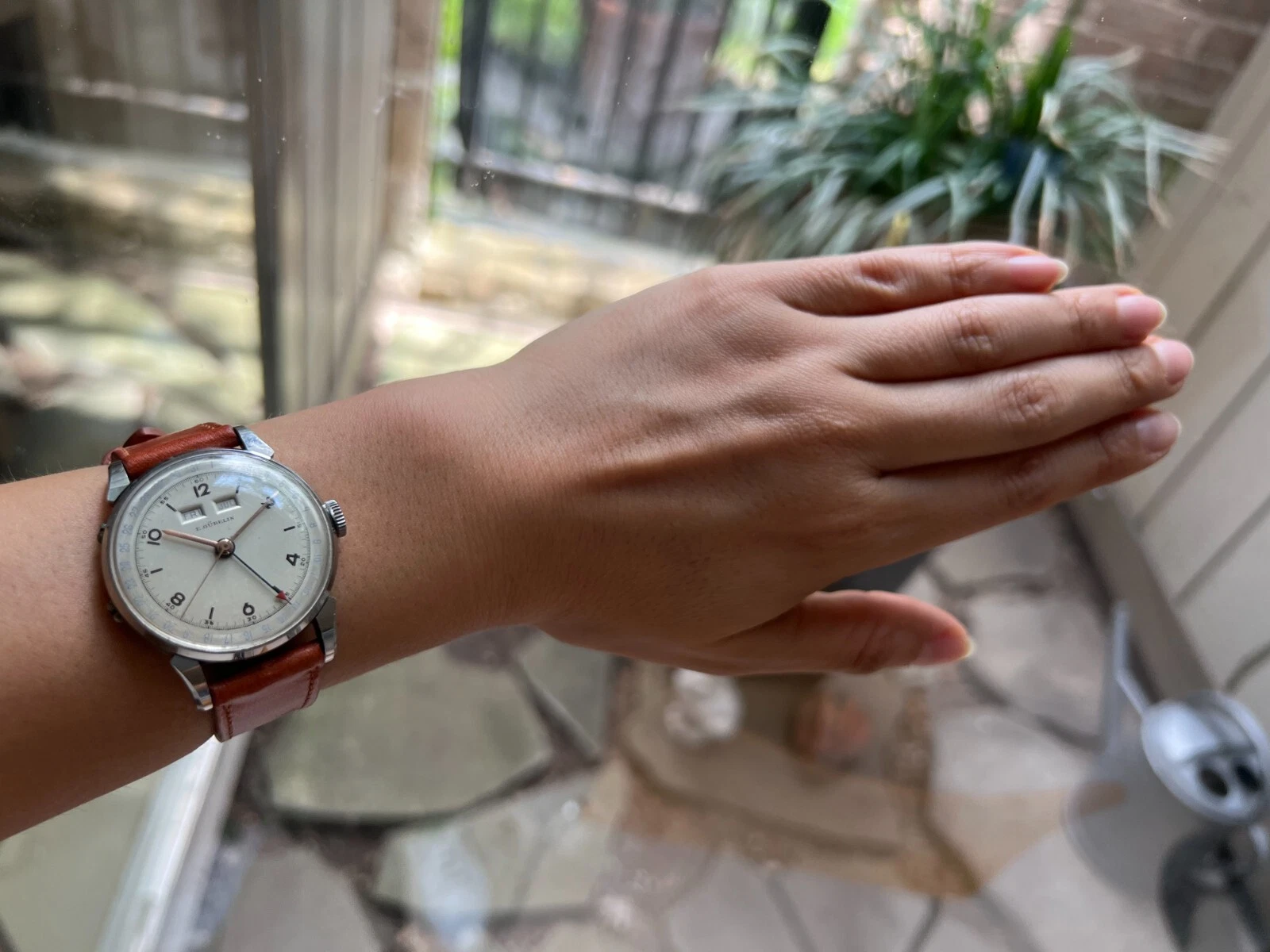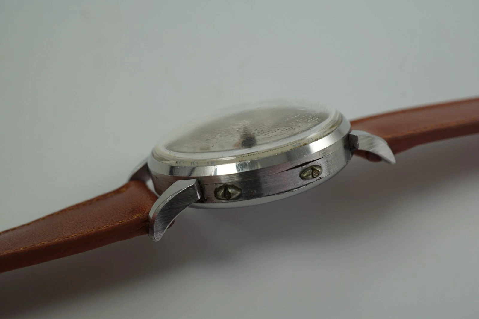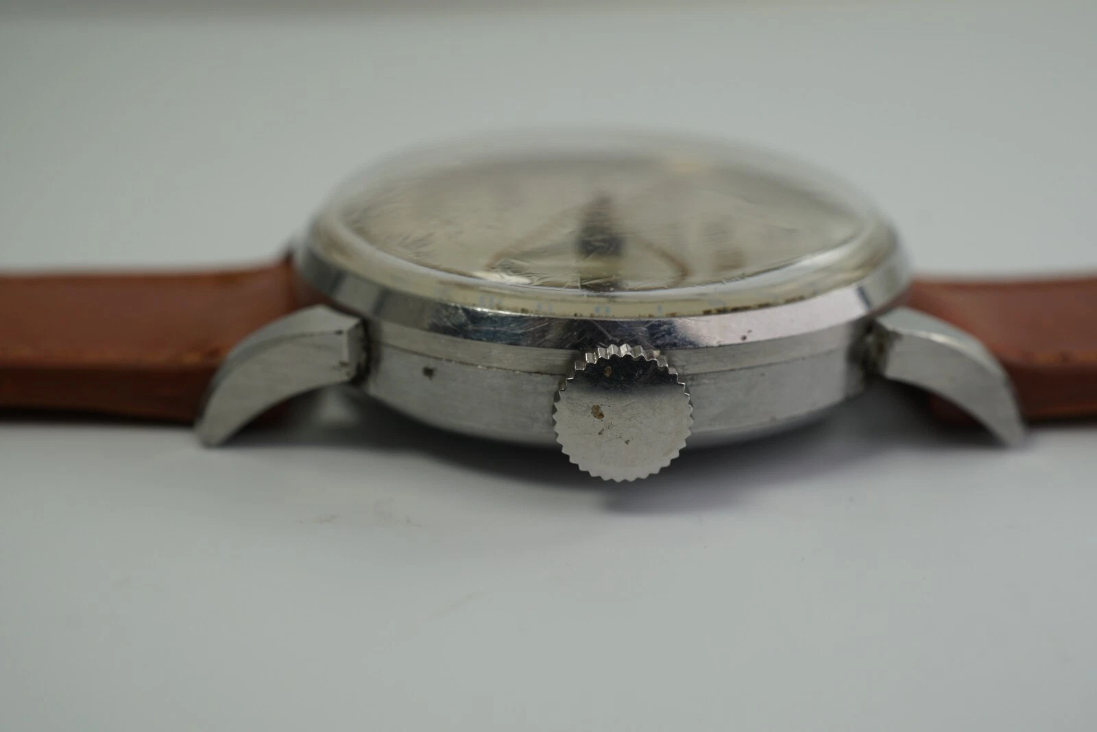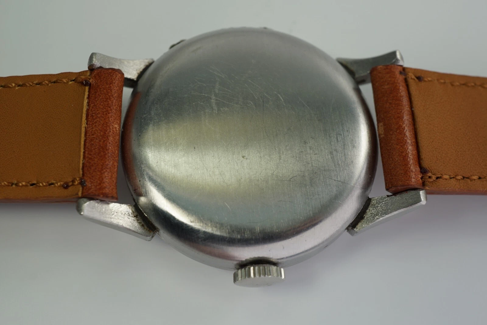 E.GUBELIN TRIPLE DATE CALENDAR WATCH ORIGINAL DIAL GORGEOUS STEEL CASE 1940's