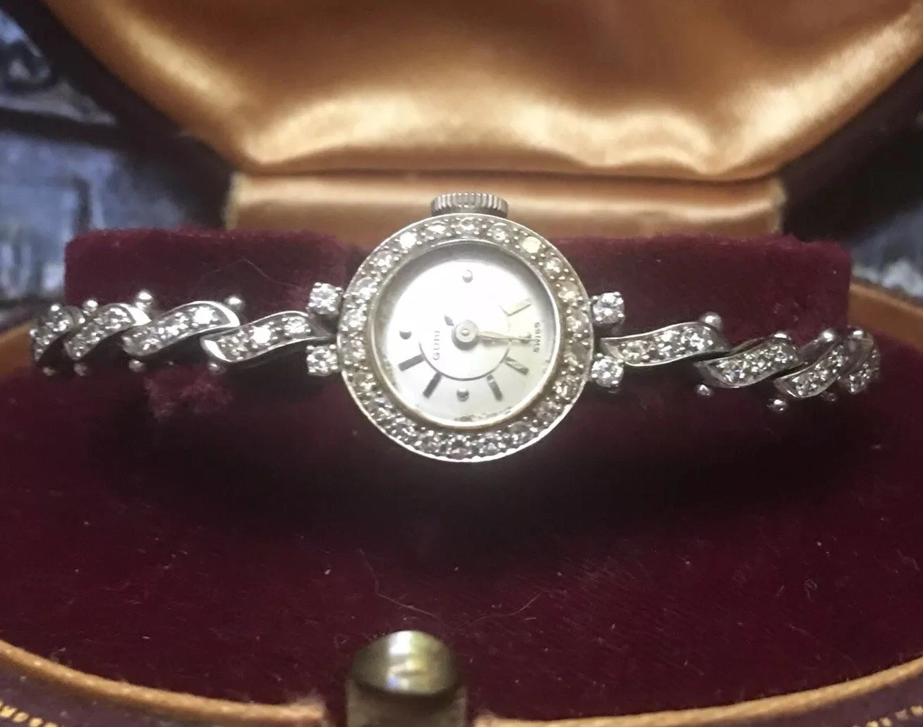 Vintage Collectible Ladies Gubelin 1940’s 18k Solid Gold Diamond Watch