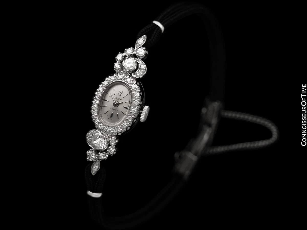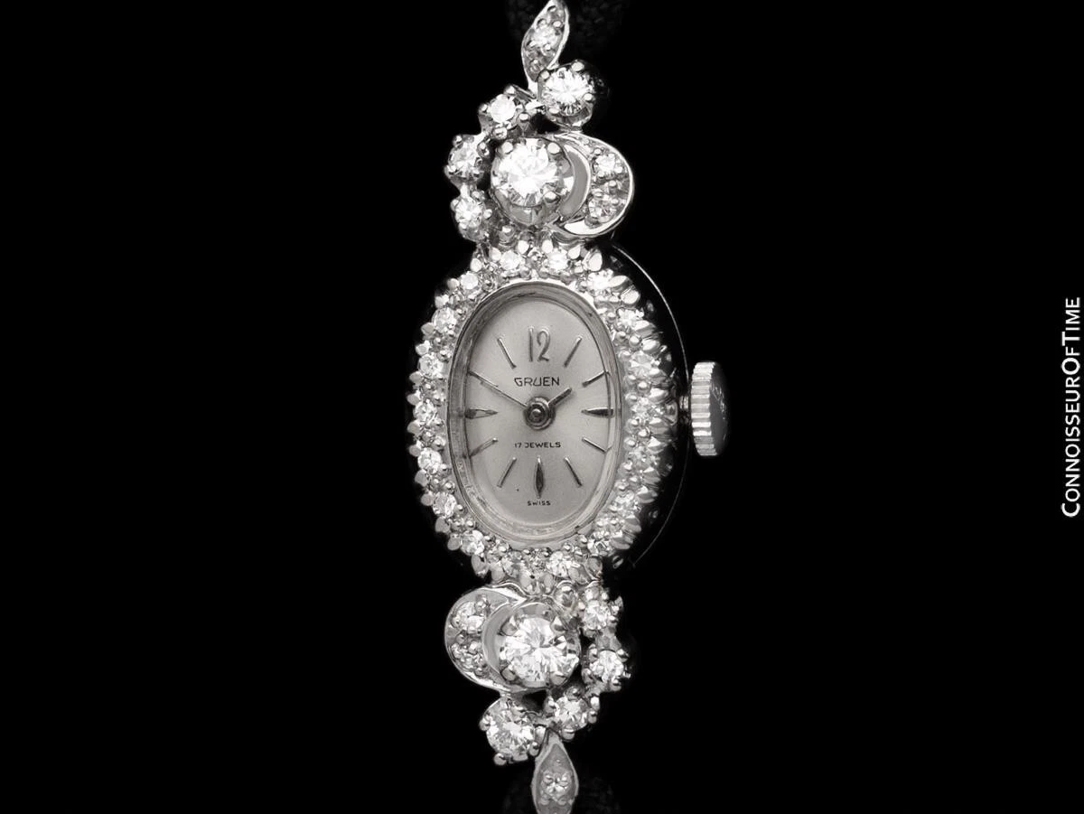 1960's GRUEN Ladies 14K White Gold & Diamond Cocktail Watch - Minty w/ Warranty