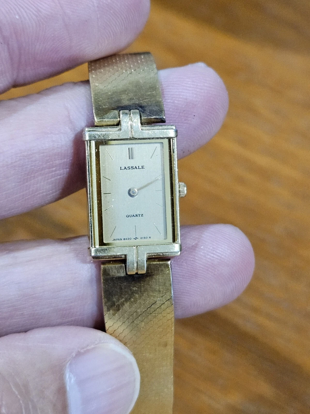Vintage Lasalle Womens Watch Japan 8420-7379 Stainless Steel Quartz Gold 7"