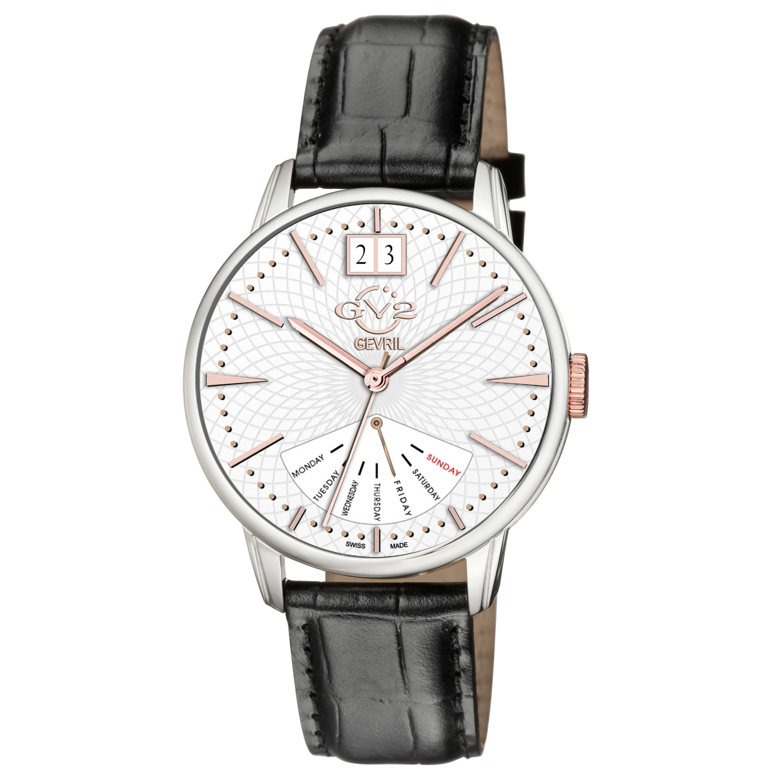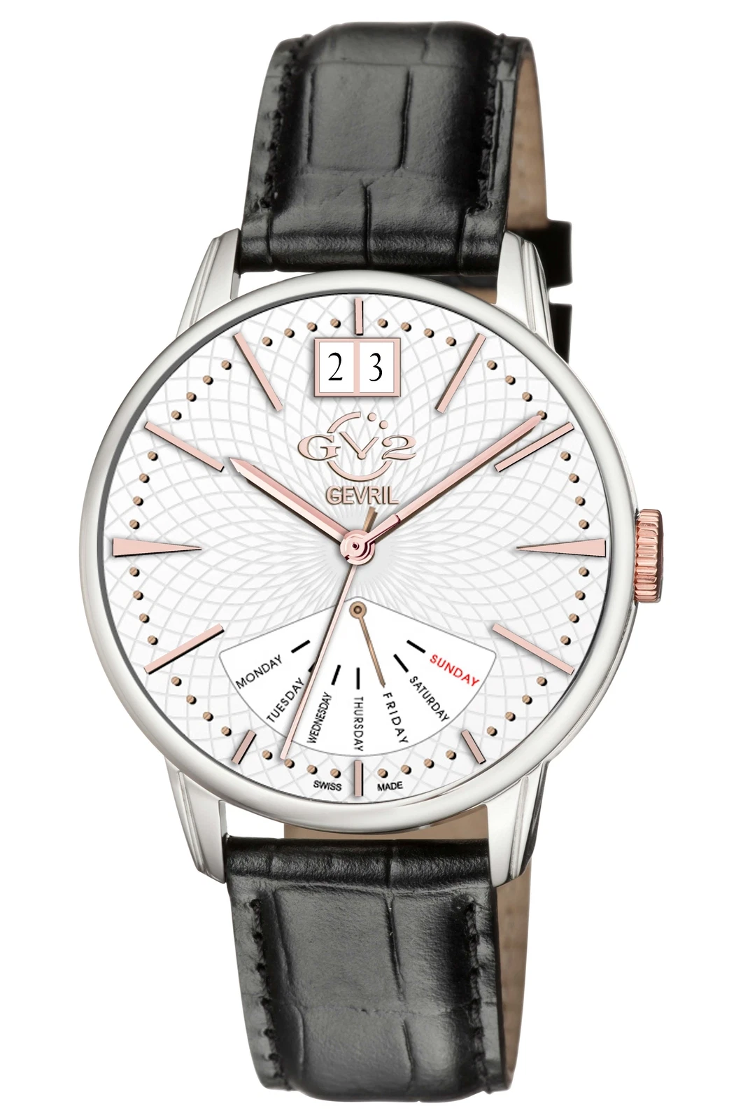 GV2 by Gevril Men's 56202 Rovescio Black Leather Swiss Quartz Day-Date Watch