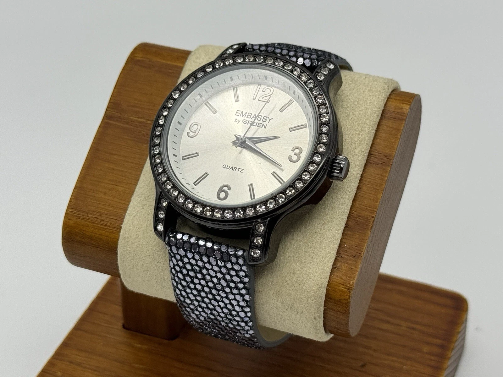Ladies EMBASSY By Gruen GEM3543 Crystal Accent Silver & Gray Watch, Sparkly Band